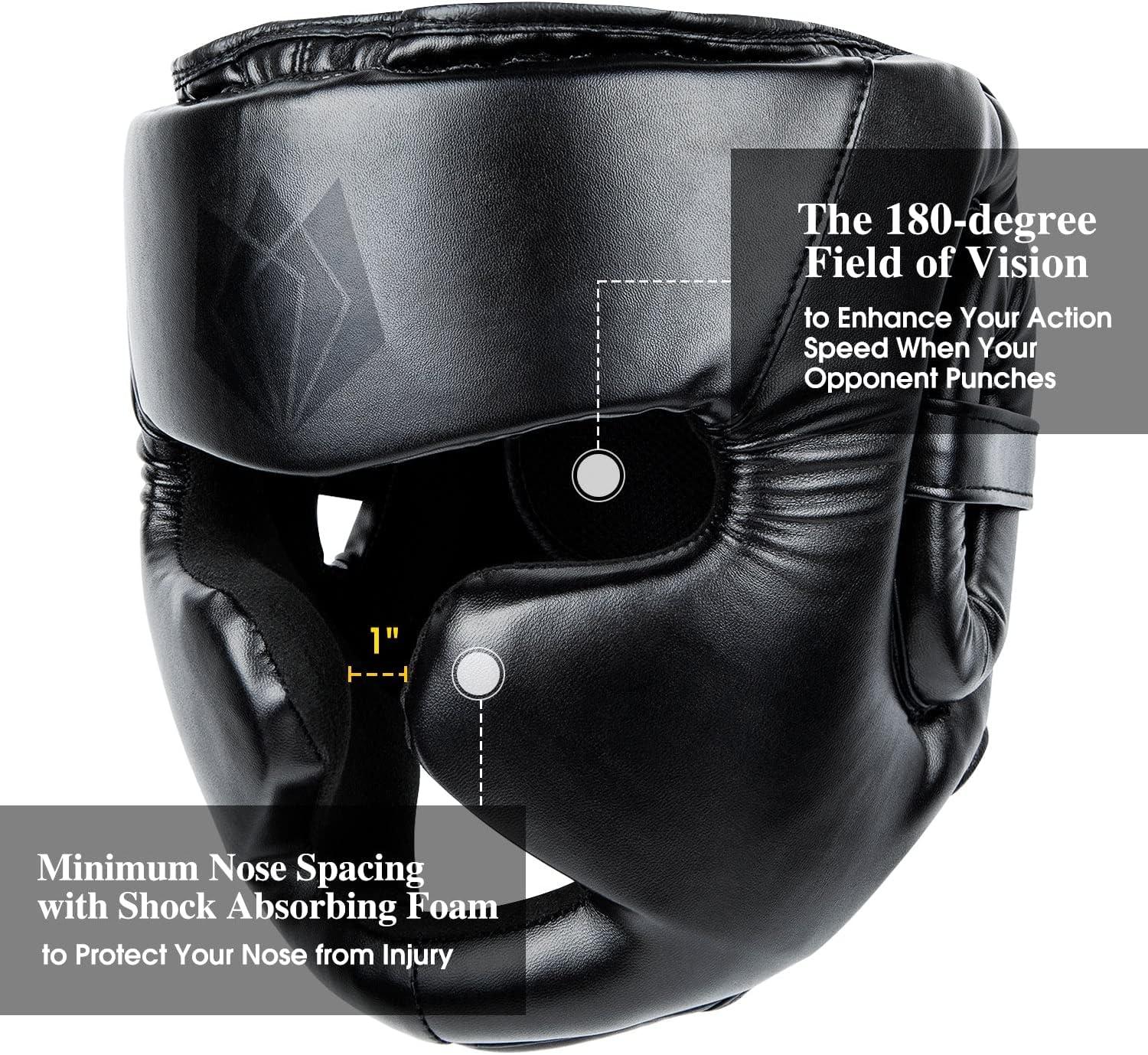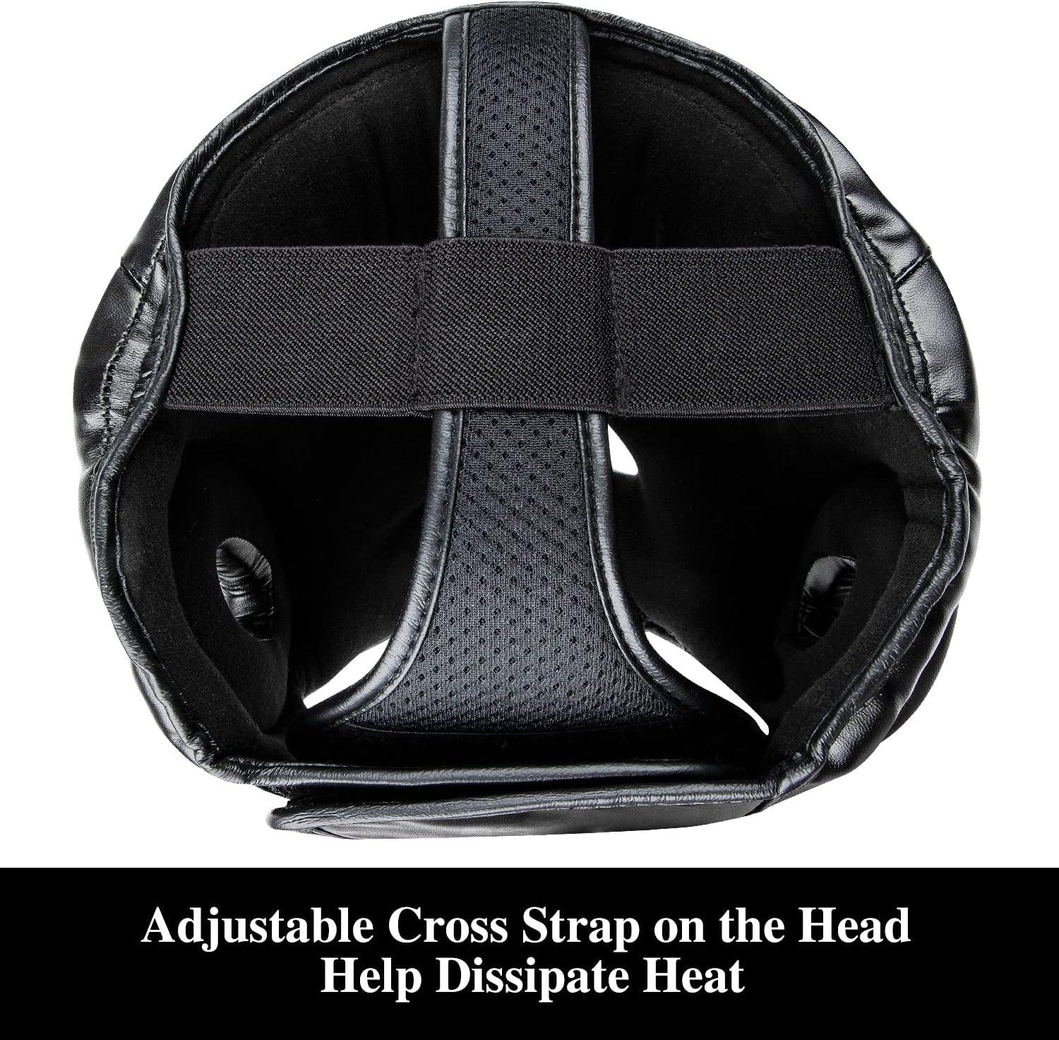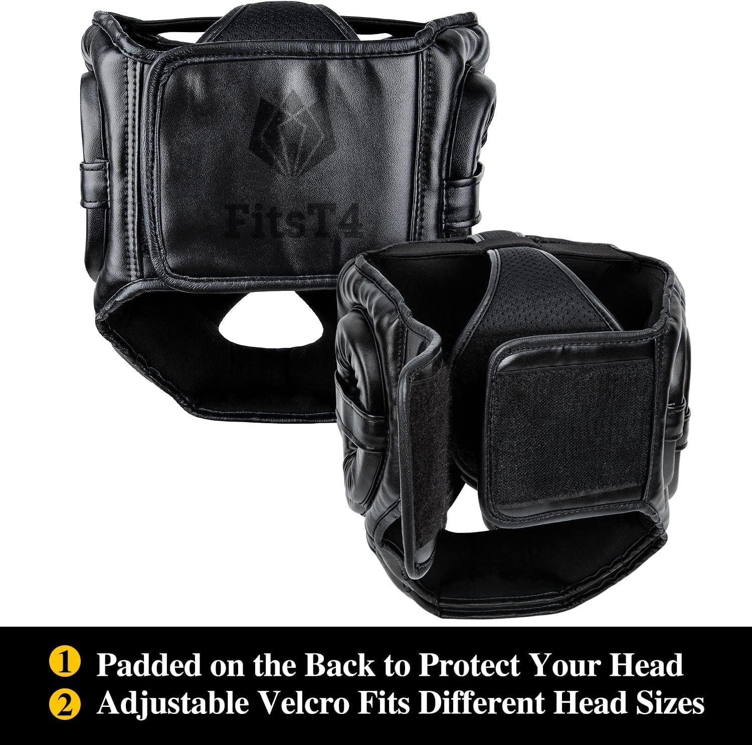 FitsT4 Boxing Headgear Head Protection Sparring Head Guard PU Leather Muay Thai Helmet for Martial Arts Karate BJJ Training