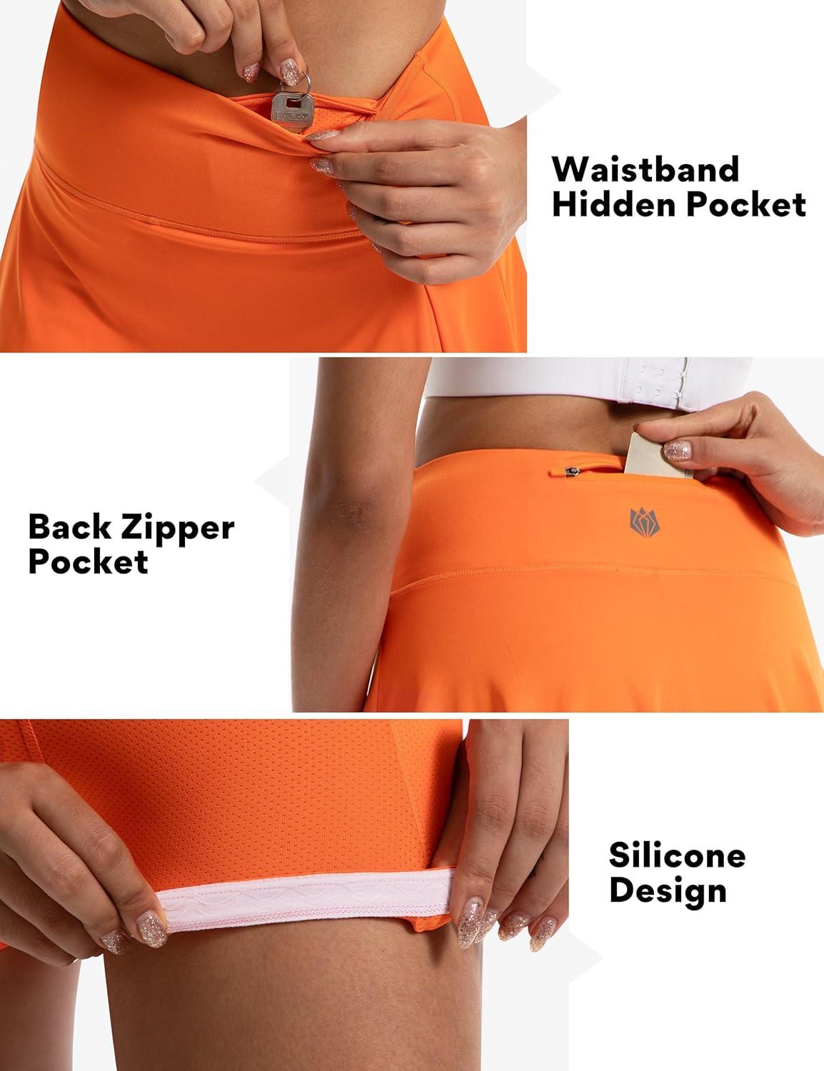 FitsT4 Sports 16″ Tennis Golf Skorts Skirts for Women 4 Pockets UPF50+ High Waisted Athletic Casual Workout Running Skirt