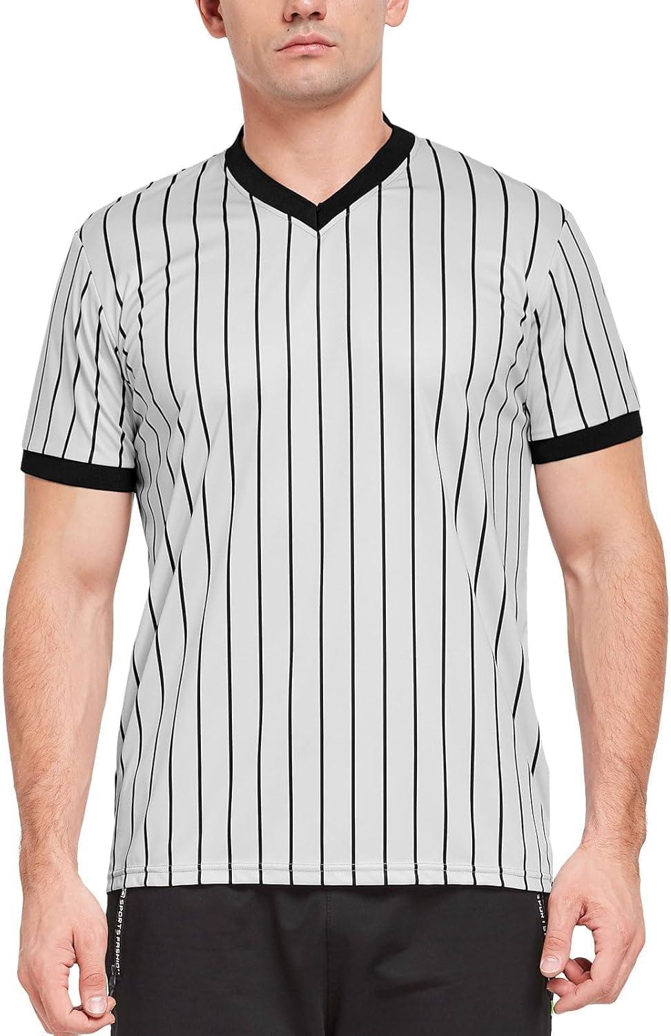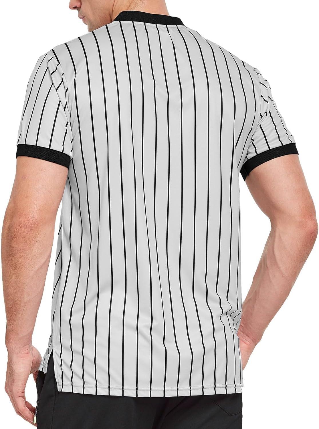 PRO-STYLE: This referee costume meets standard referee shirt requirements with a vertical stripe design and ribbed sleeves, similar to all levels of sports events. This performance shirt is suitable for basketball, football, soccer.