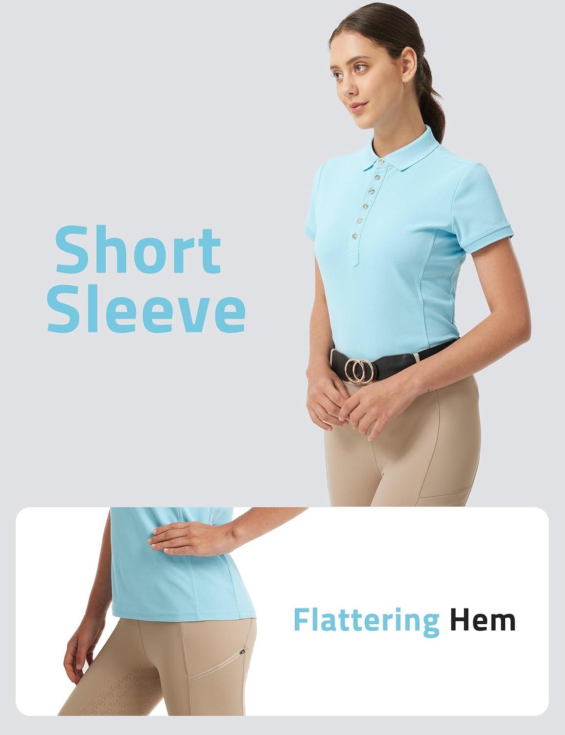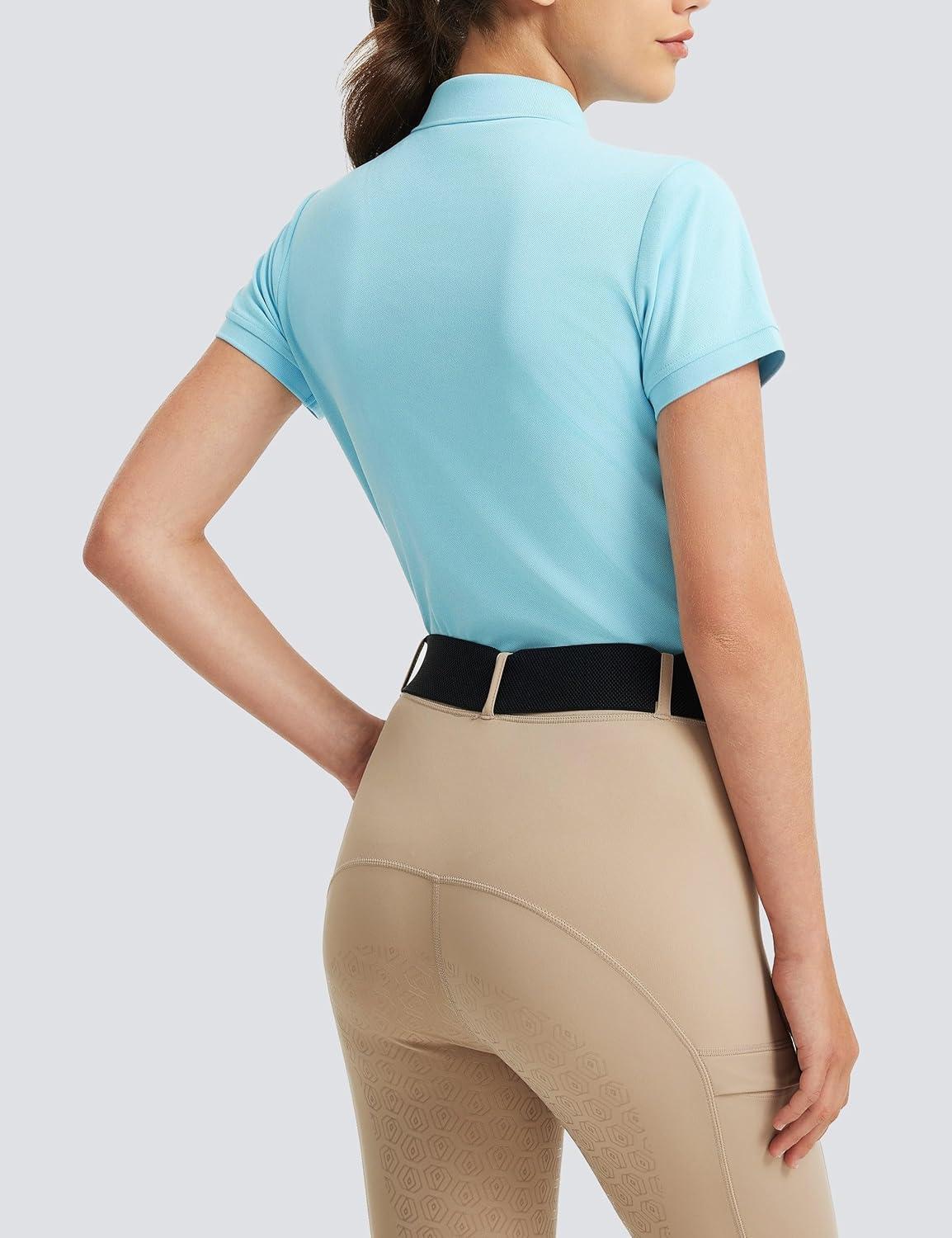 FitsT4 Sports Equestrian Shirts for Women Short Sleeve UPF50+ Moisture Wicking Polo Shirts for Horse Riding Tops(Blue)