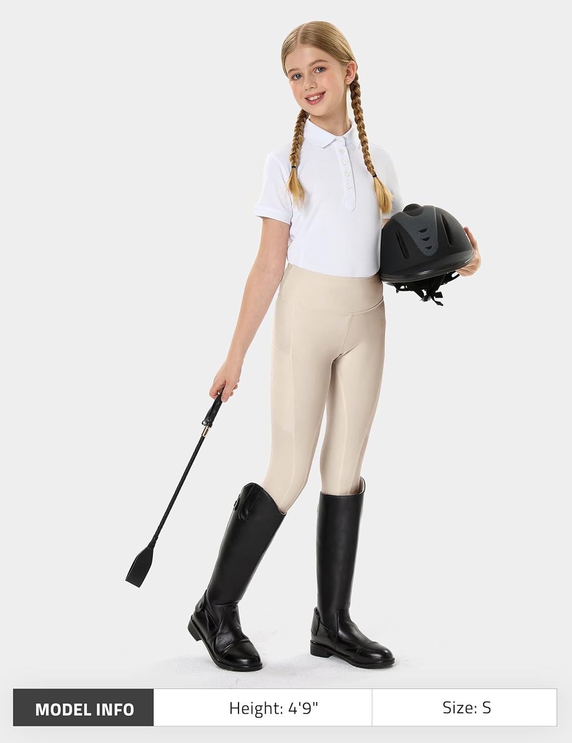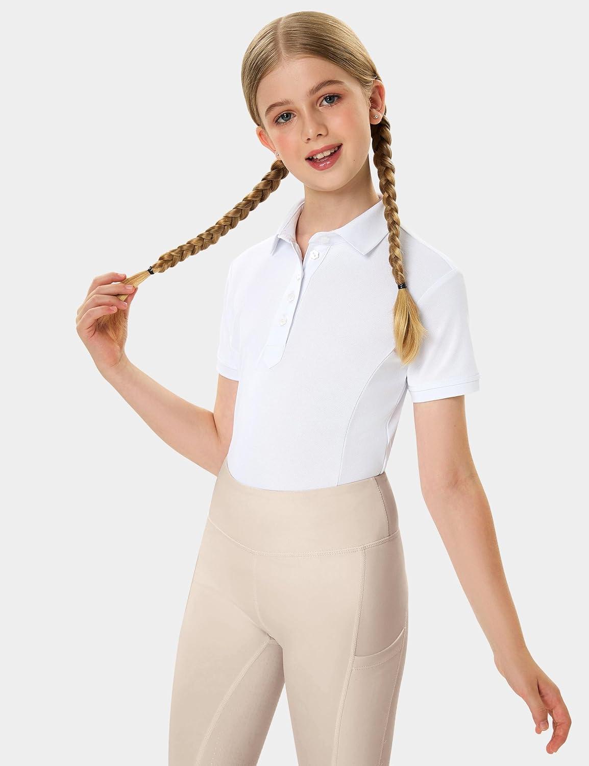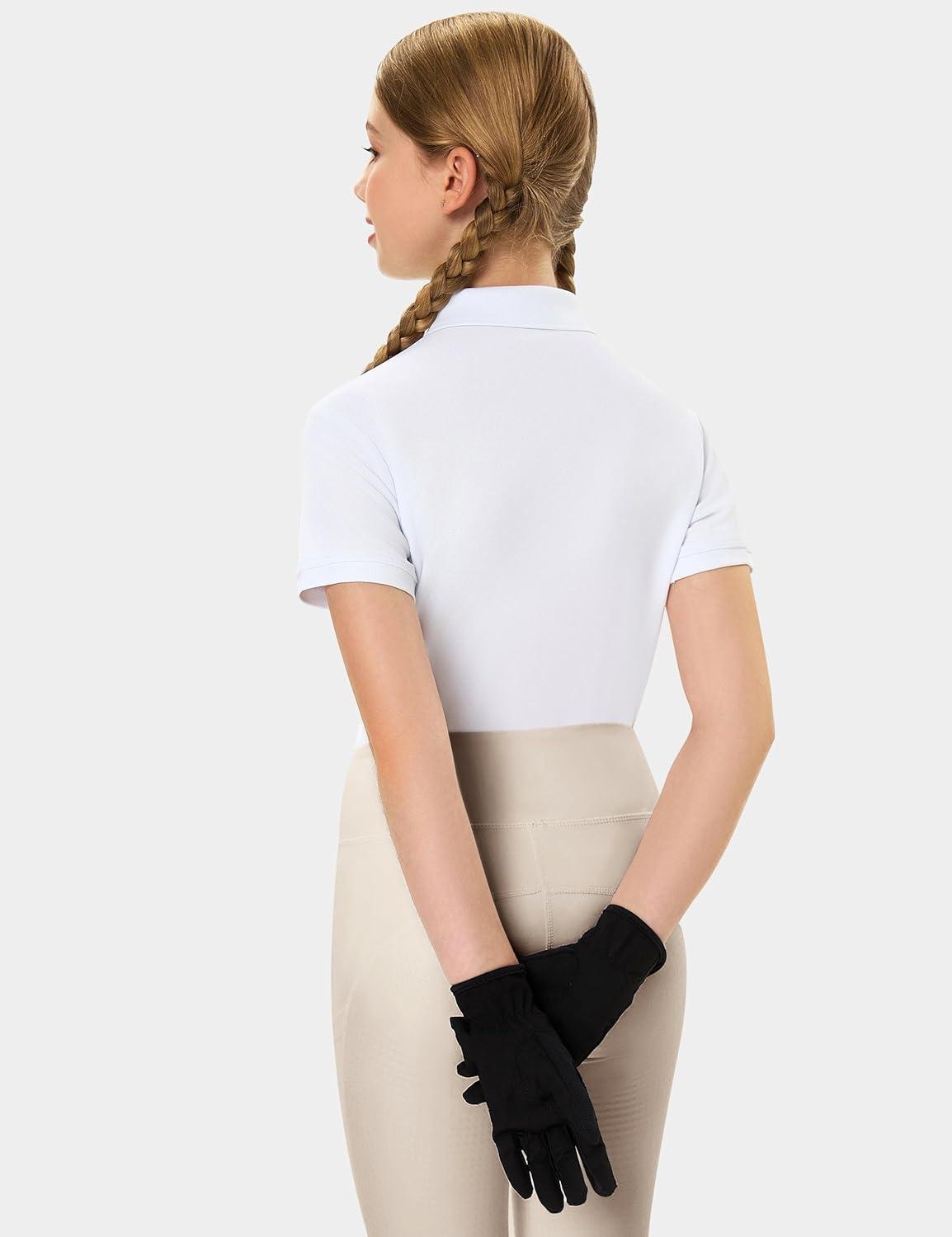 FitsT4 Sports Girls Equestrian Shirt Short Sleeve Horse Riding Polo Shirts Button UP Horseback Show Shirt(White)