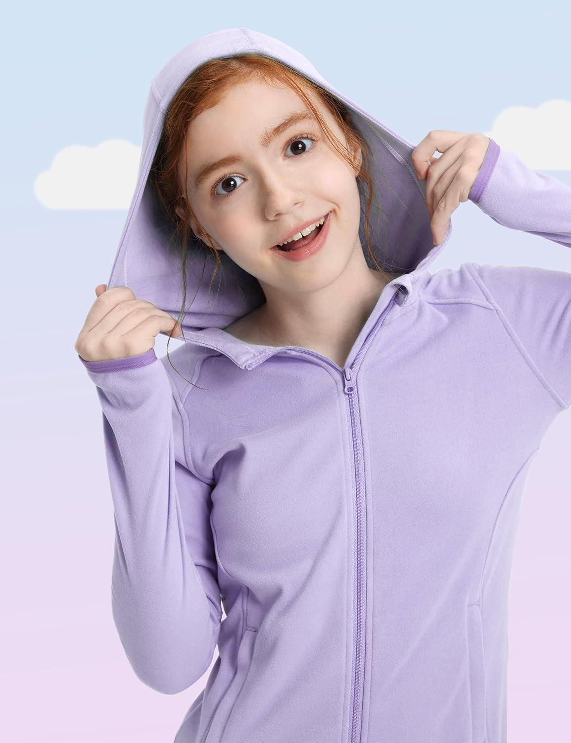 FitsT4 Sports Girls Fleece Horse Riding Jackets Hoodie Kids Equestrian Shirts Full Zip Up Long Sleeve Thumbholes for Winter(Light Purple)