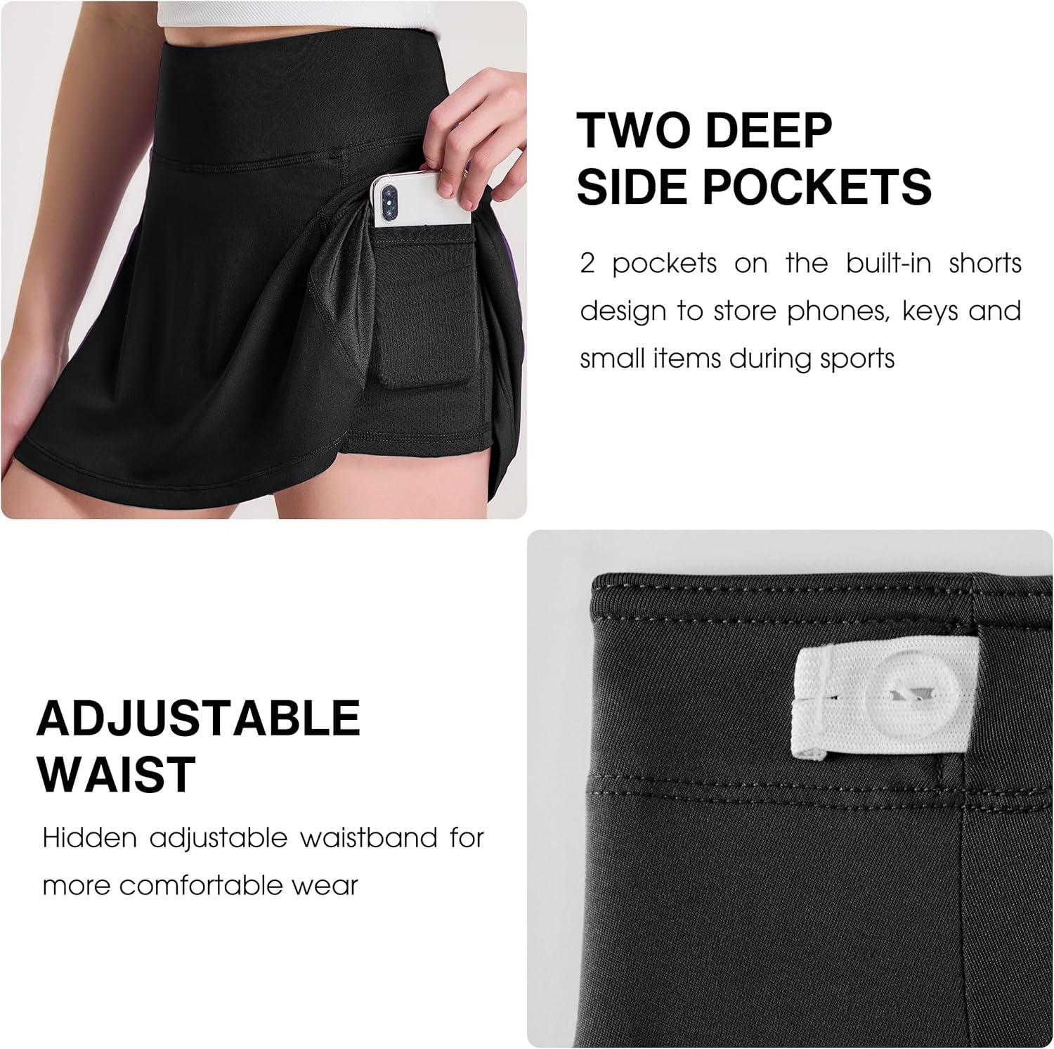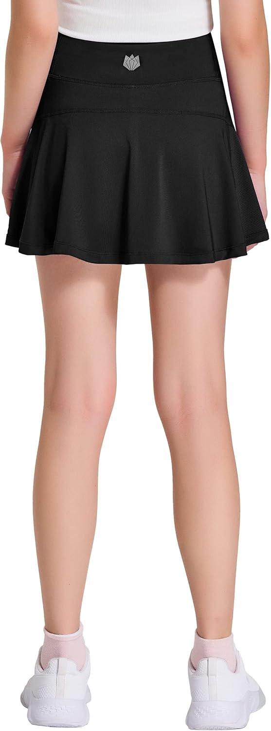 FitsT4 Sports Girl’s Golf Skirt Adjustable Waist Active Tennis Skort UPF50+(Black)