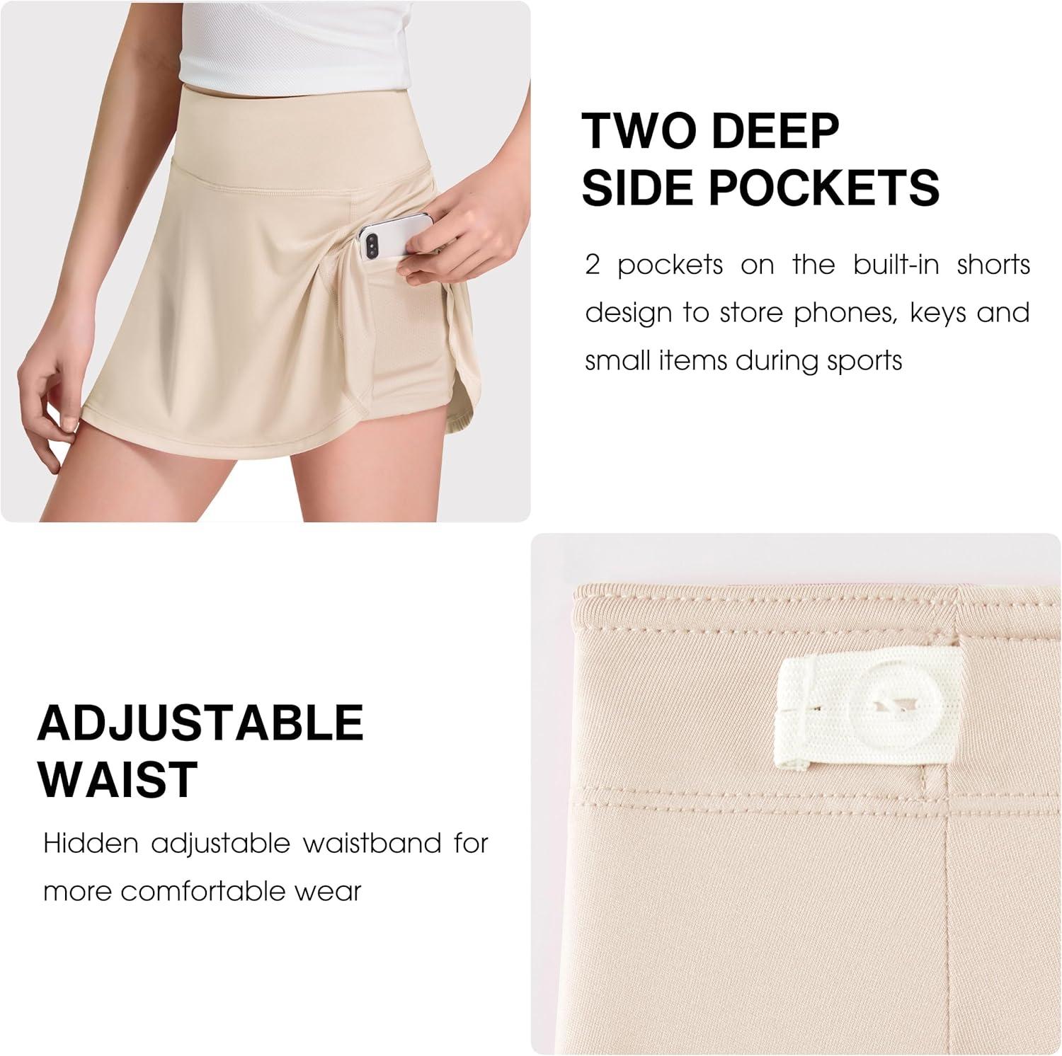 FitsT4 Sports Girl’s Golf Skirt Adjustable Waist Active Tennis Skort UPF50+(Khaki)