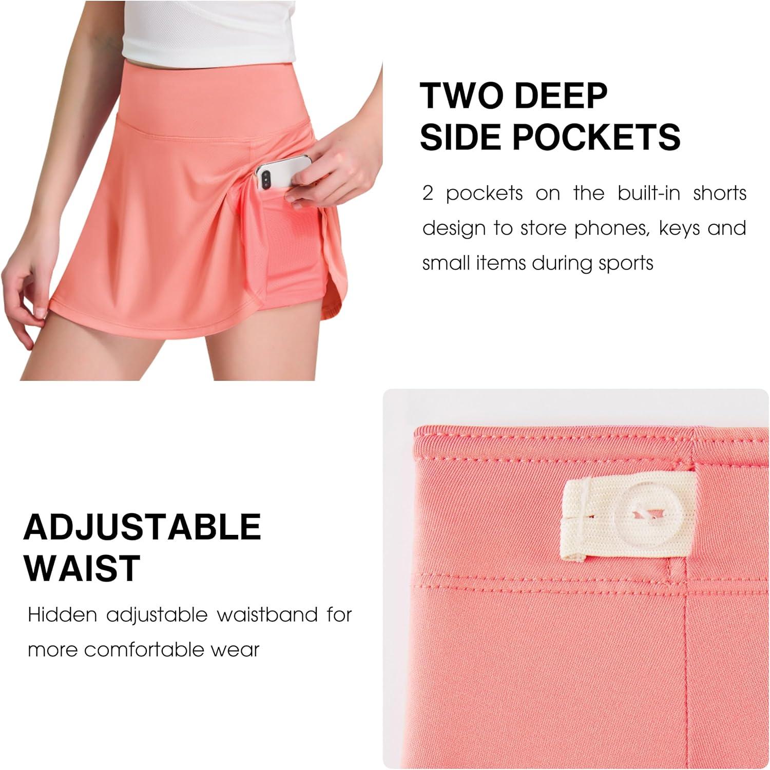 FitsT4 Sports Girl’s Golf Skirt Adjustable Waist Active Tennis Skort UPF50+(Peach)