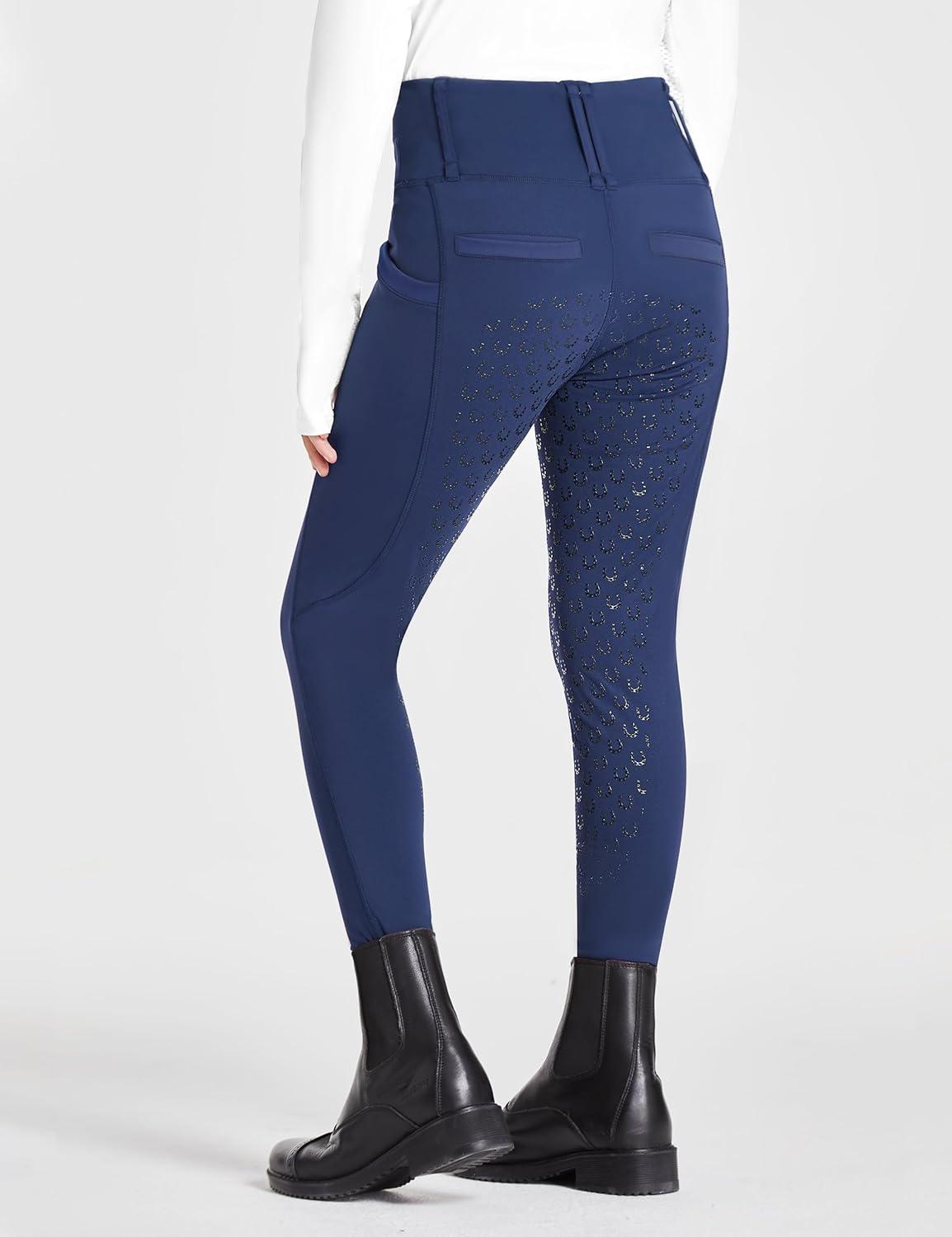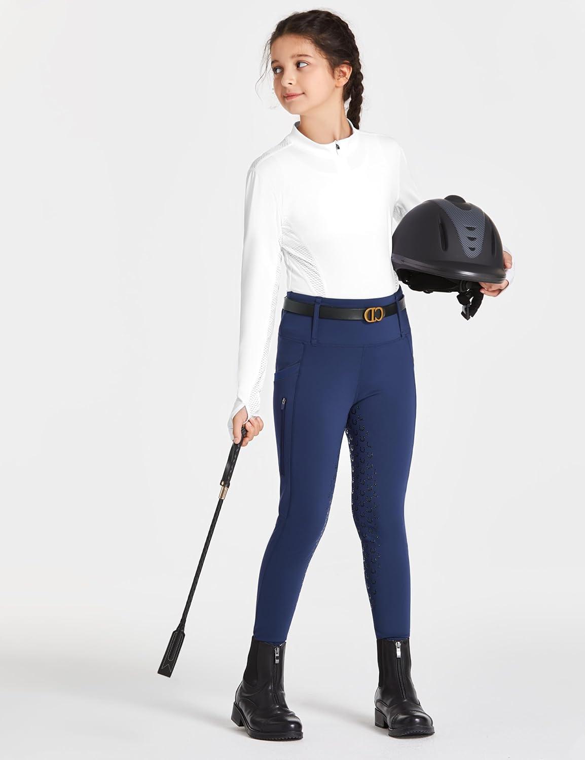 FitsT4 Sports Girls Riding Pants Full Seat High Waist Kids Equestrian Breeches Horse Schooling Tights Zipper Pockets(Blue)