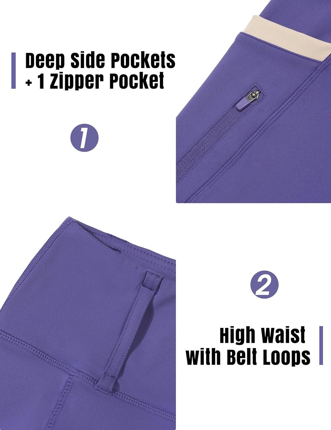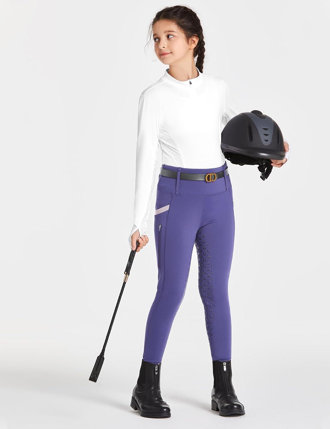 FitsT4 Sports Girls Riding Pants Full Seat High Waist Kids Equestrian Breeches Horse Schooling Tights Zipper Pockets(Purple)