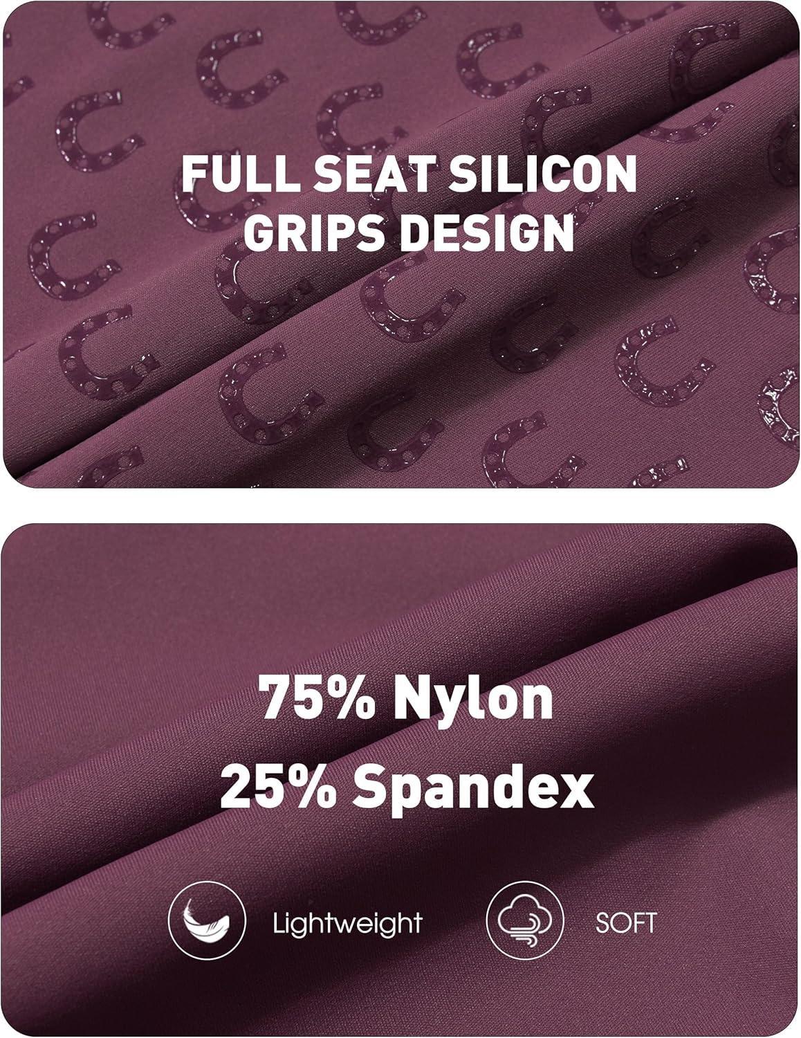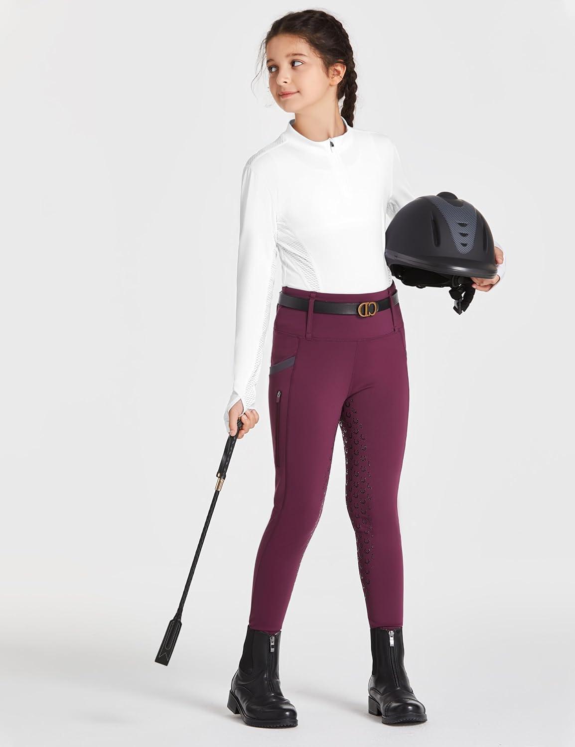 FitsT4 Sports Girls Riding Pants Full Seat High Waist Kids Equestrian Breeches Horse Schooling Tights Zipper Pockets(Wine)