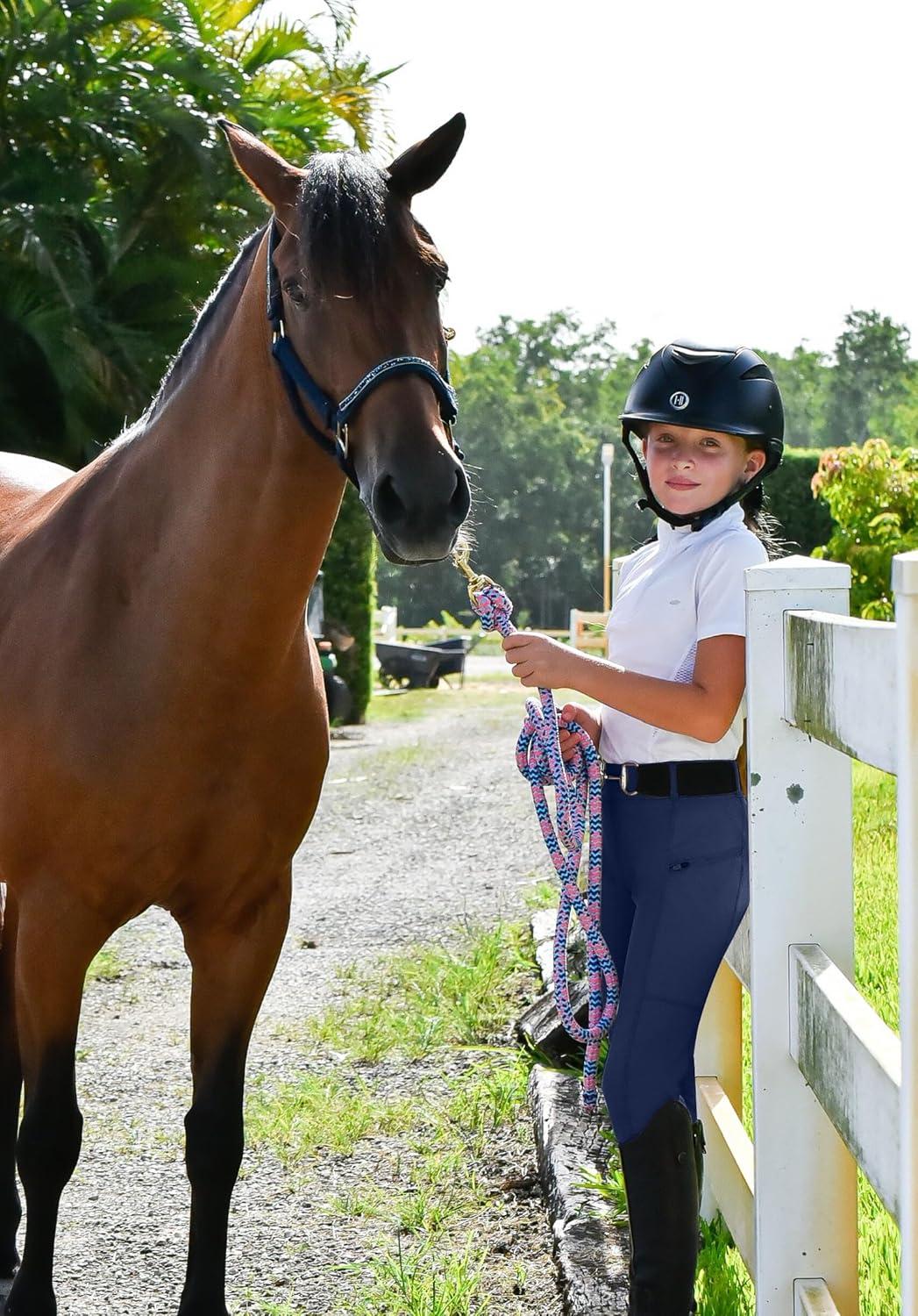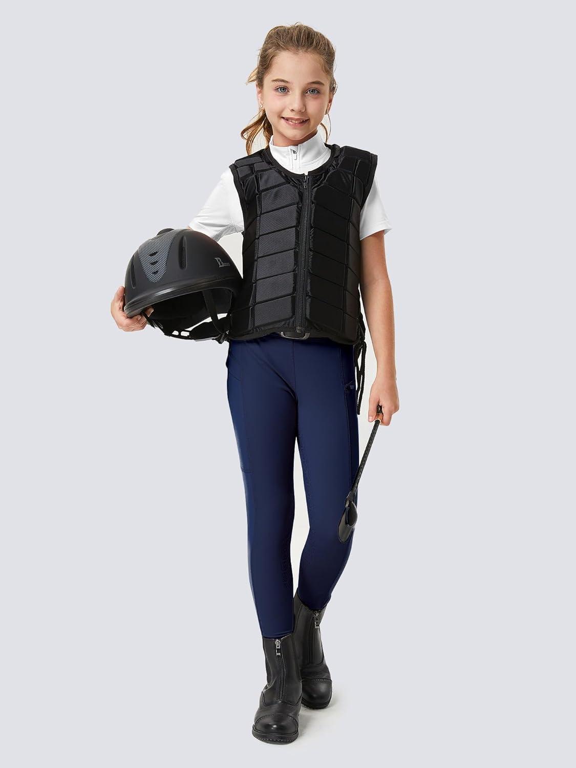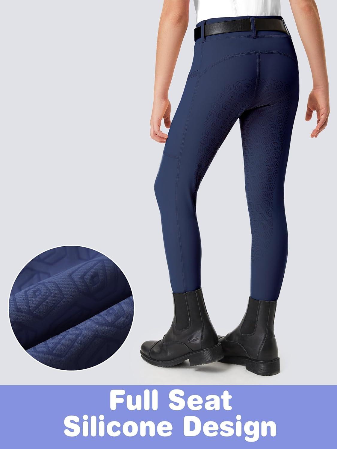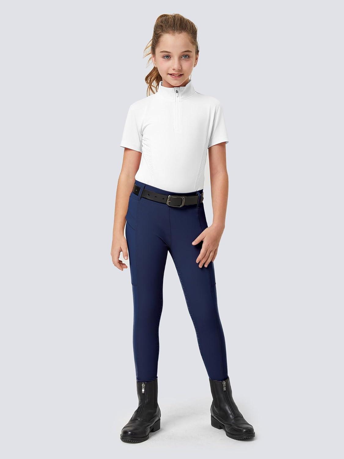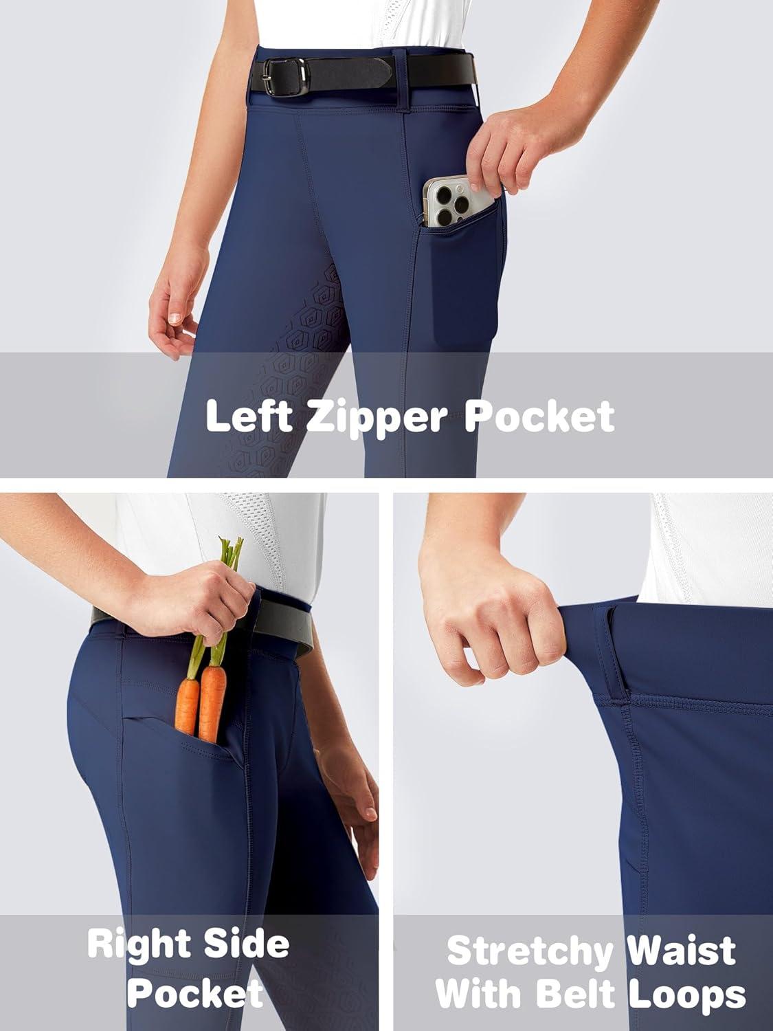 FitsT4 Sports Girls Riding Pants Full Seat Kids Equestrian Breeches Stretchy Youth Horse Schooling Tights Zipper Pockets(Navy)
