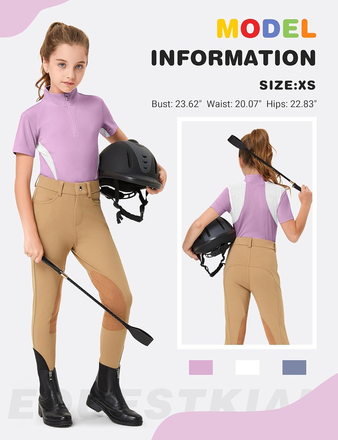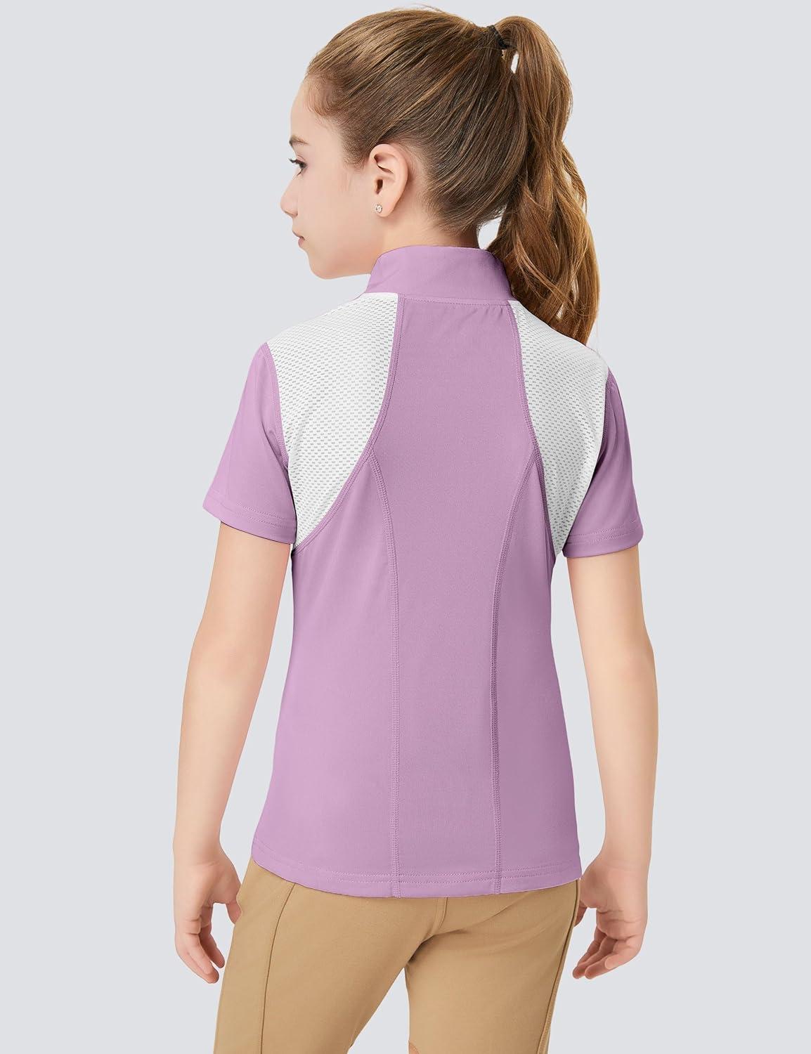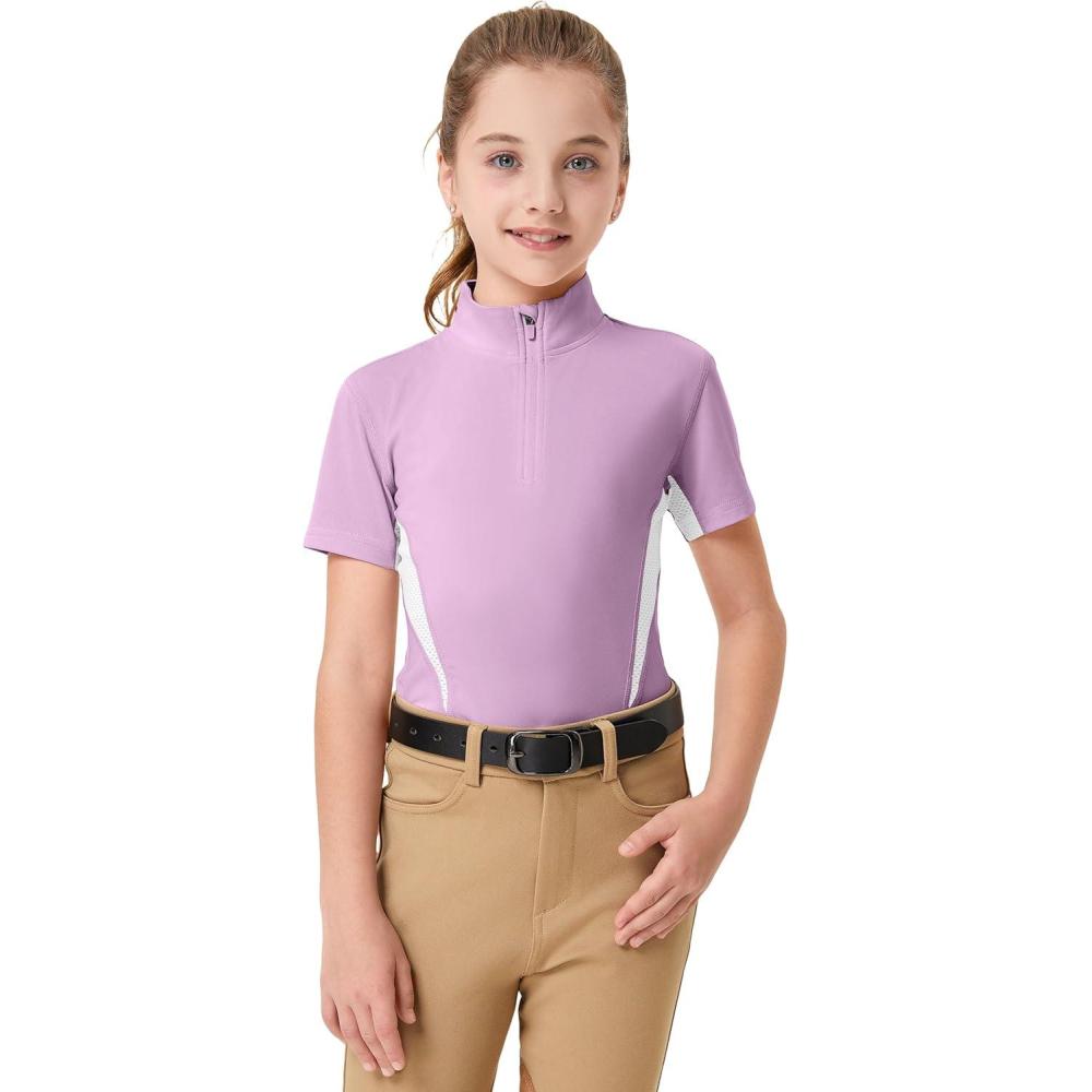 FitsT4 Sports Girls Short Sleeve Equestrian Shirt Quick Dry Horse Riding Shirts Half Zip Horseback Show Shirt(Purple)
