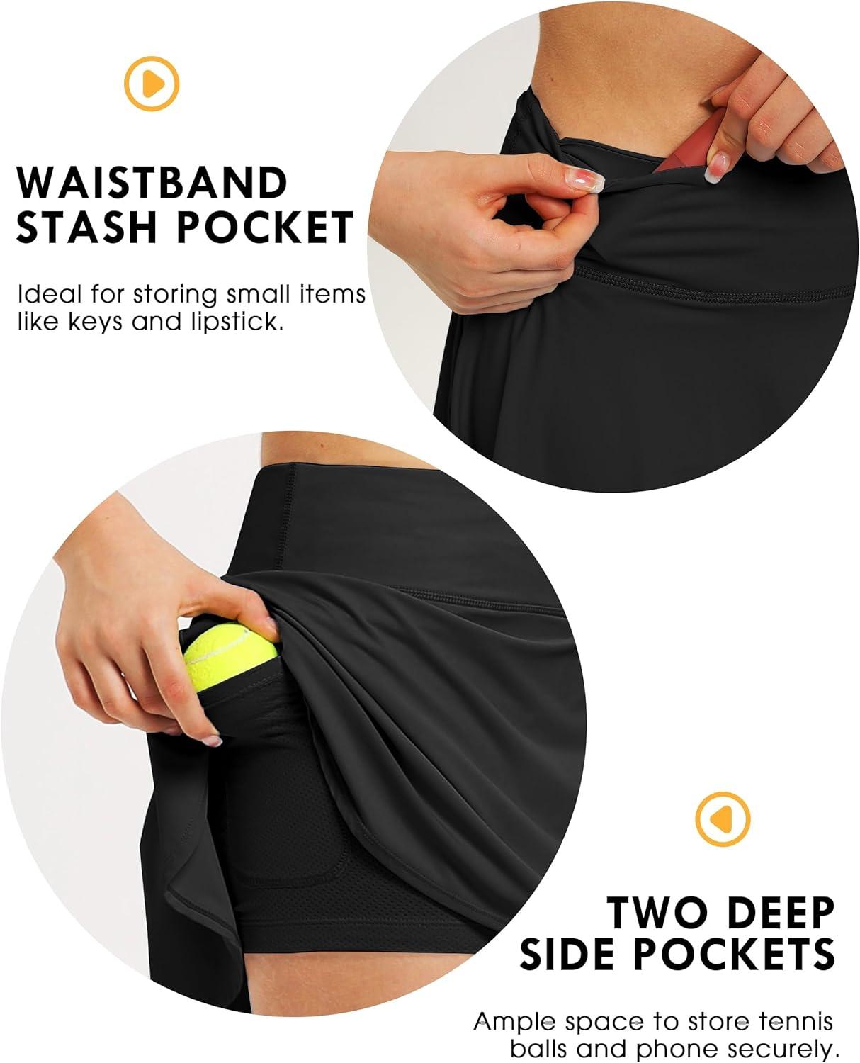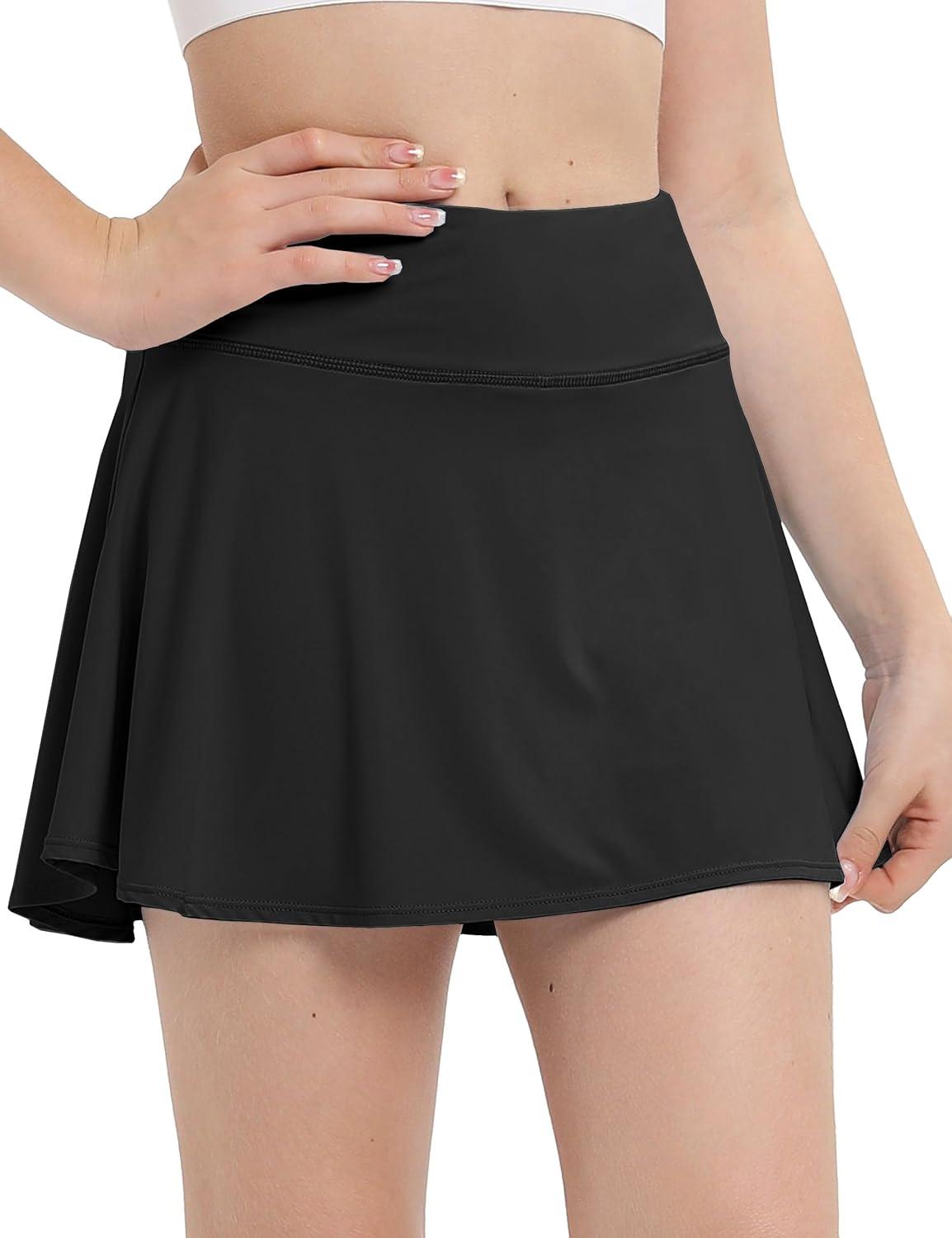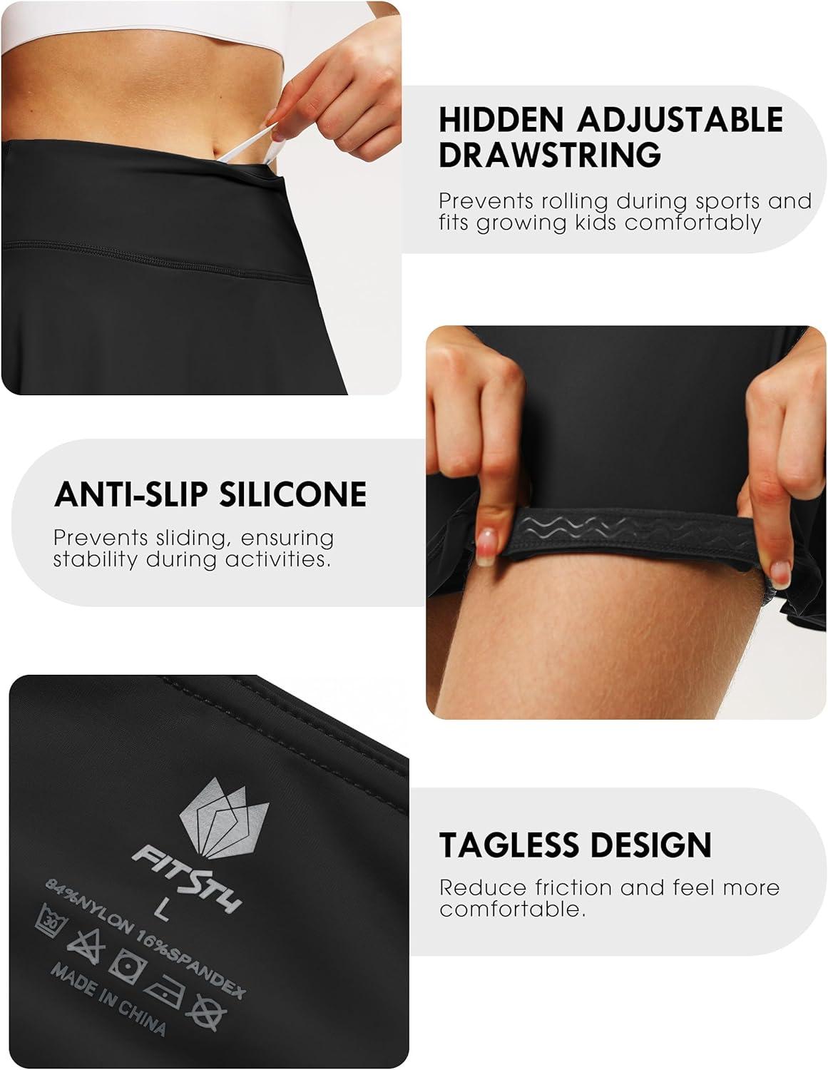 FitsT4 Sports Girls Skorts Tennis Skirts Cool Fabric Golf Skirts with Shorts,Pockets,UPF50+ & Adjustable Waist(Black)