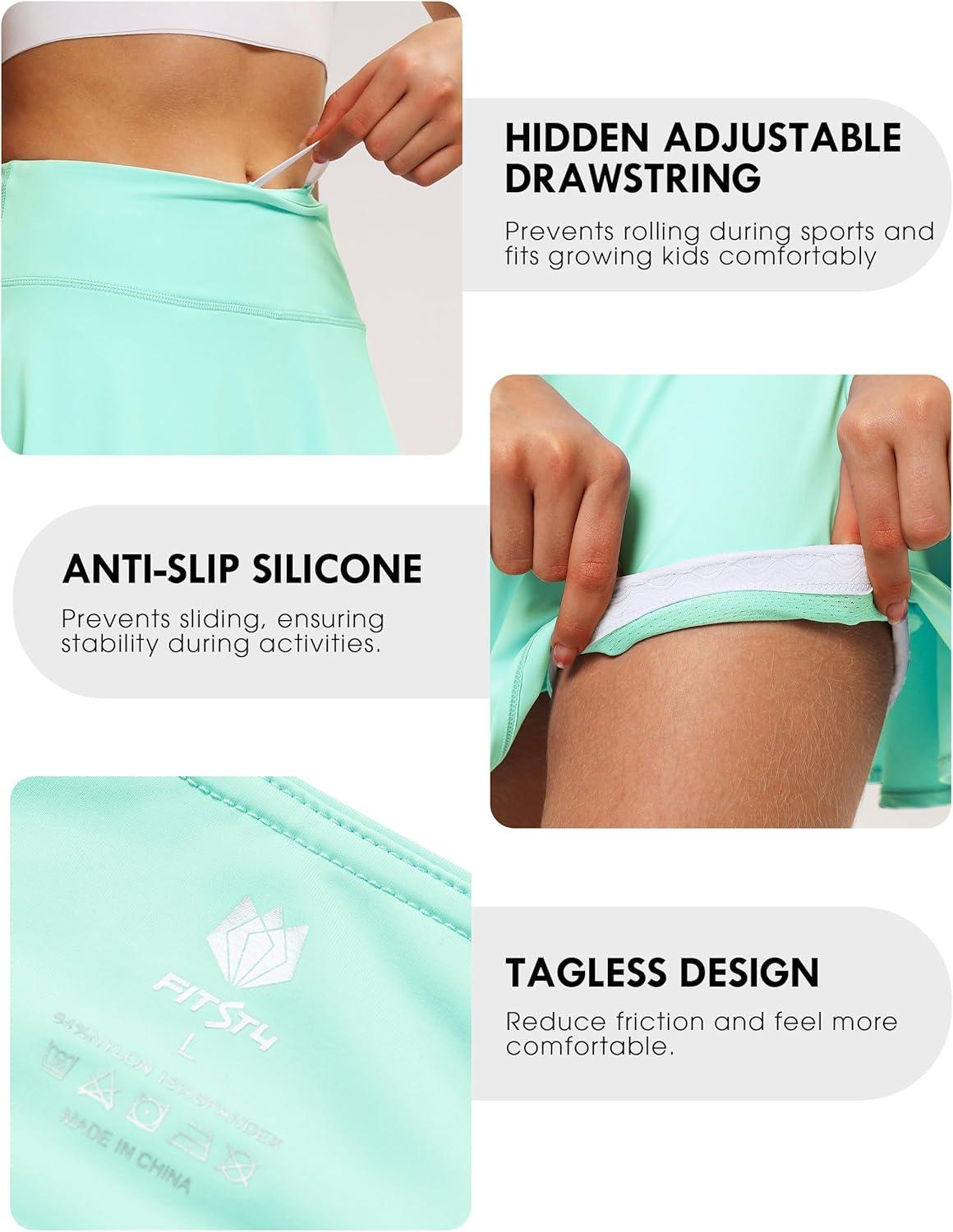 FitsT4 Sports Girls Skorts Tennis Skirts Cool Fabric Golf Skirts with Shorts,Pockets,UPF50+ & Adjustable Waist(Lake Green)