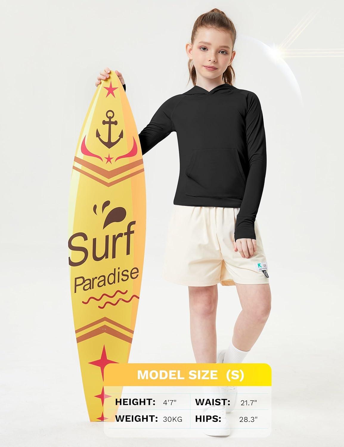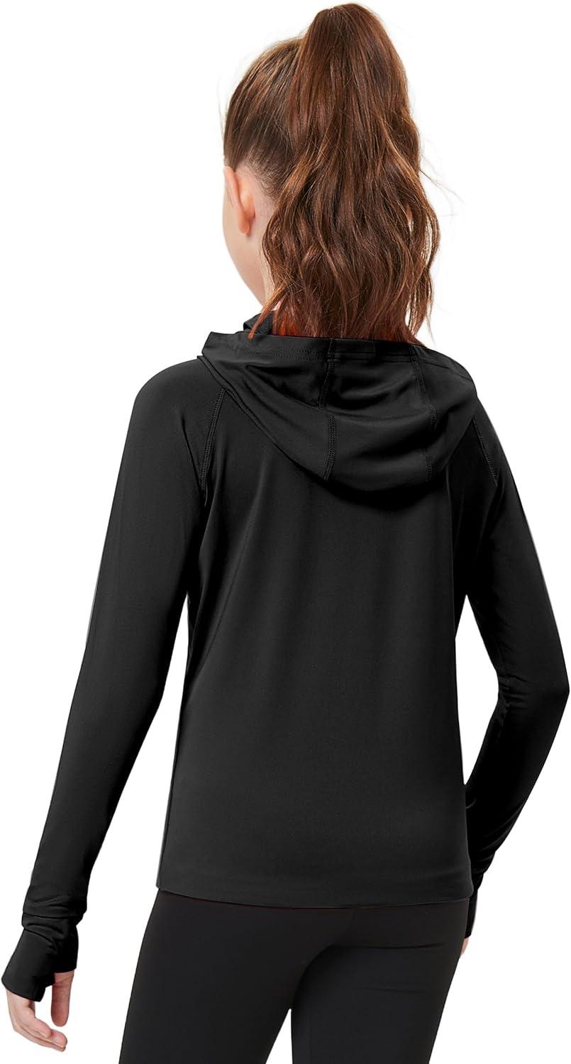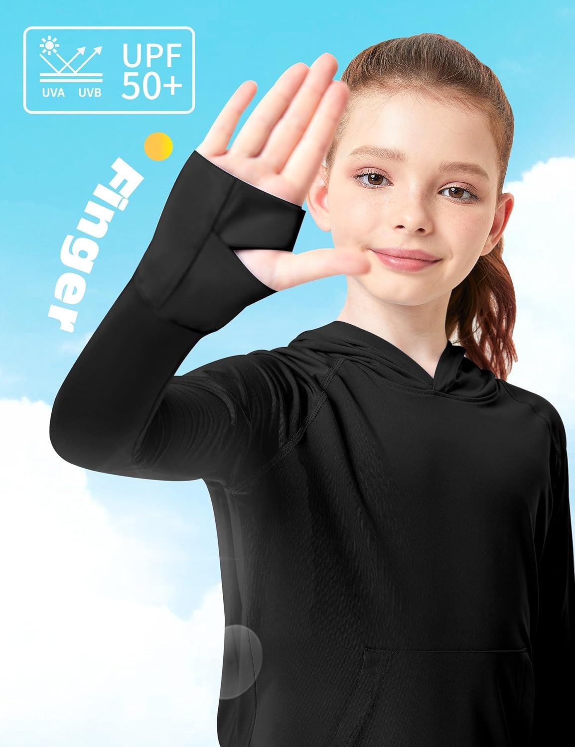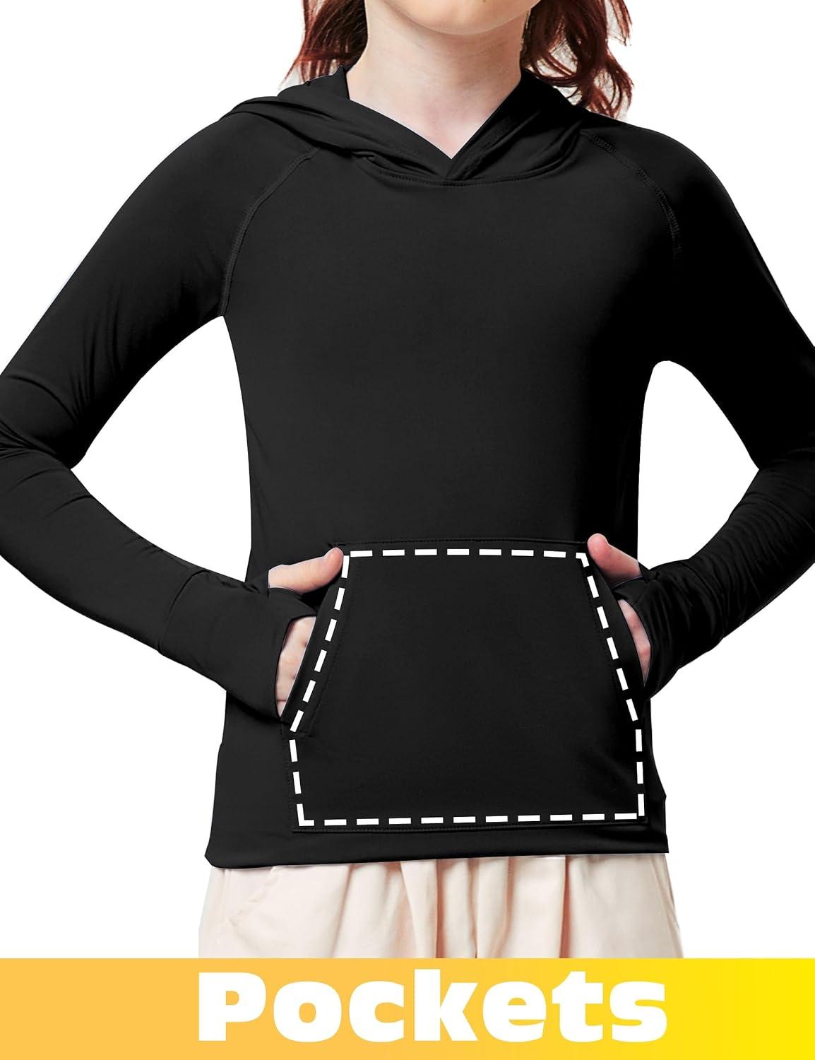 FitsT4 Sports Kids UPF50+ Sun Shirt with Pockets Thumbholes Girls Lightweight Quick Dry UV Protection Long Sleeve Hoodie(Black)