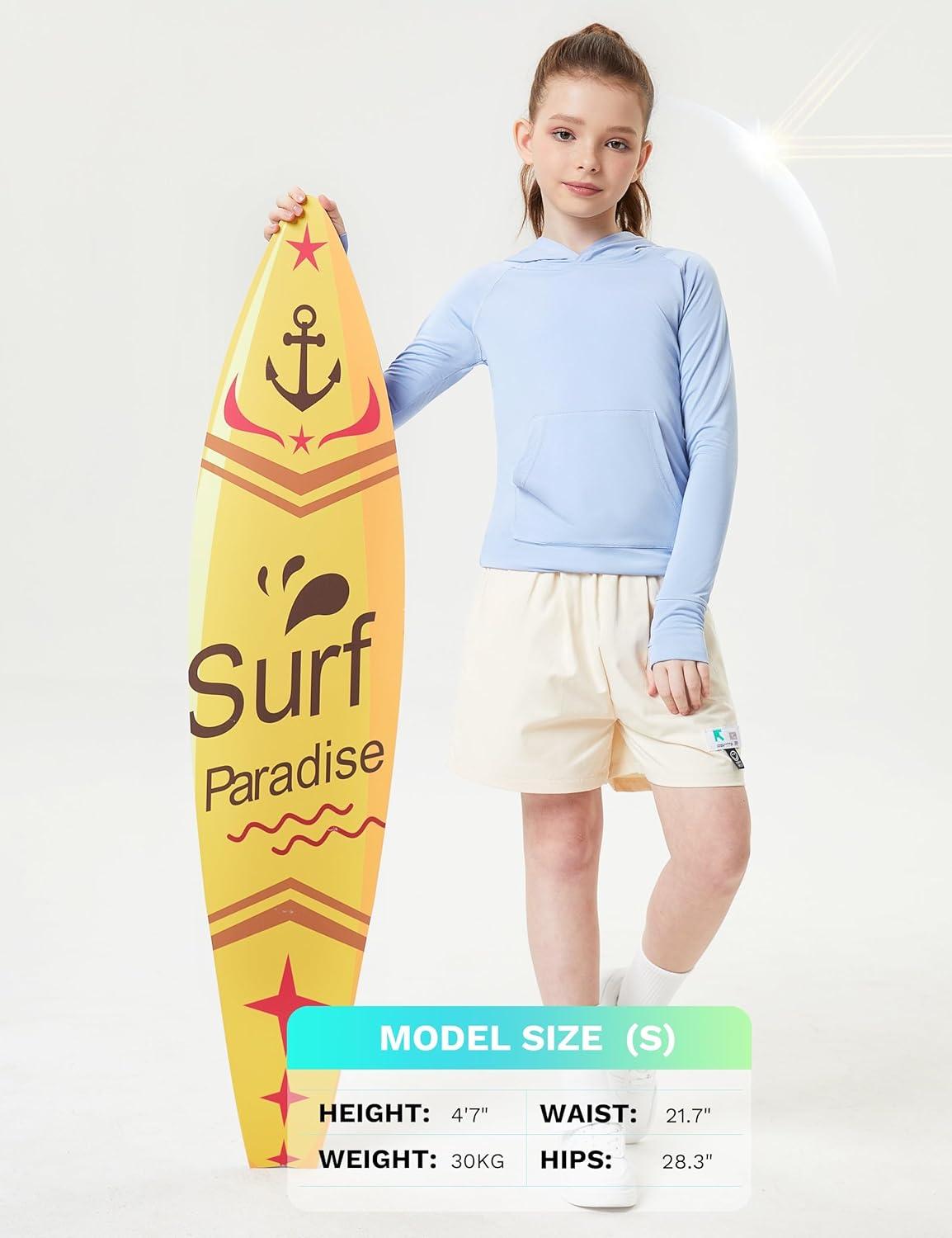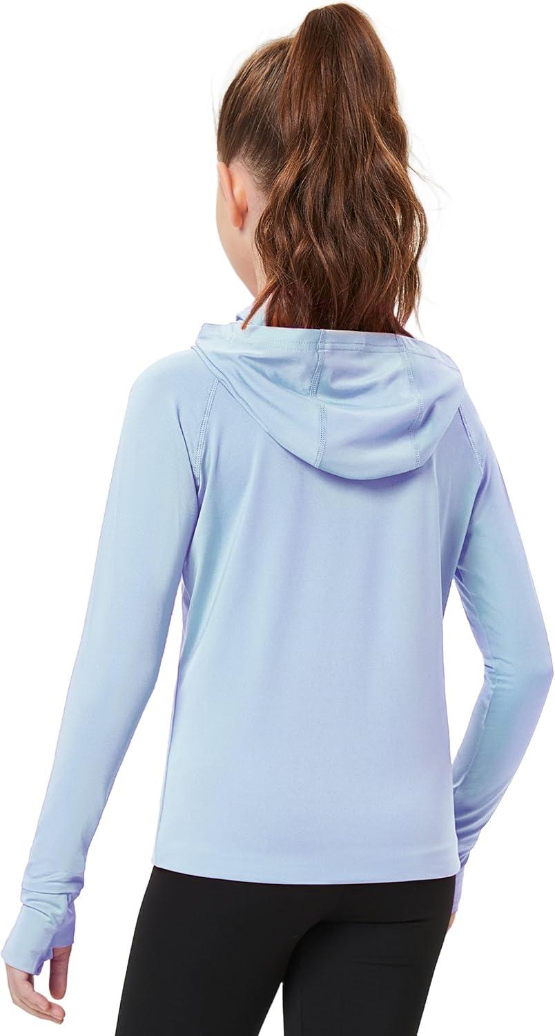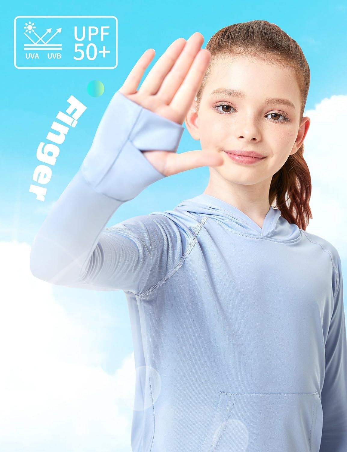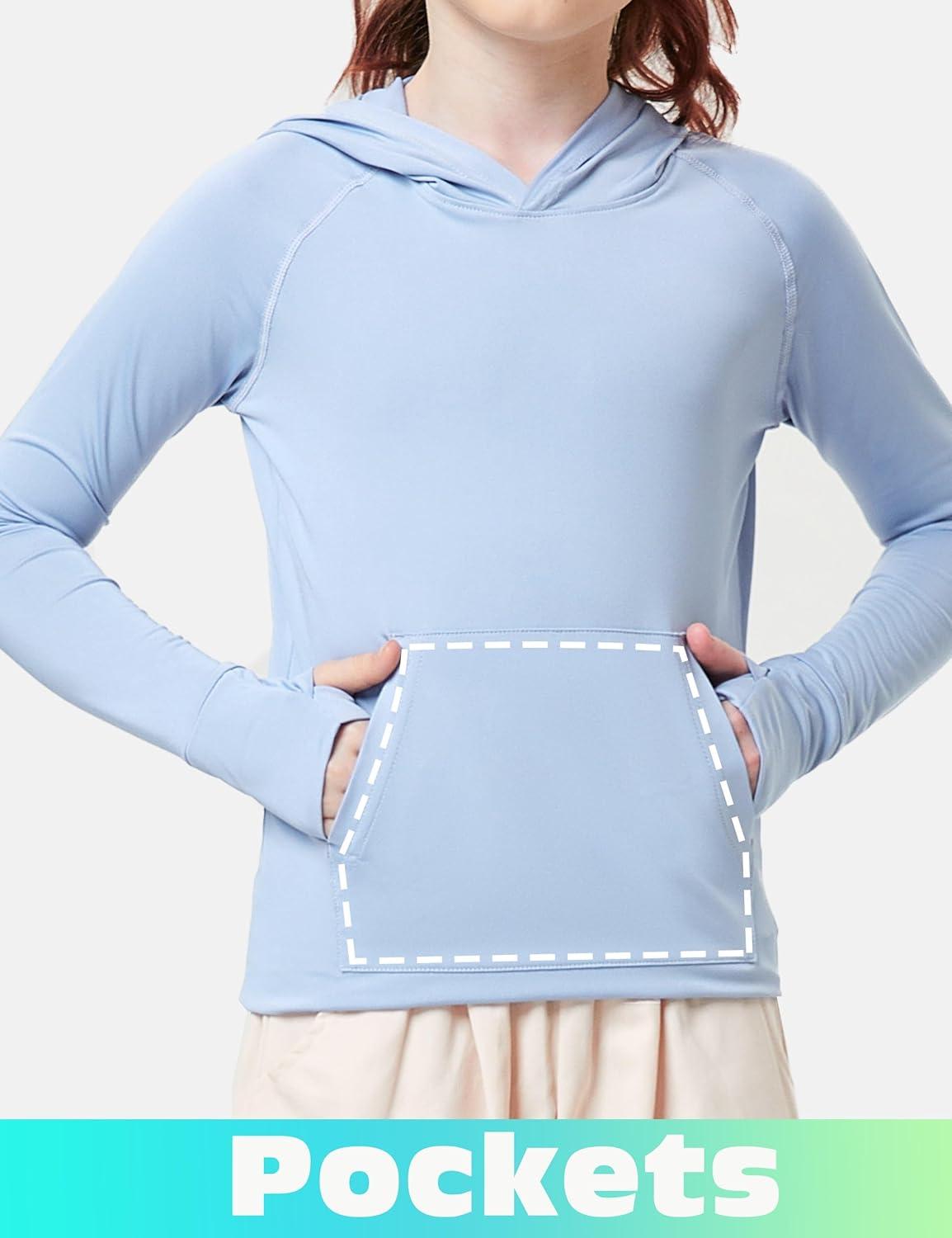 FitsT4 Sports Kids UPF50+ Sun Shirt with Pockets Thumbholes Girls Lightweight Quick Dry UV Protection Long Sleeve Hoodie(Blue)