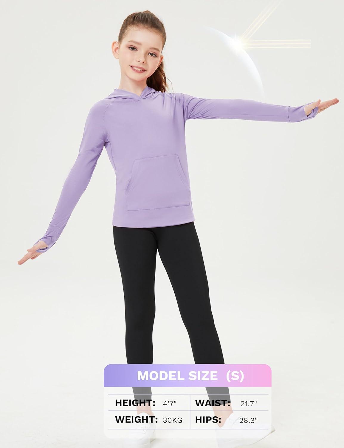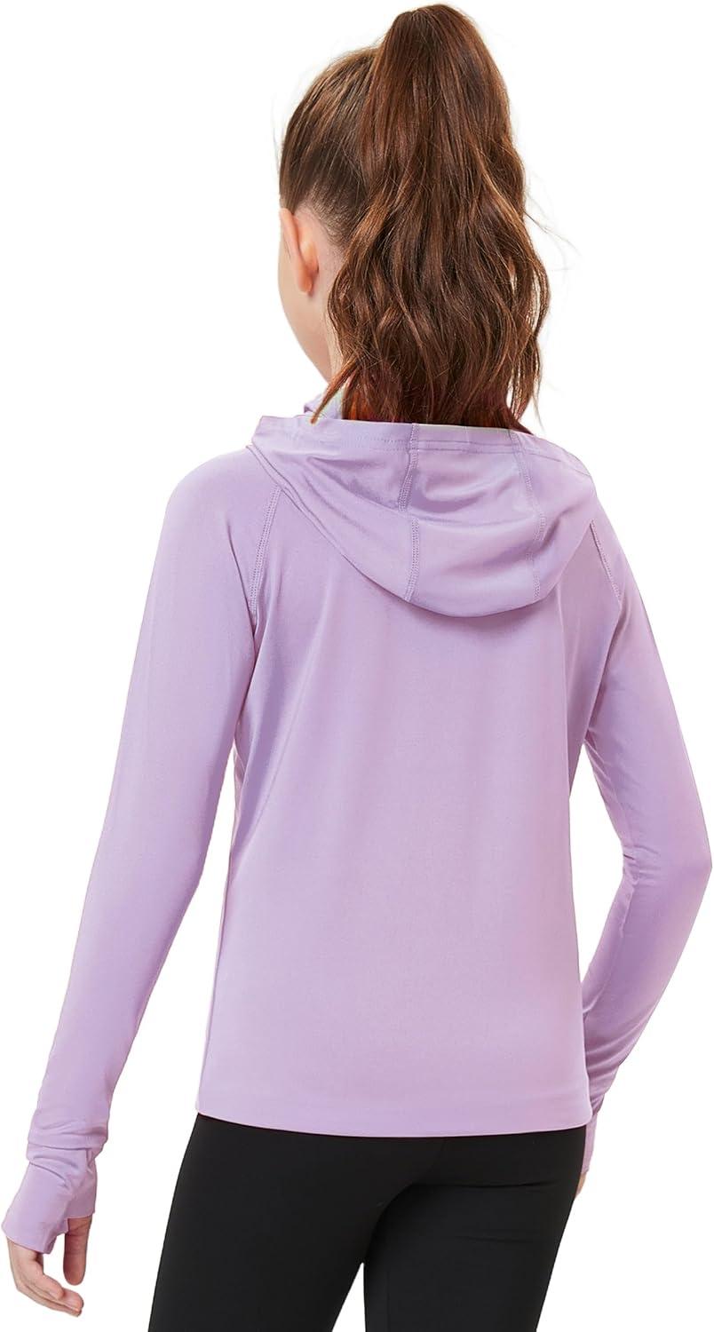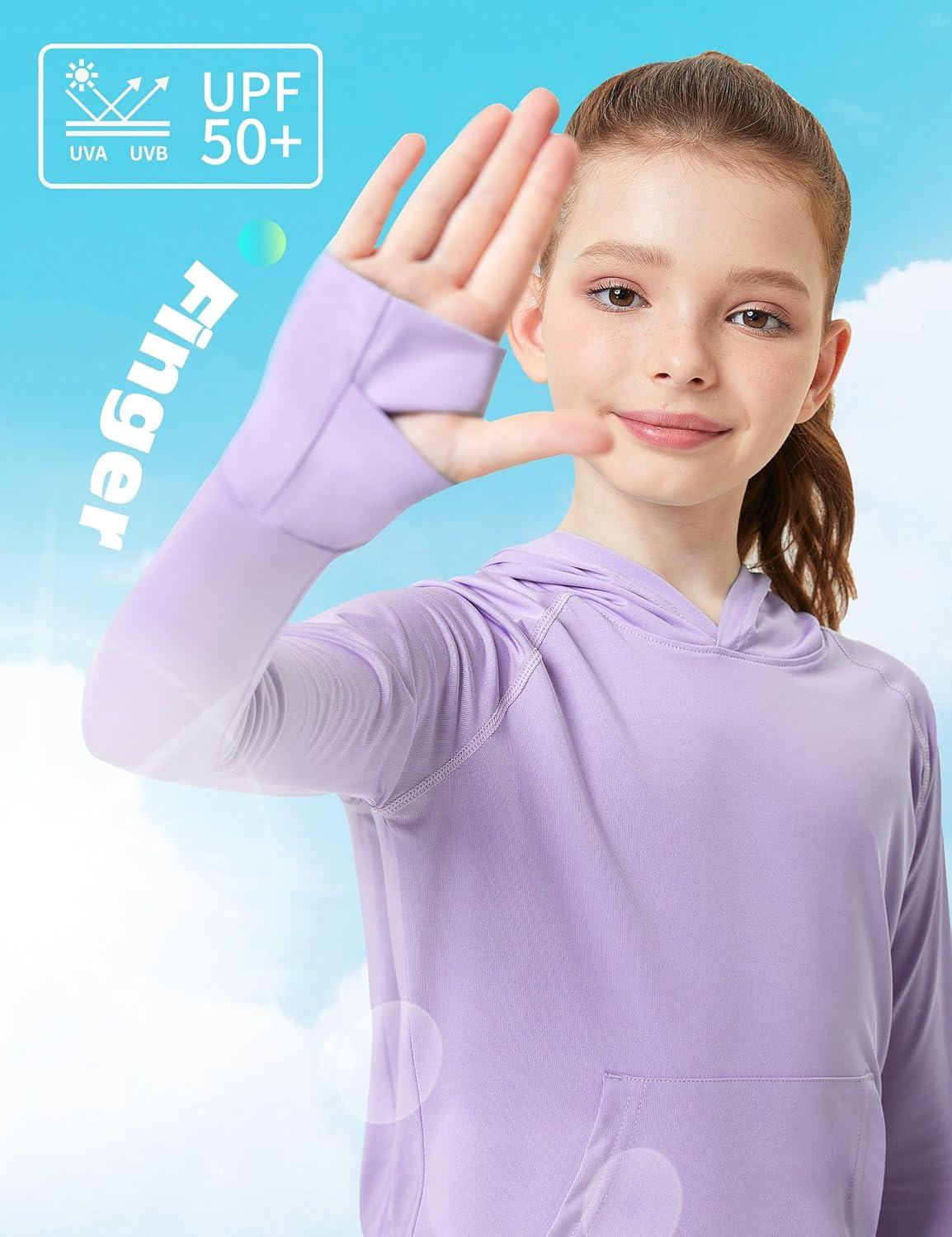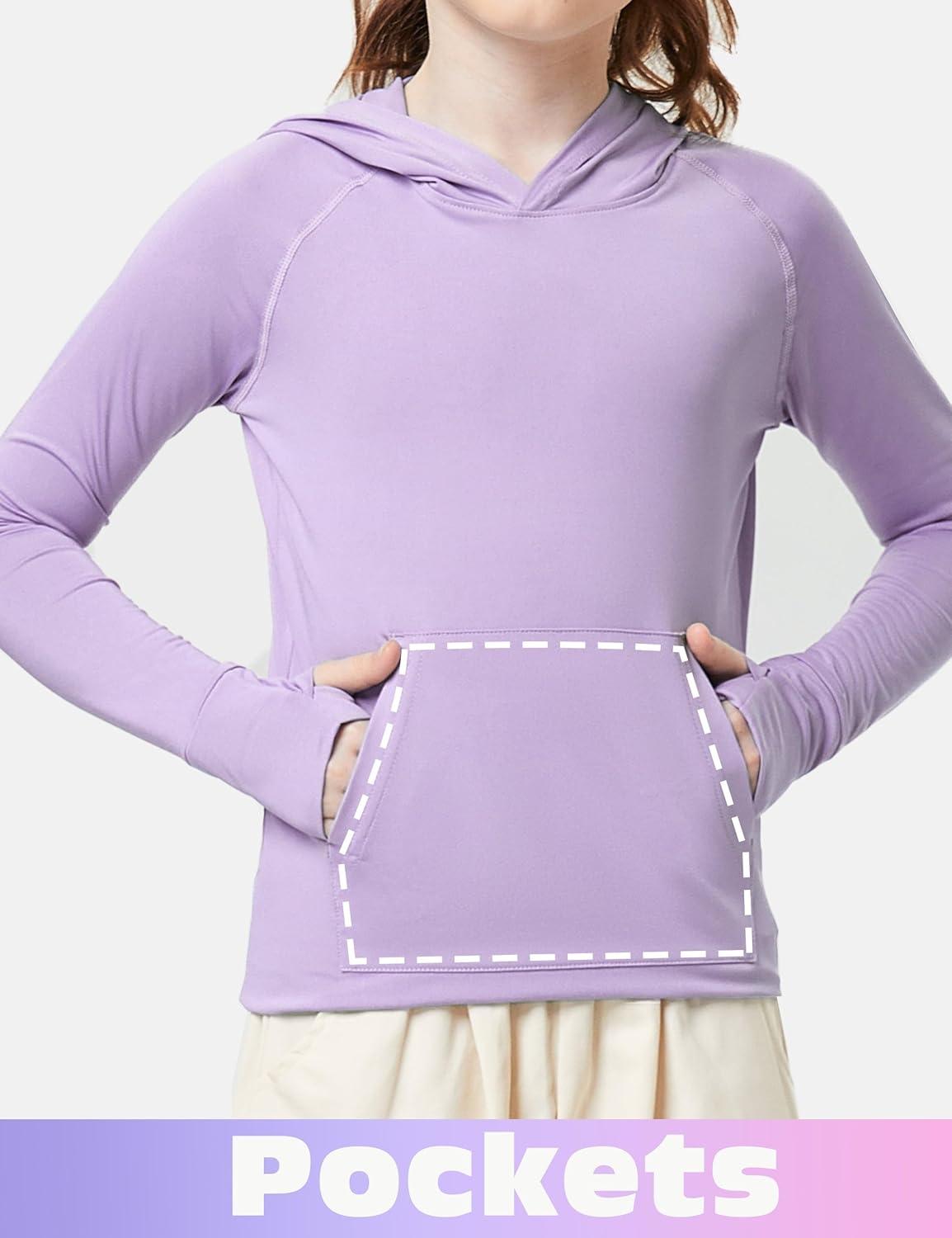 FitsT4 Sports Kids UPF50+ Sun Shirt with Pockets Thumbholes Girls Lightweight Quick Dry UV Protection Long Sleeve Hoodie(Purple)
