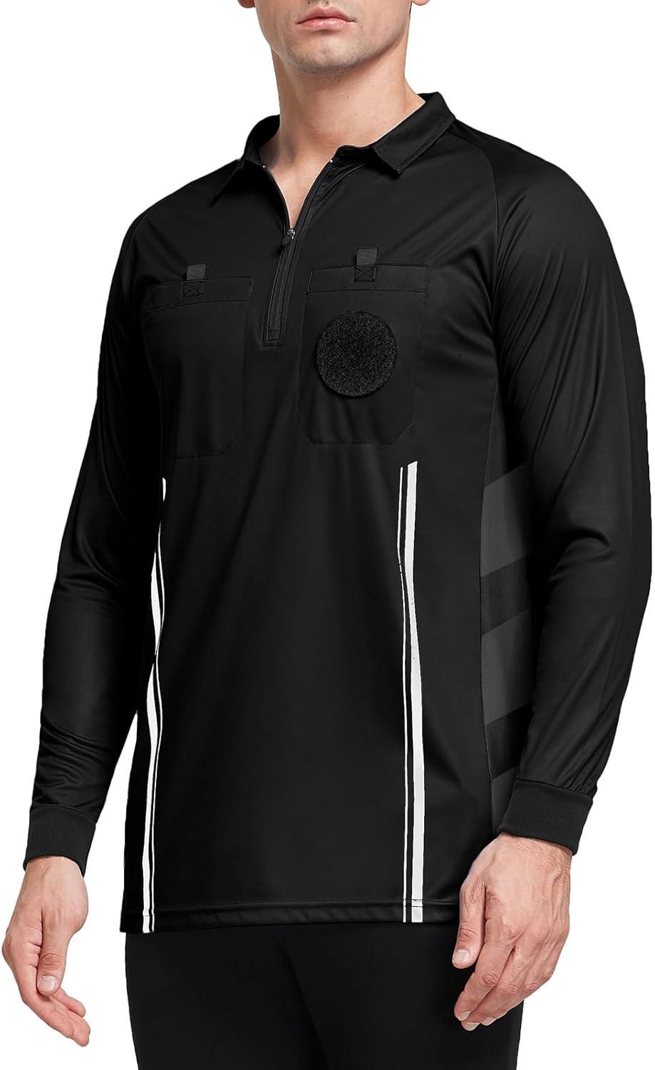 FitsT4 Sports Men’s Pro Soccer Referee Jersey Long Sleeve Ref Shirt(Black)