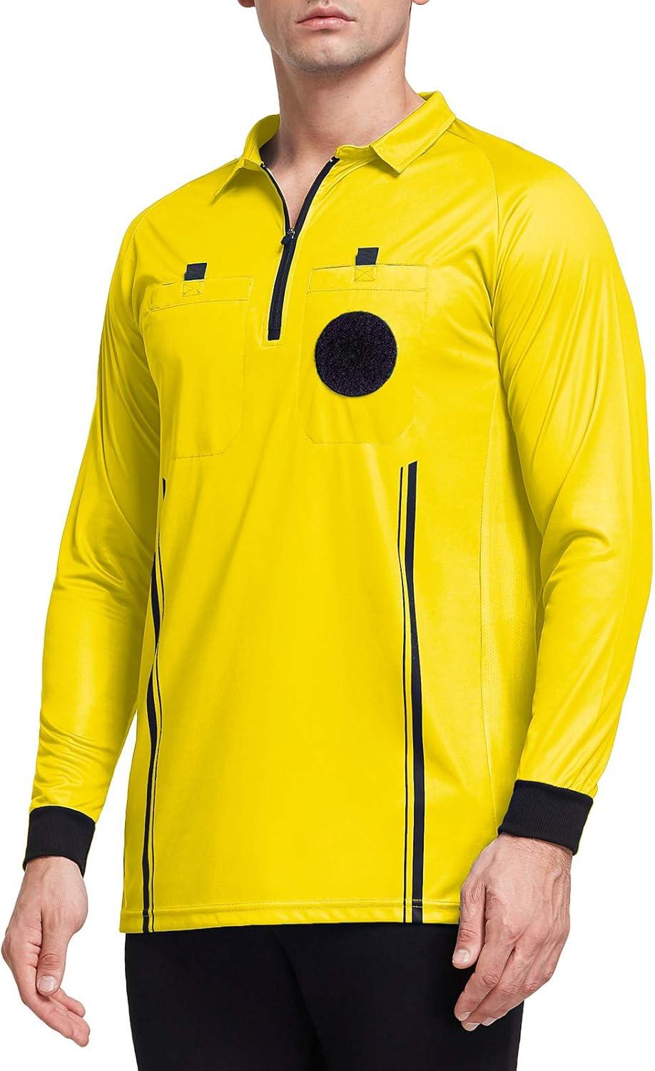 FitsT4 Sports Men’s Pro Soccer Referee Jersey Long Sleeve Ref Shirt(Yellow)