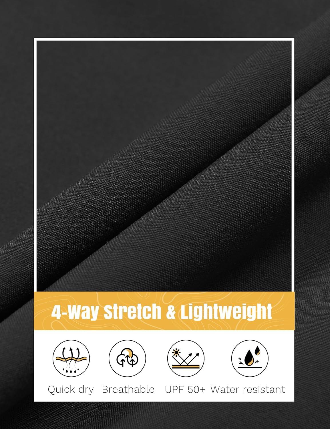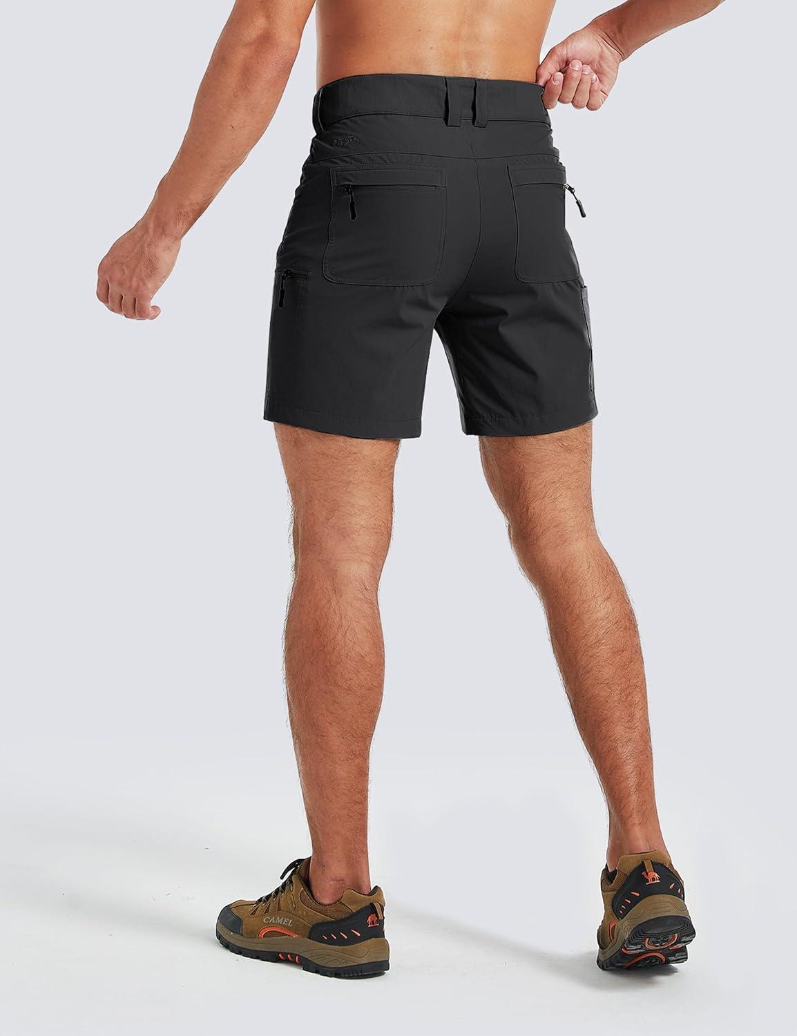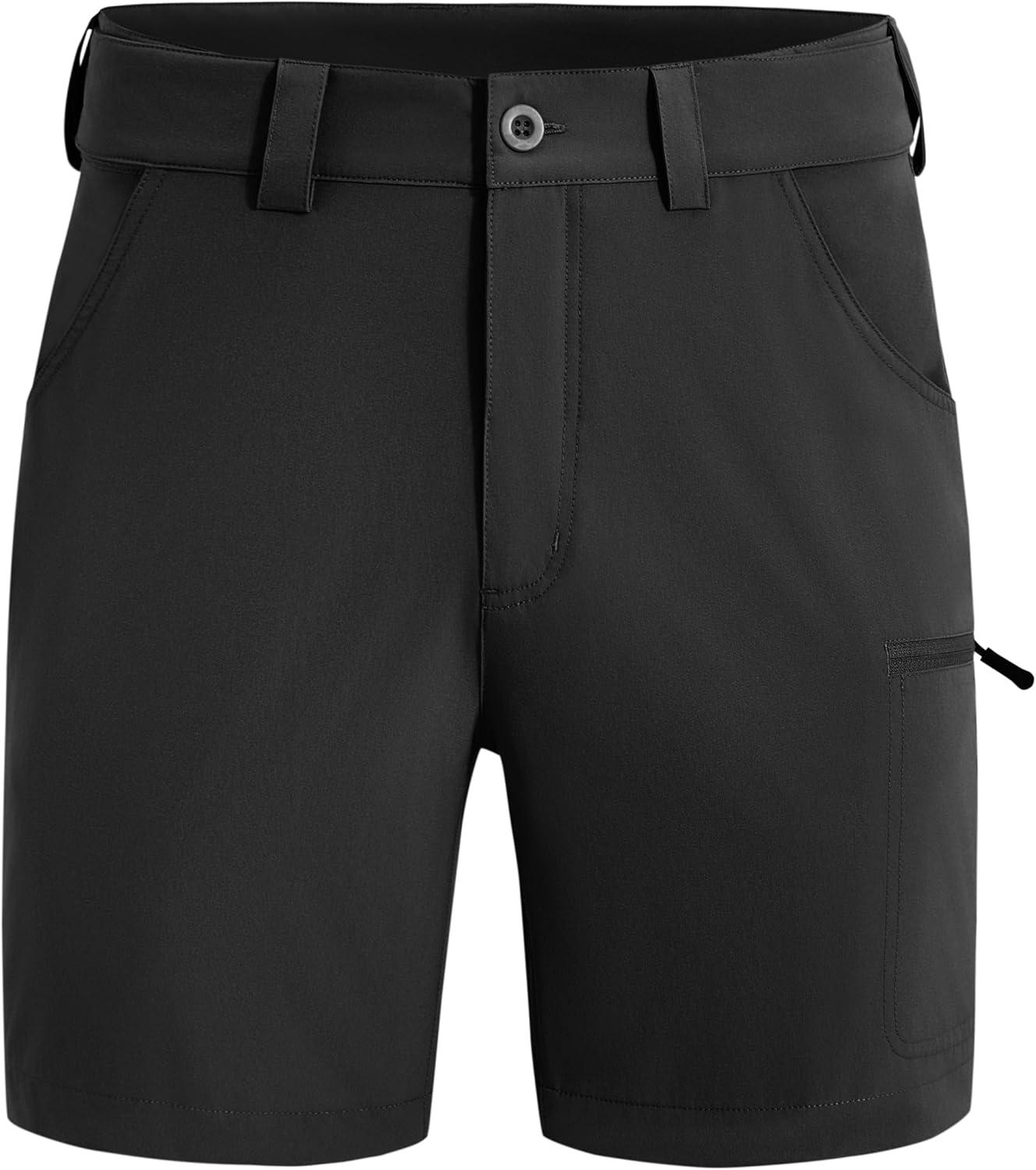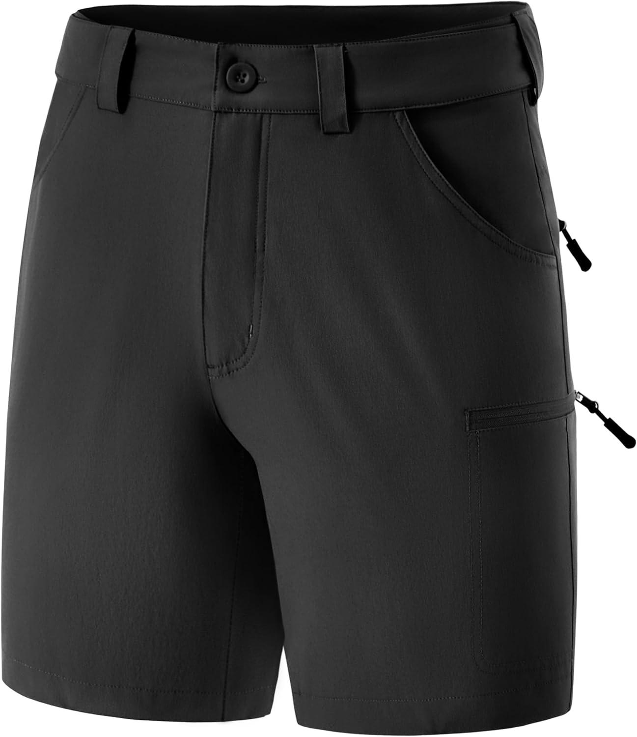 FitsT4 Sports Mens Shorts 7 Inch Inseam Stretch Water Resistant Hiking Cargo Shorts with Elastic Waistband(Black)