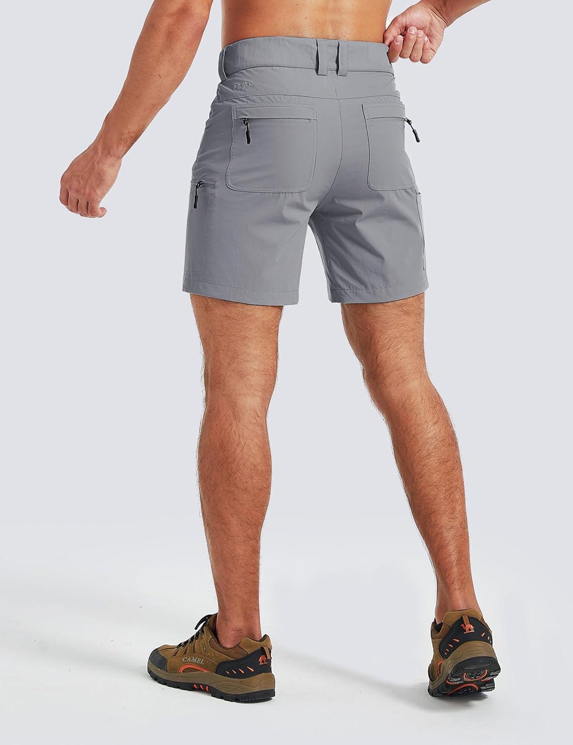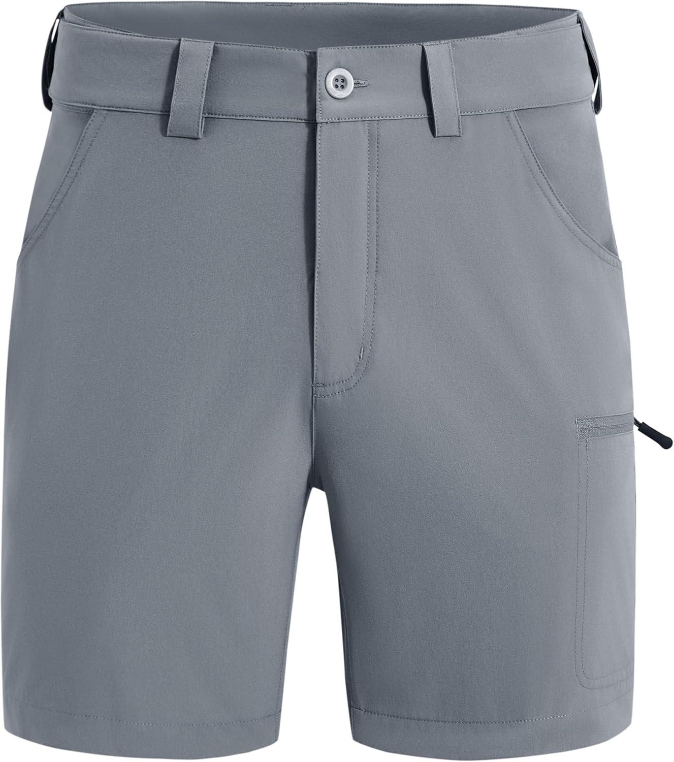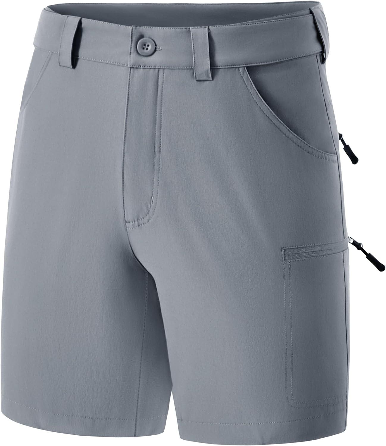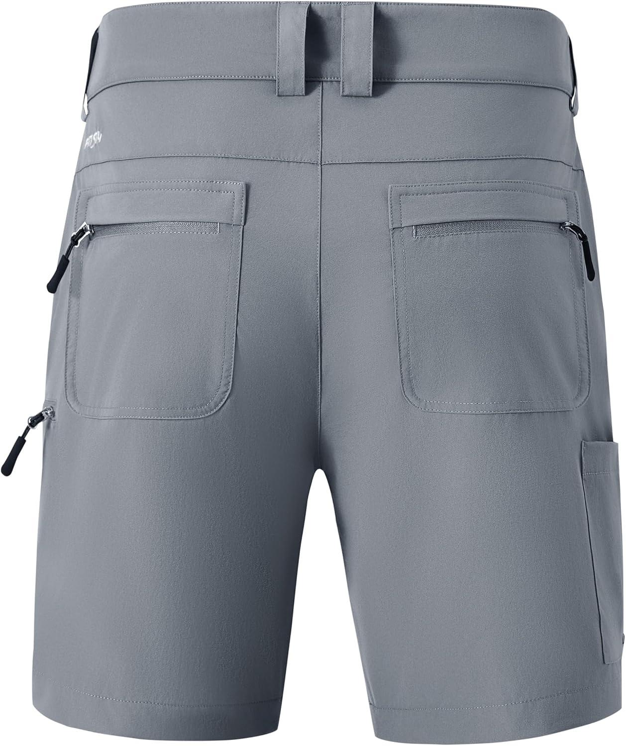 FitsT4 Sports Mens Shorts 7 Inch Inseam Stretch Water Resistant Hiking Cargo Shorts with Elastic Waistband(Grey)