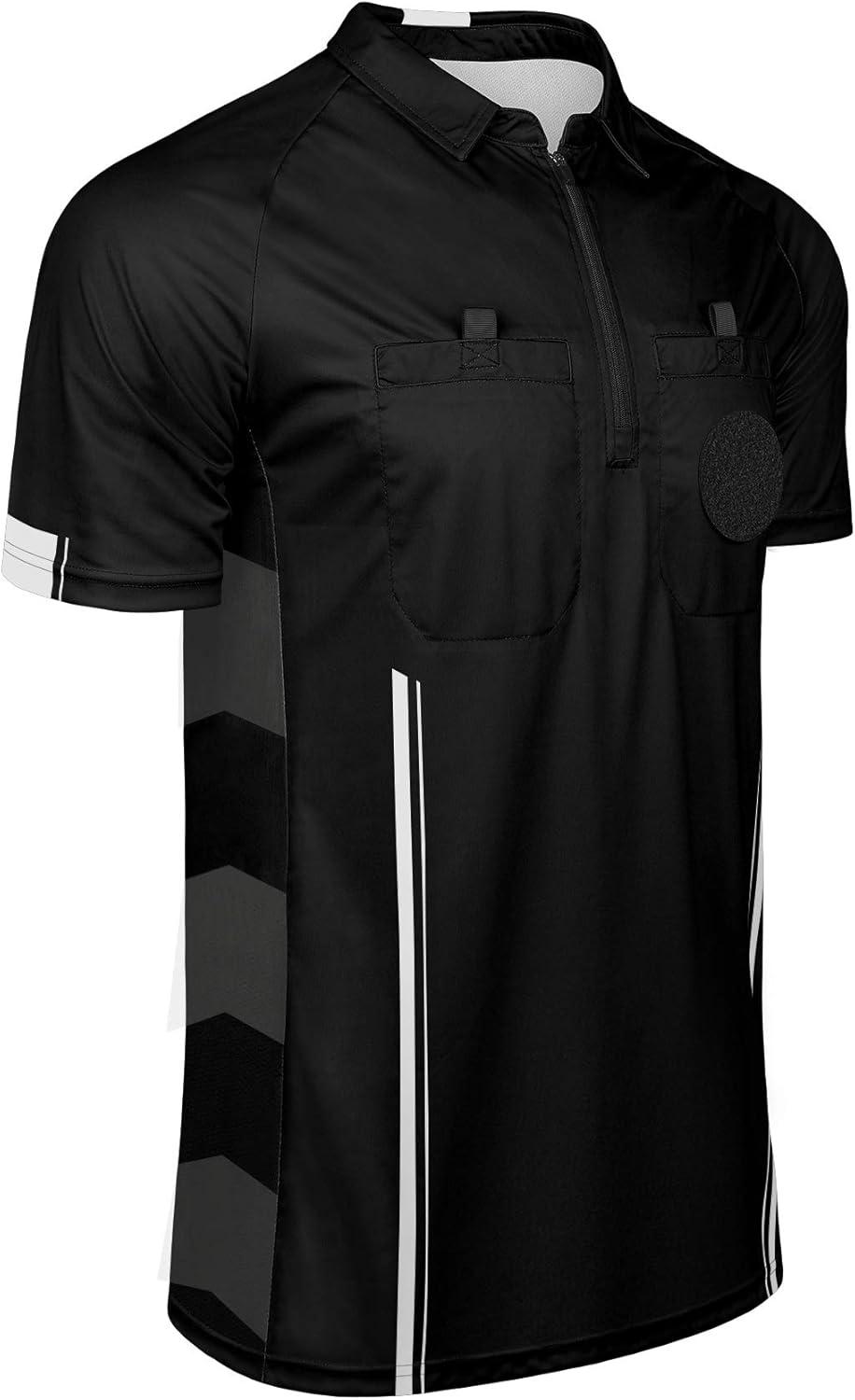 FitsT4 Sports Pro Soccer Referee Jersey Short Sleeve Ref Shirts(Black)