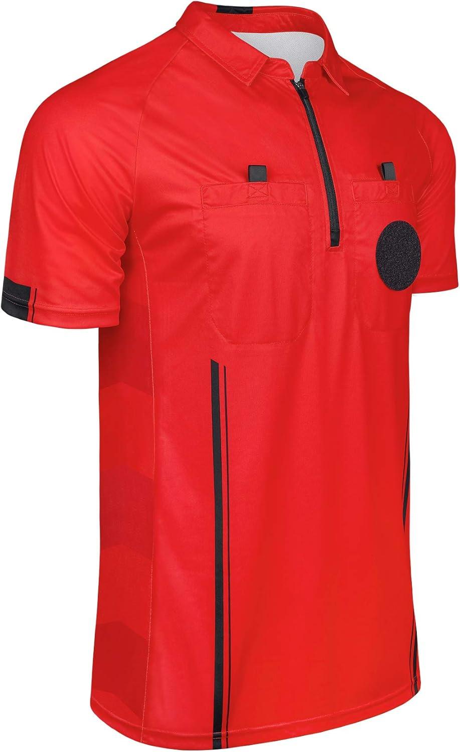 FitsT4 Sports Pro Soccer Referee Jersey Short Sleeve Ref Shirts(Red)