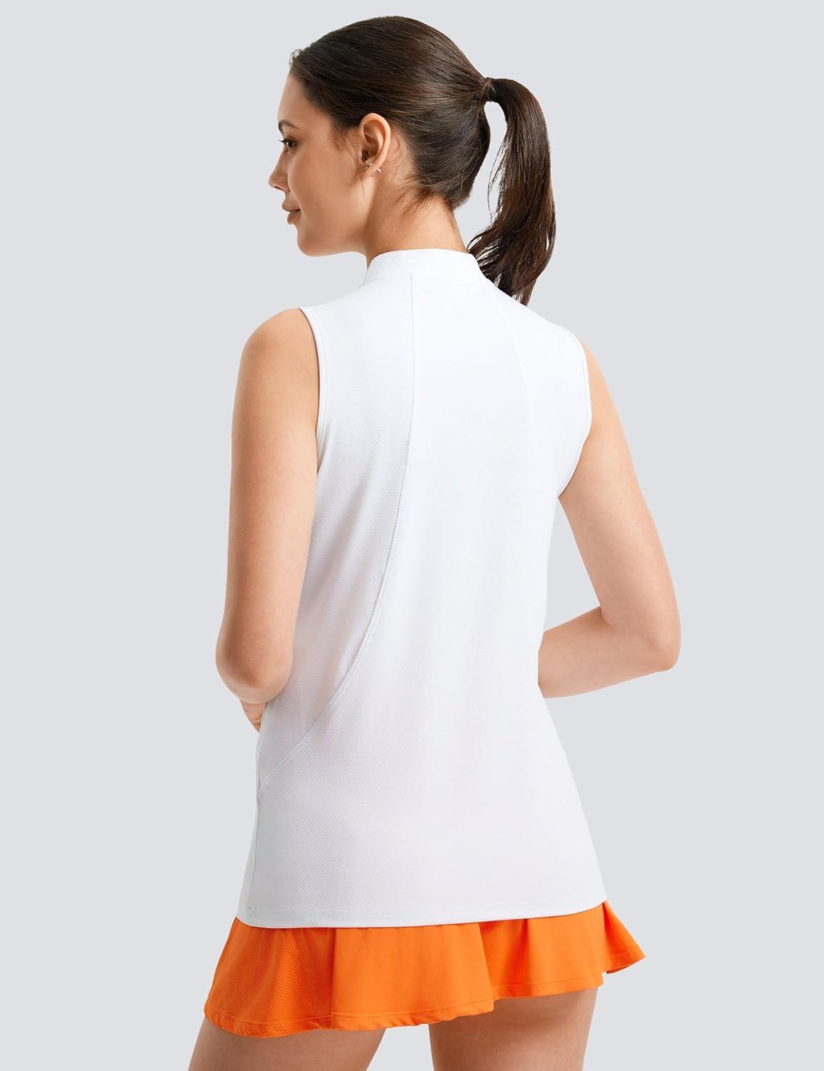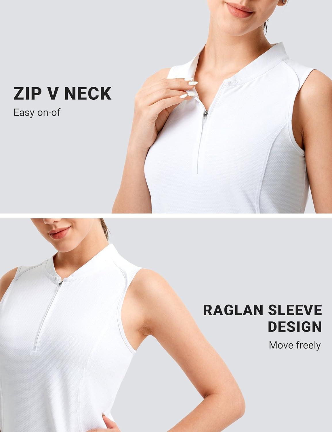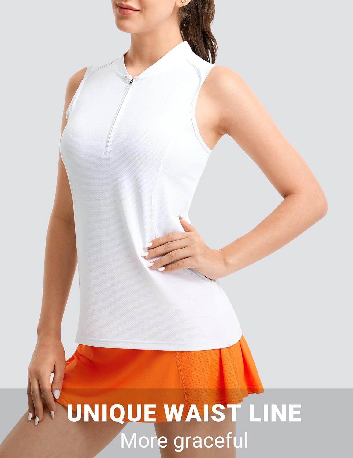 FitsT4 Sports Women Golf Polo Shirt Workout Tank Tops Sleeveless Zip V Neck Tennis Athletic T Shirts(White)