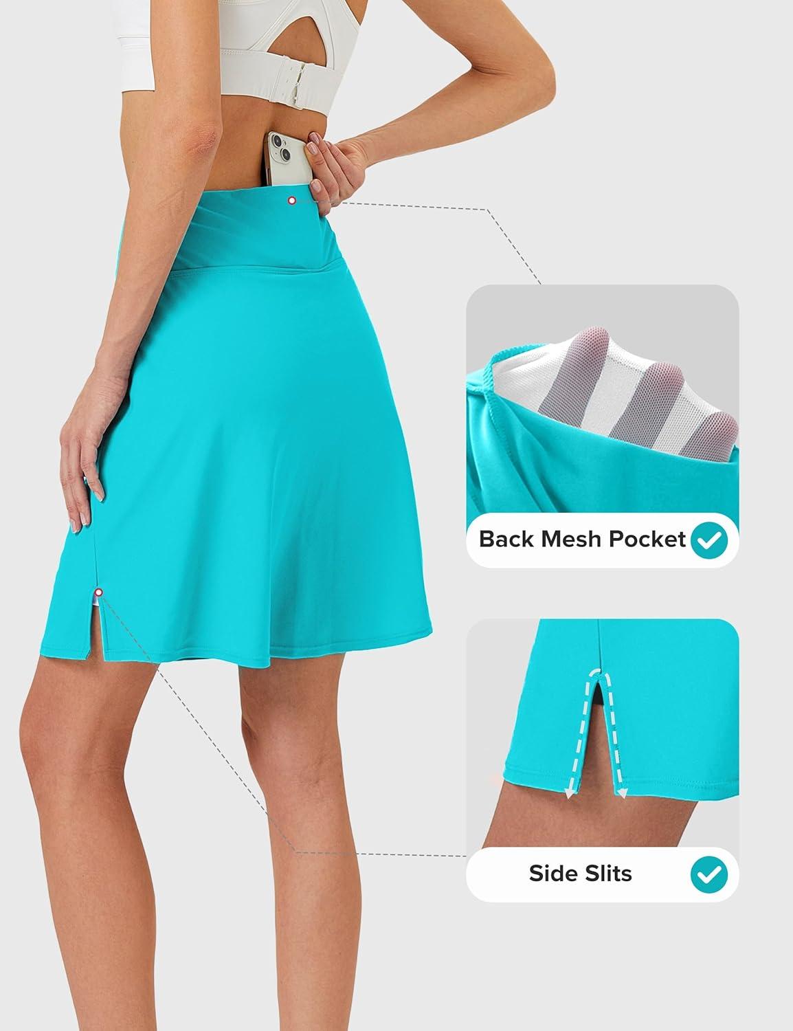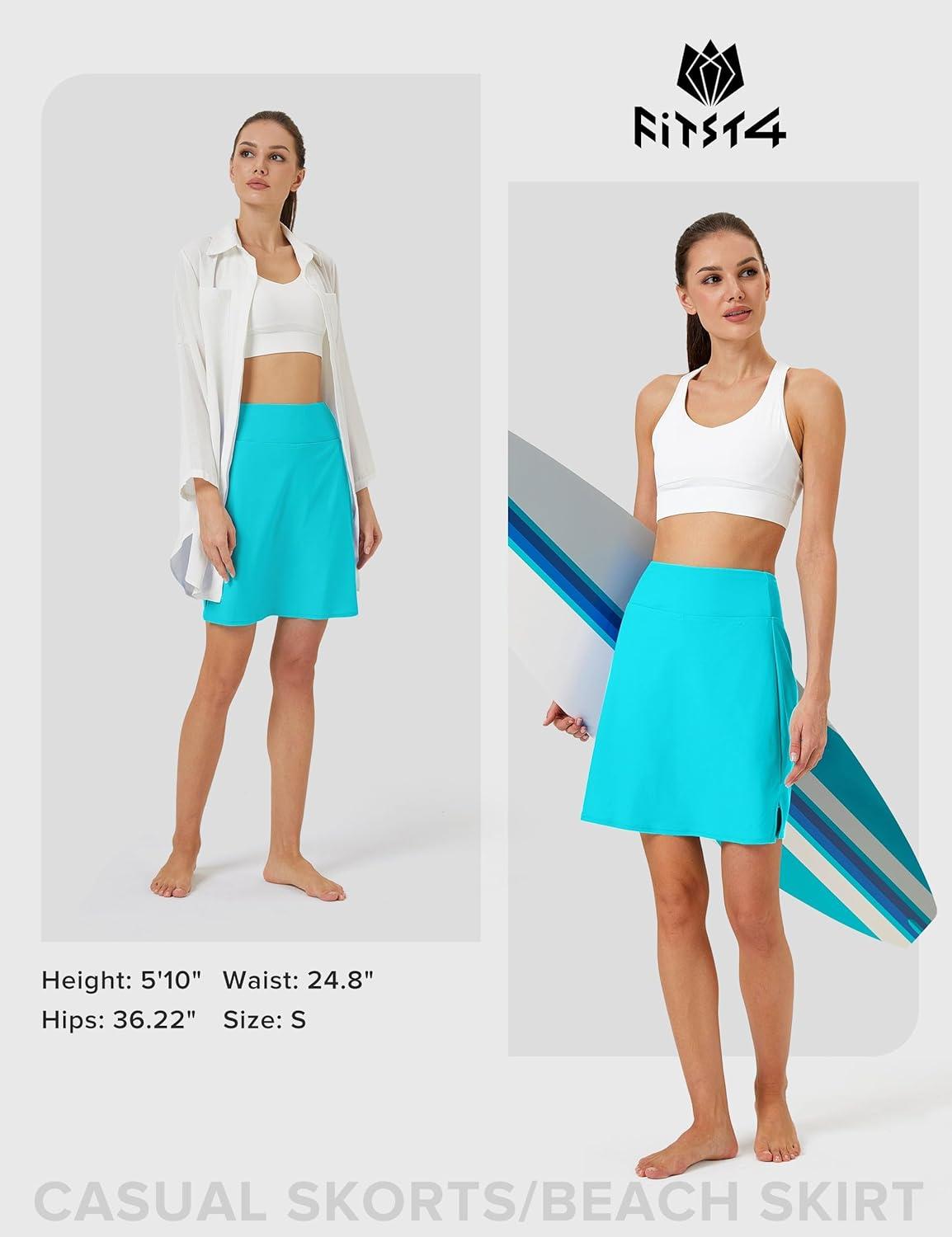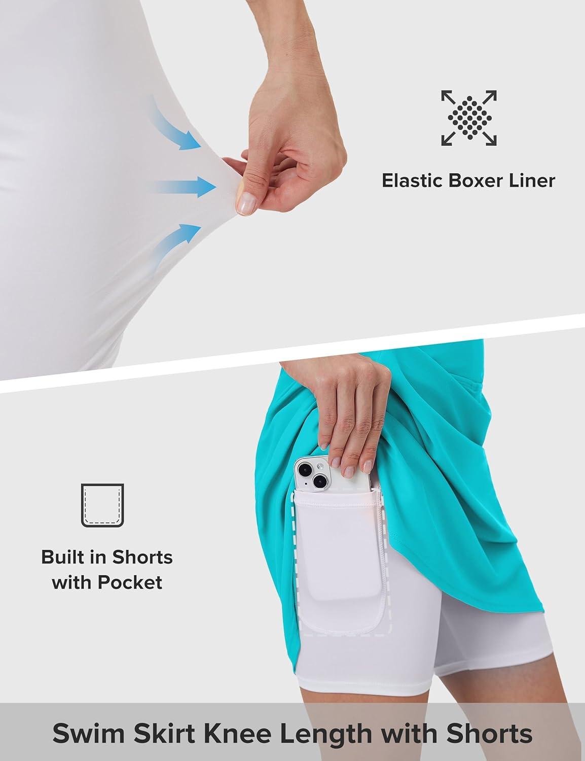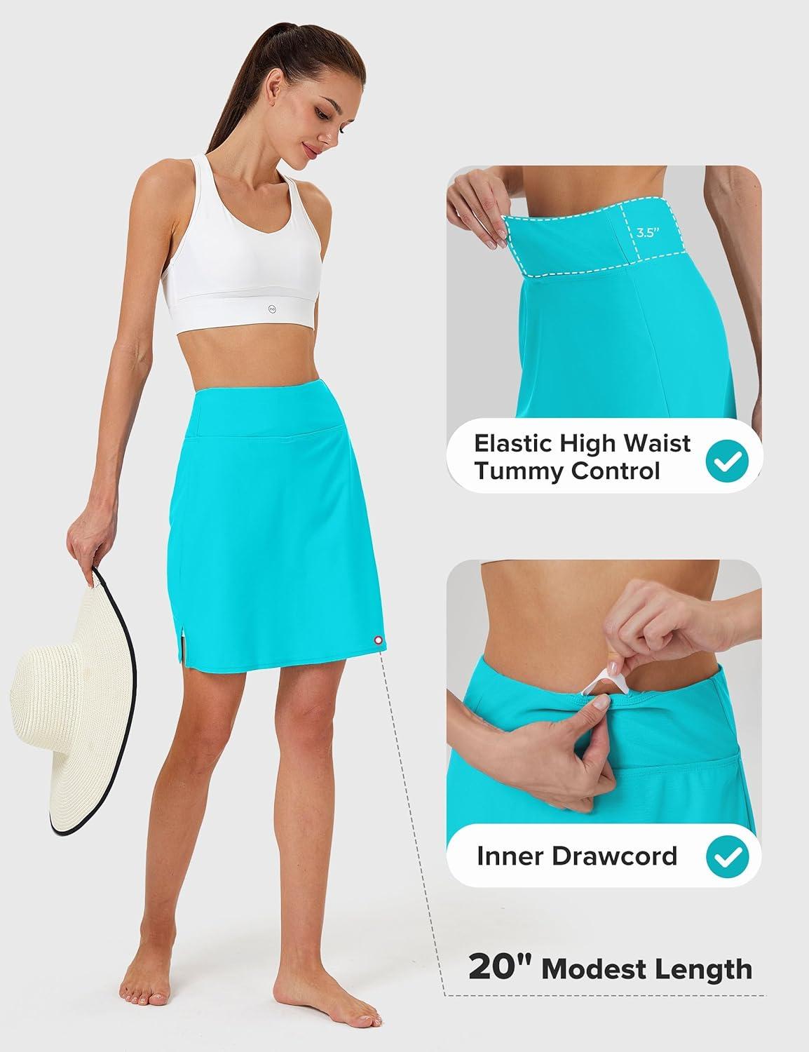 FitsT4 Sports Women’s 20” Swim Skirt Skort with Pocket High Waisted Modest Swimsuit Bathing Suit Bottoms(Aqua)