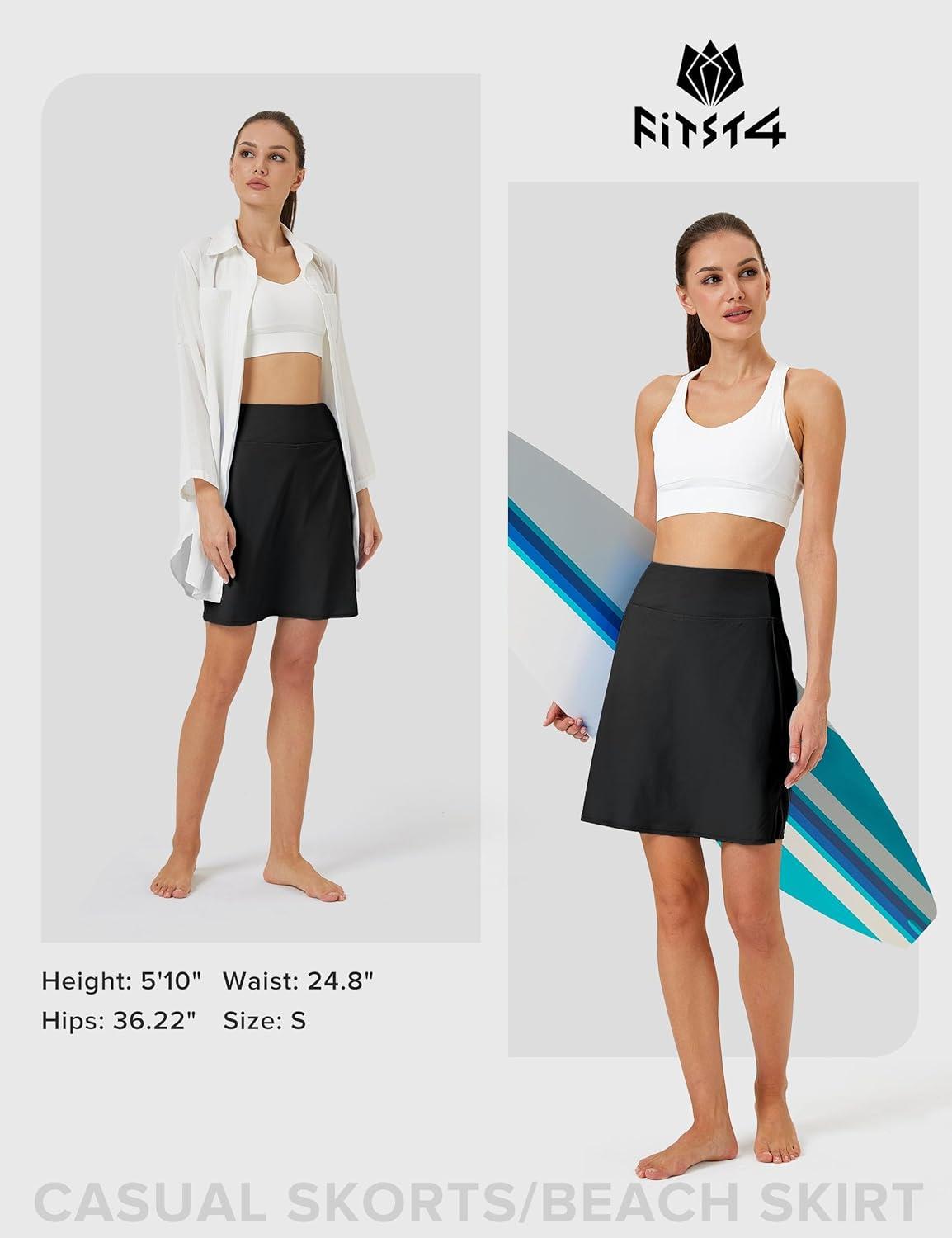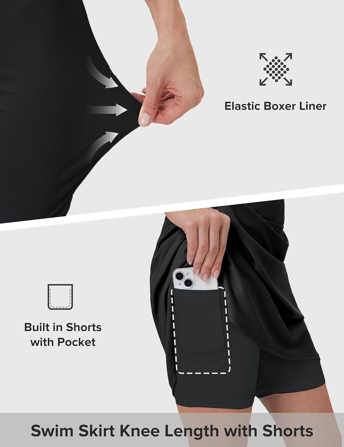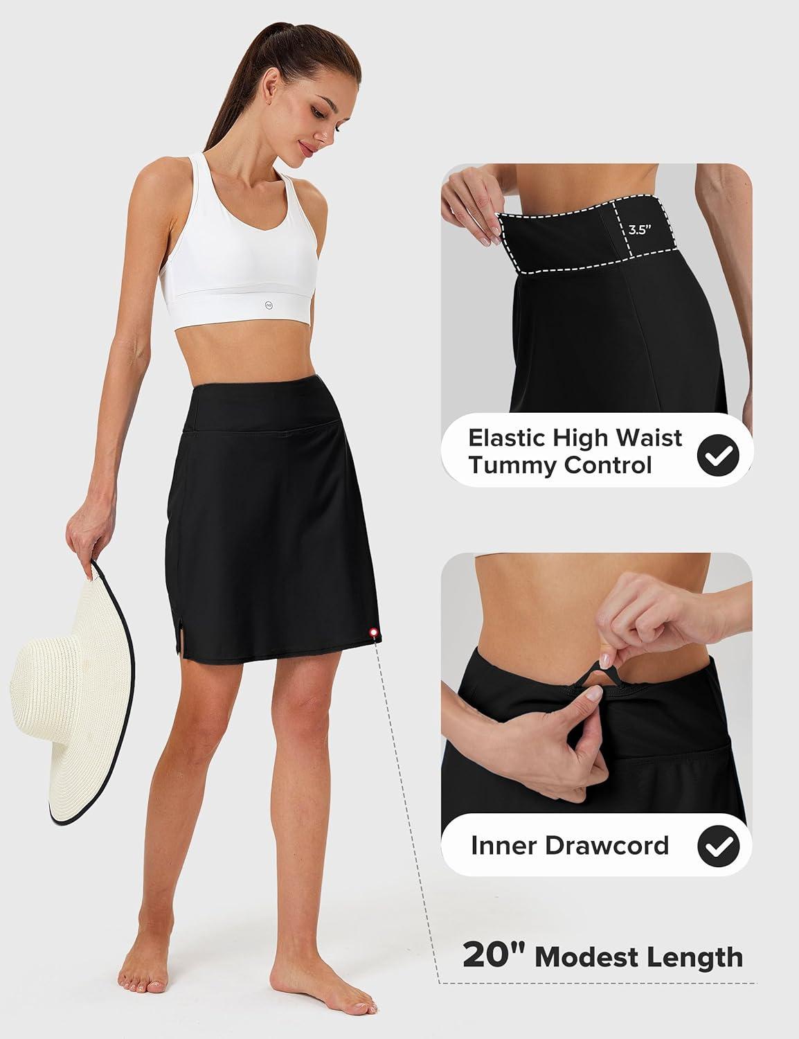 FitsT4 Sports Women’s 20” Swim Skirt Skort with Pocket High Waisted Modest Swimsuit Bathing Suit Bottoms(Black)