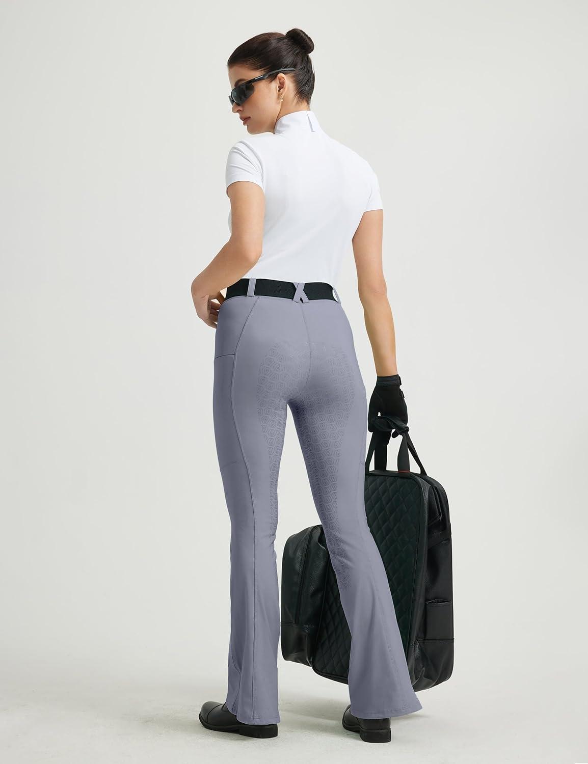 FitsT4 Sports Women’s Bootcut Horse Riding Pants Full Seat Equestrian Breeches Summer Riding Tights(Blue Grey)