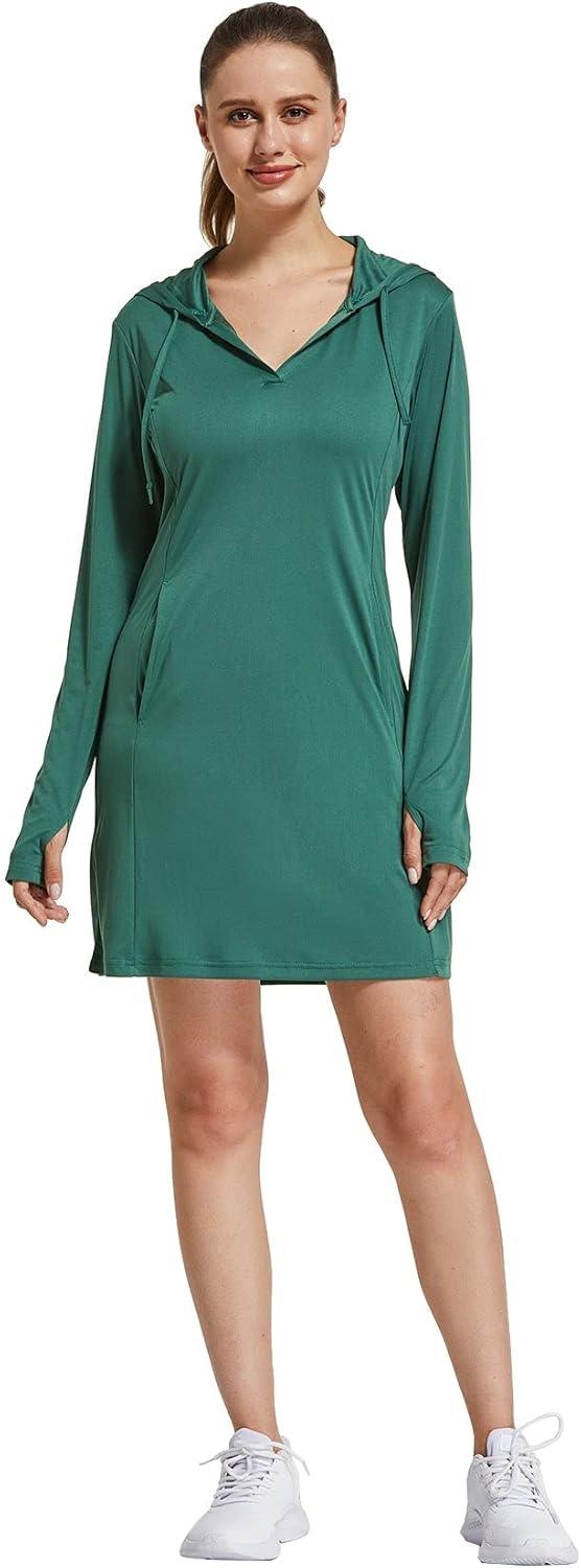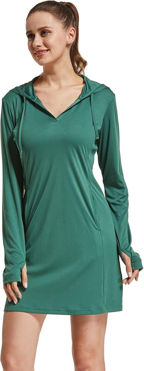 FitsT4 Sports Womens Cover-Up Dress Beach UPF 50+ SPF Sun Protection Long Sleeve Shirts(Green)