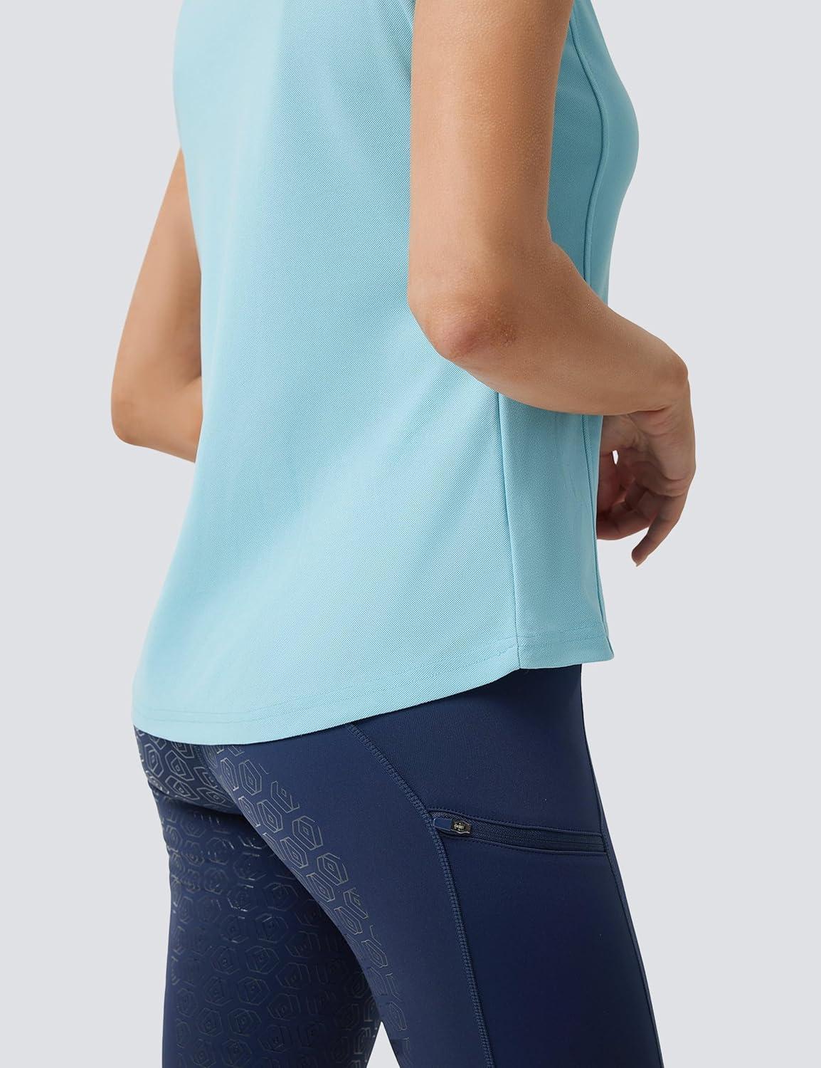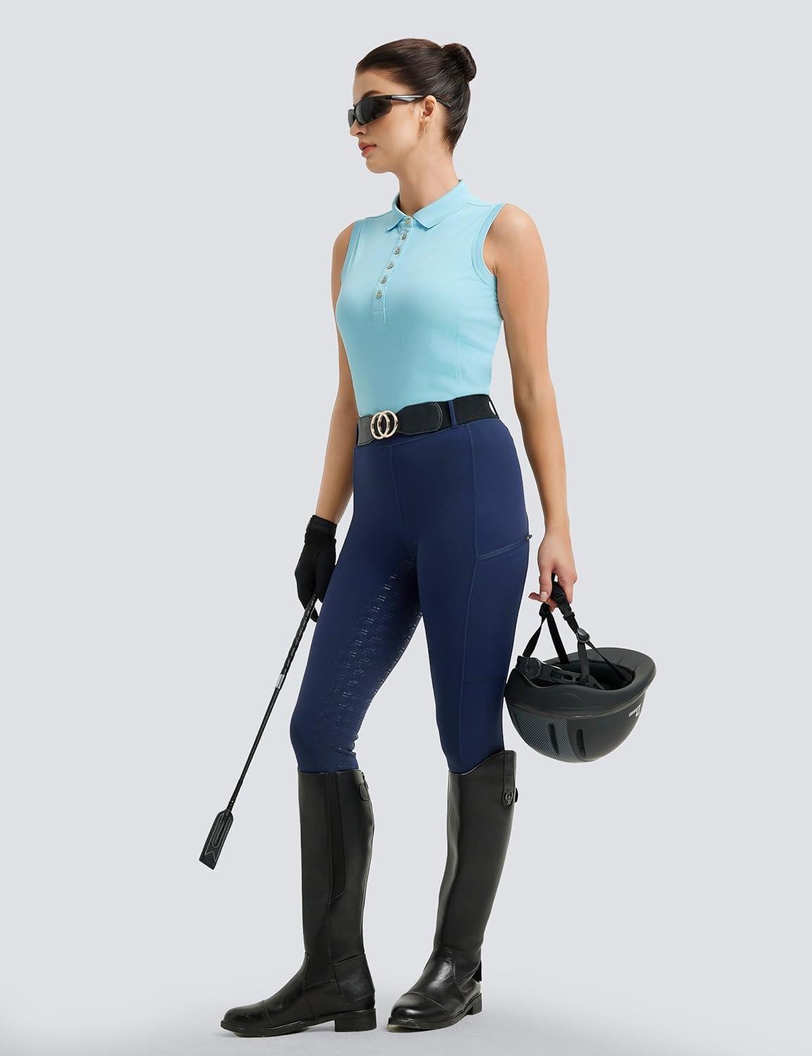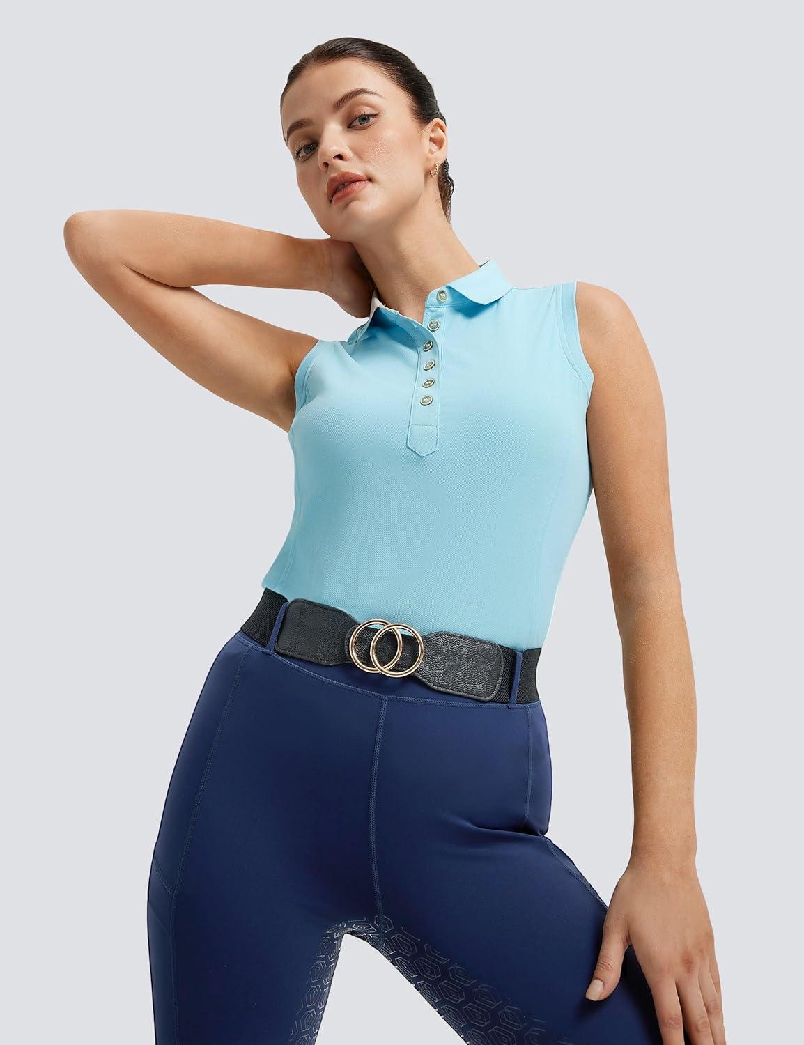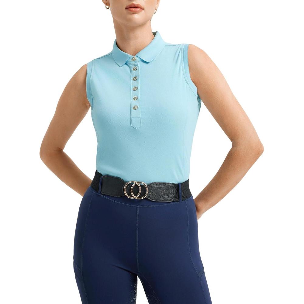 FitsT4 Sports Womens Equestrian Tank Top UPF50+ Sleeveless Horse Riding Shirts Polo Collar Button Up(Blue)