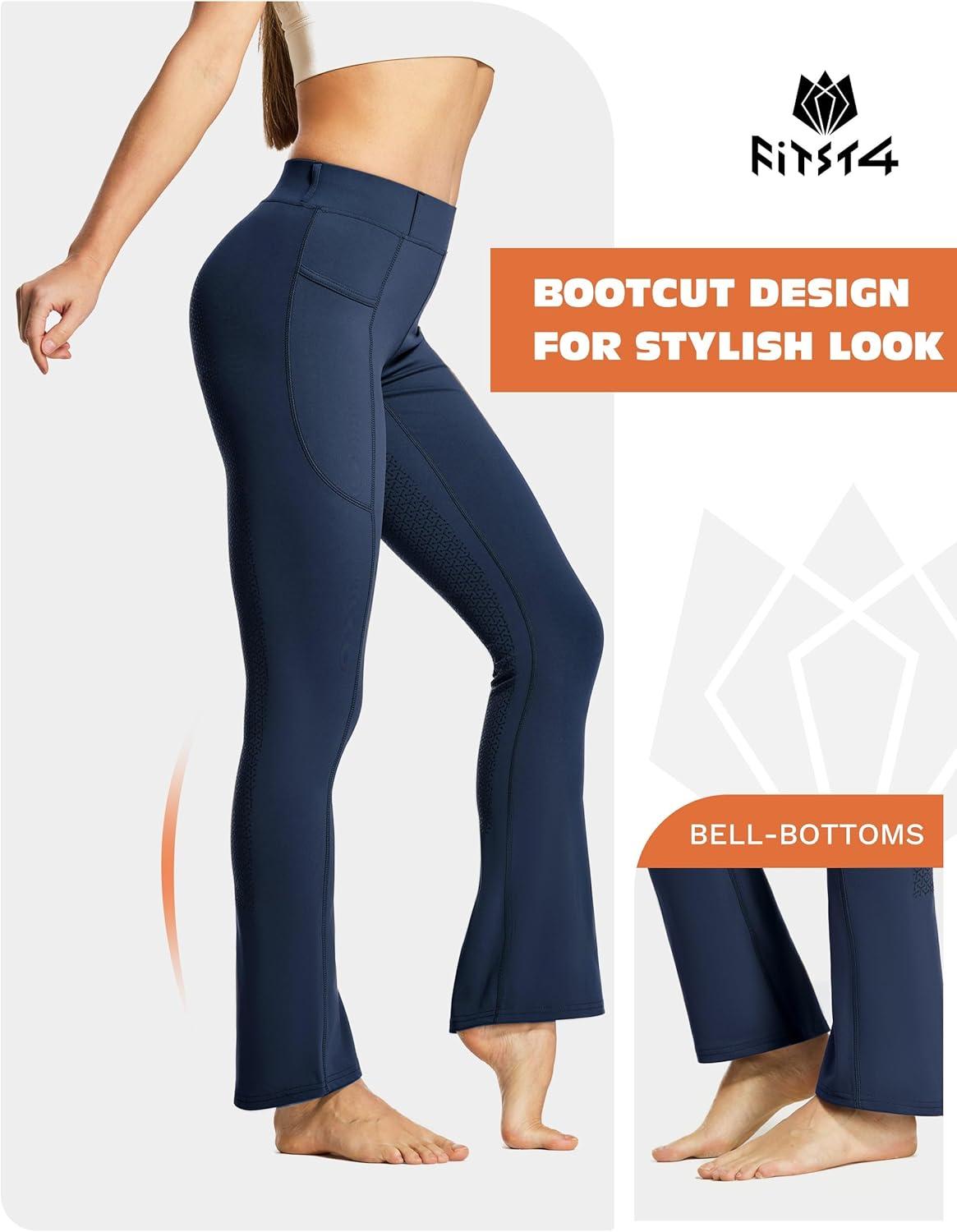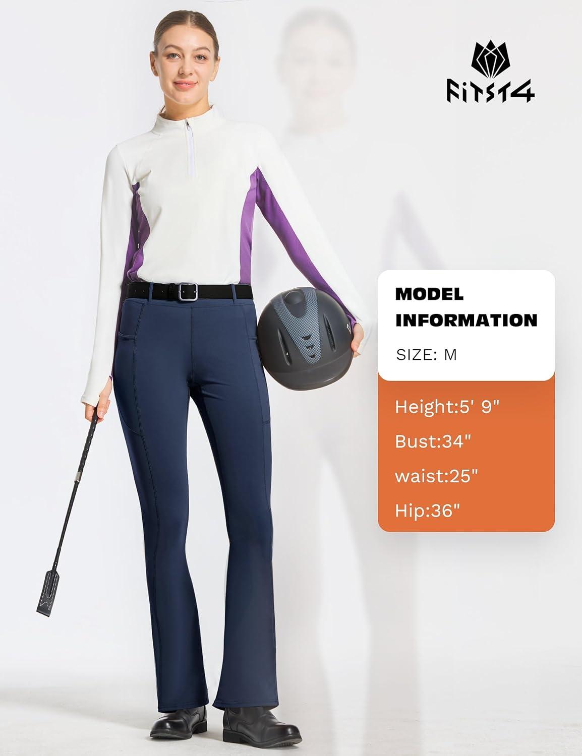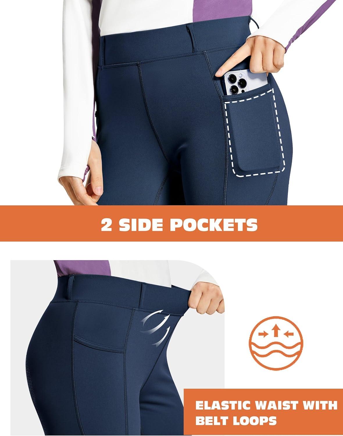 FitsT4 Sports Women’s Full Seat Horse Riding Pants Bootcut Riding Tights with Pockets Equestrian Breeches for Women(Blue)