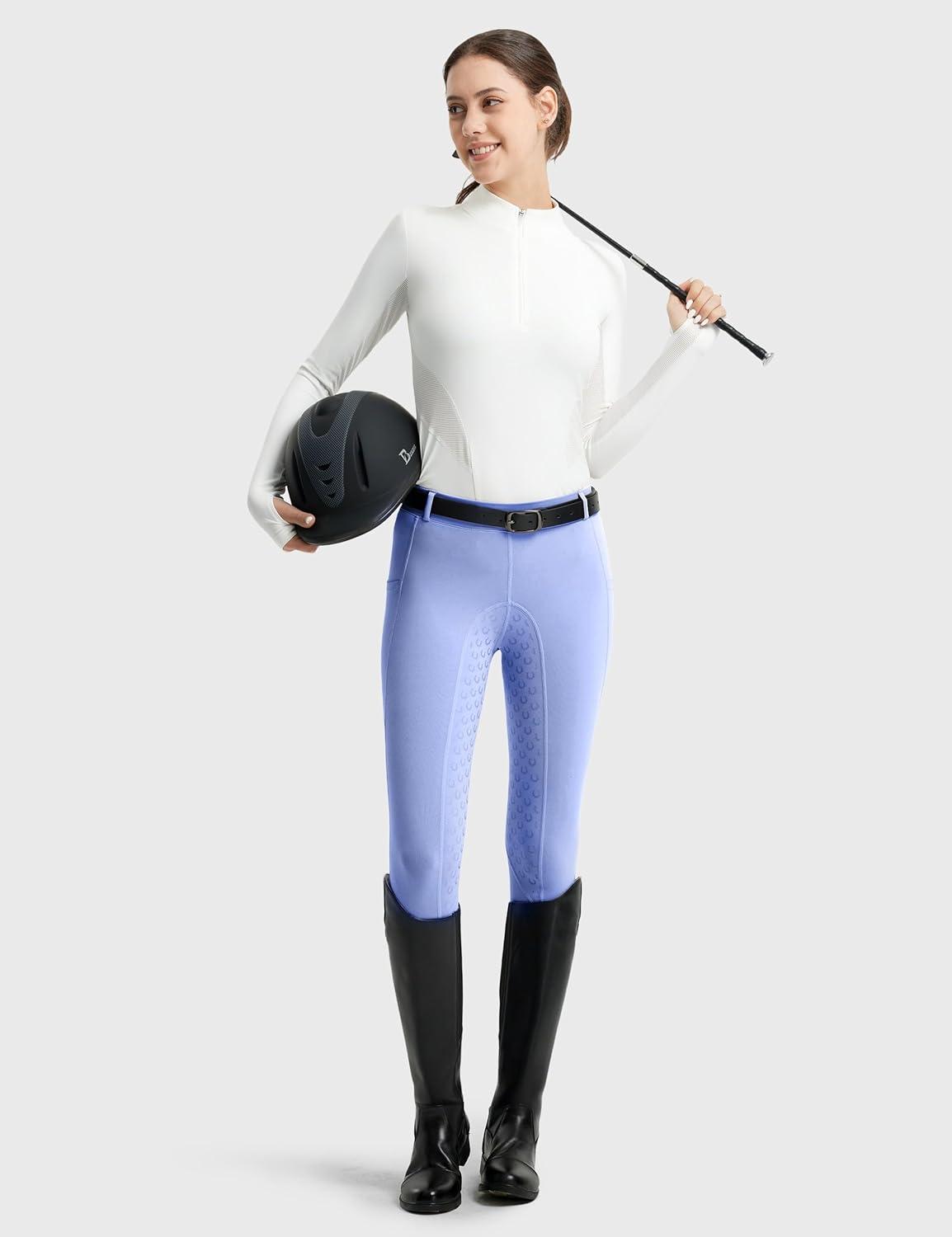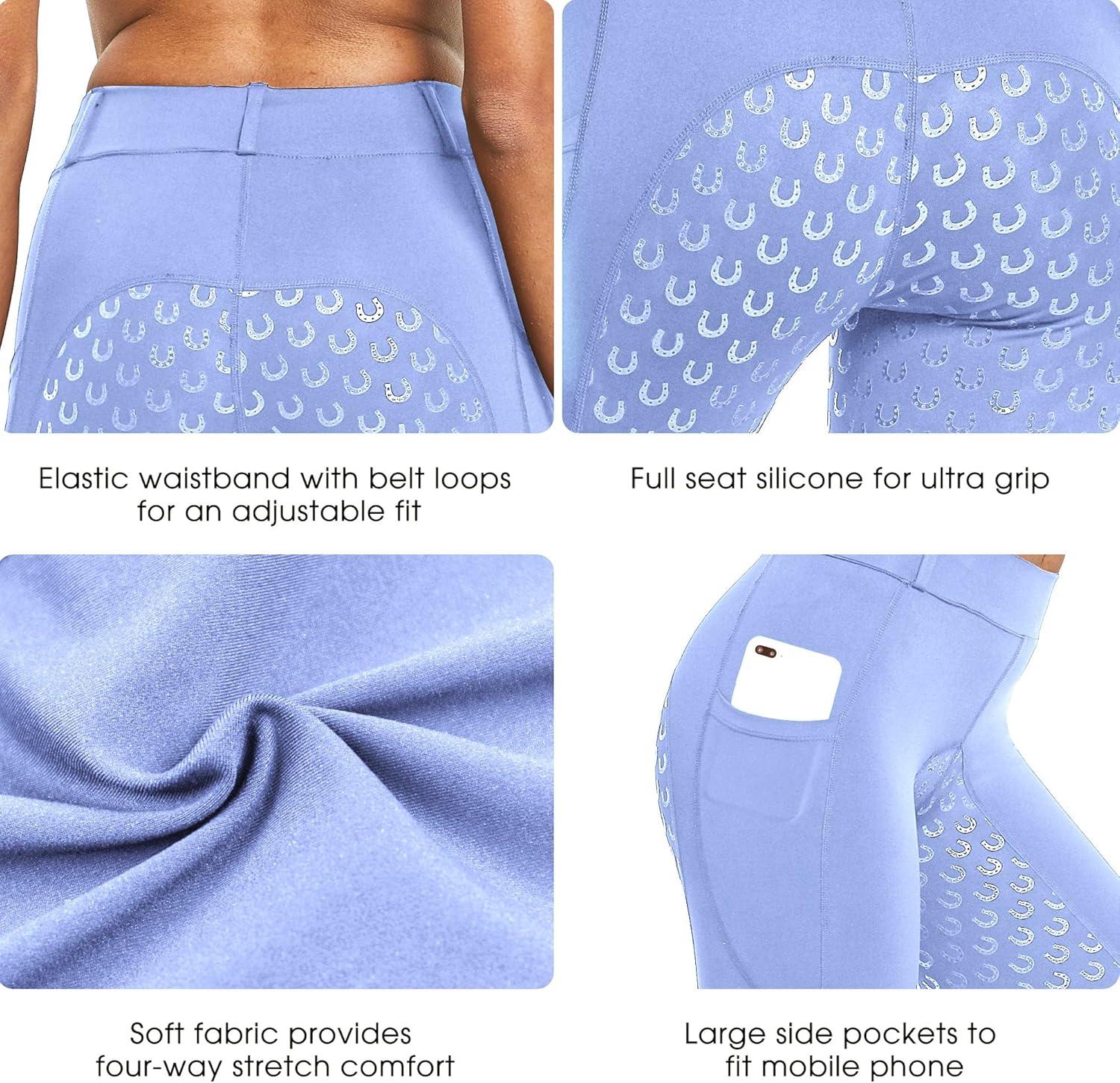 FitsT4 Sports Women’s Full Seat Riding Tights Active Silicon Grip Horse Riding Tights Equestrian Breeches(Lavender Purple)