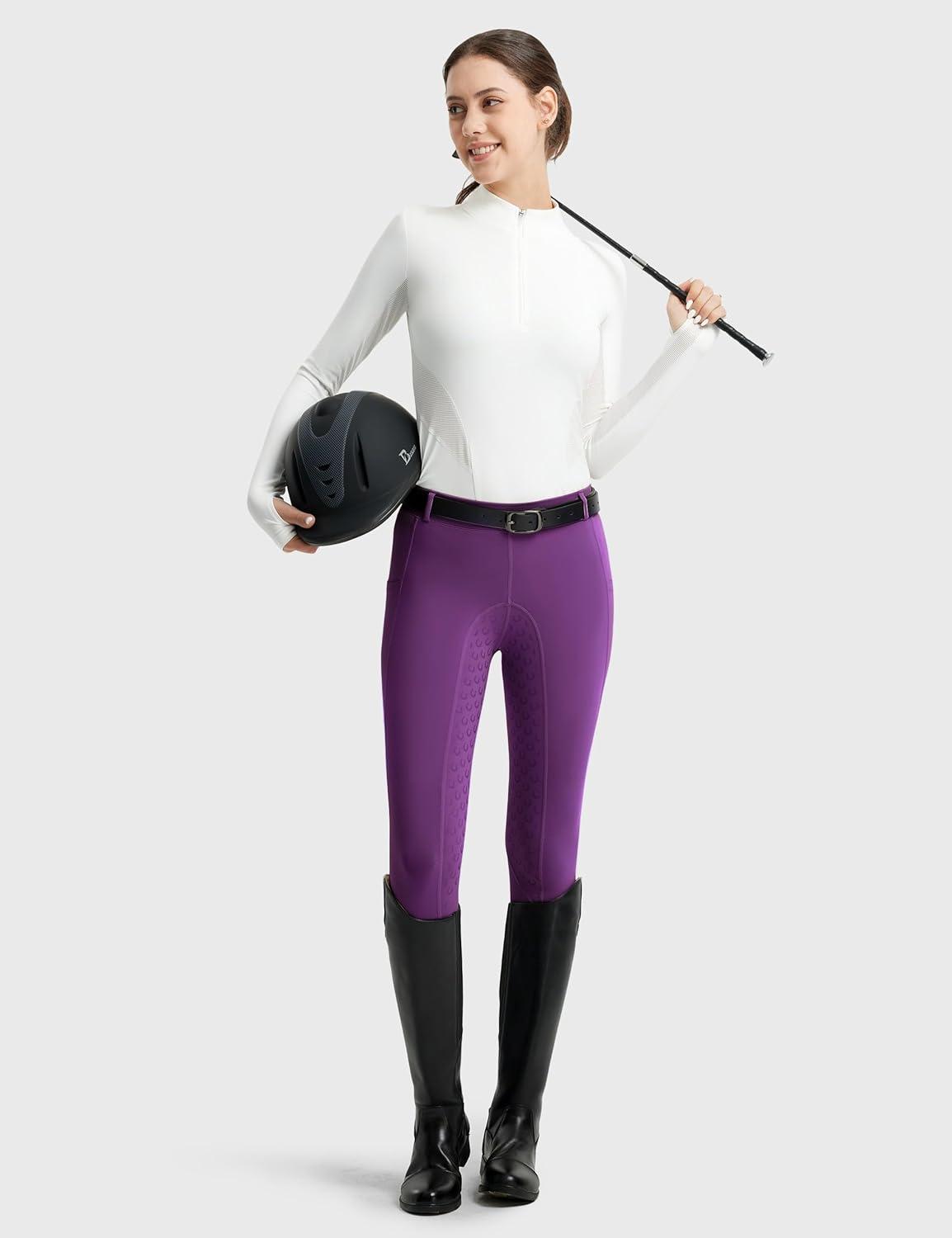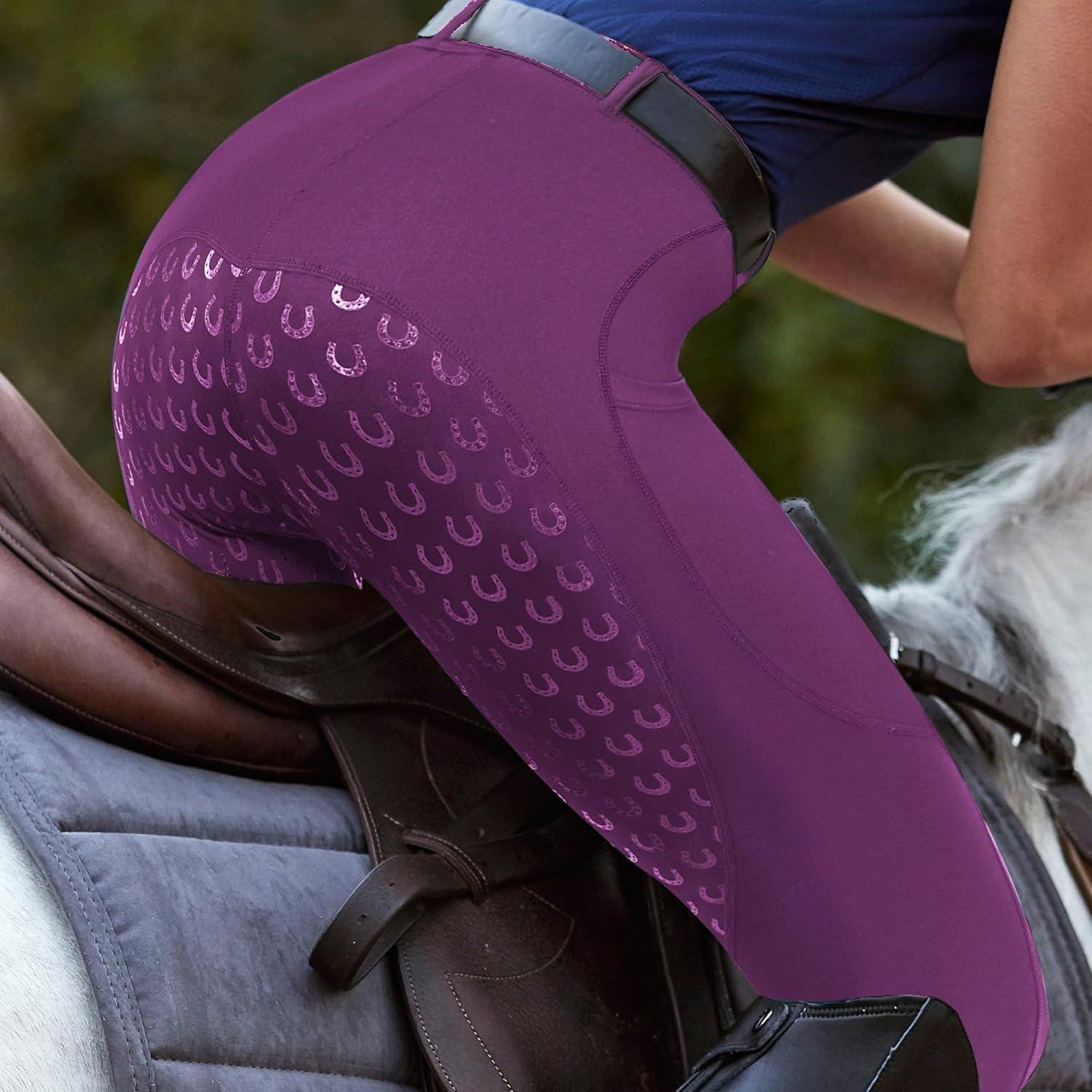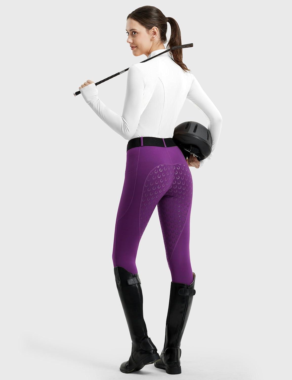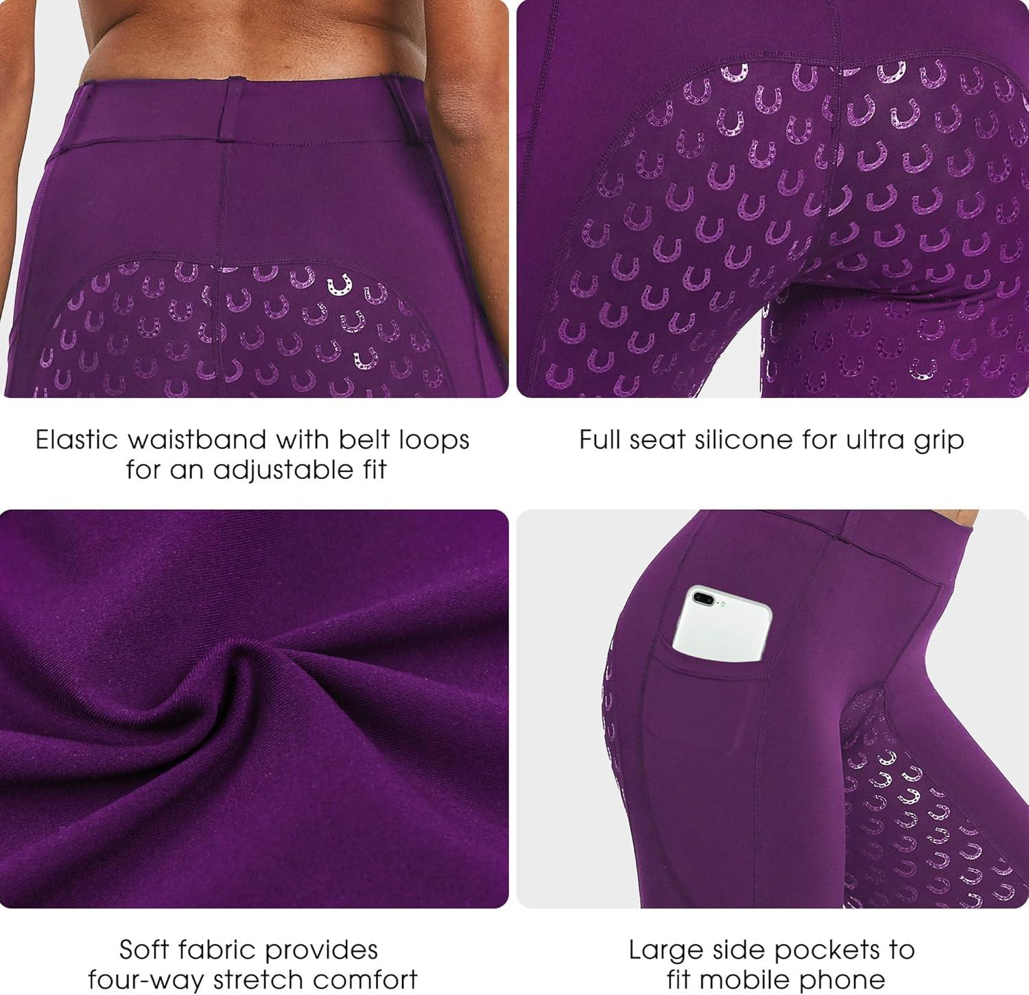 FitsT4 Sports Women’s Full Seat Riding Tights Active Silicon Grip Horse Riding Tights Equestrian Breeches(Purple)