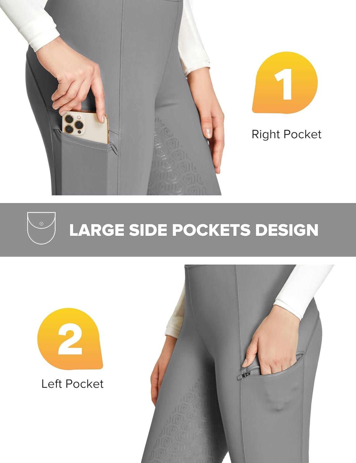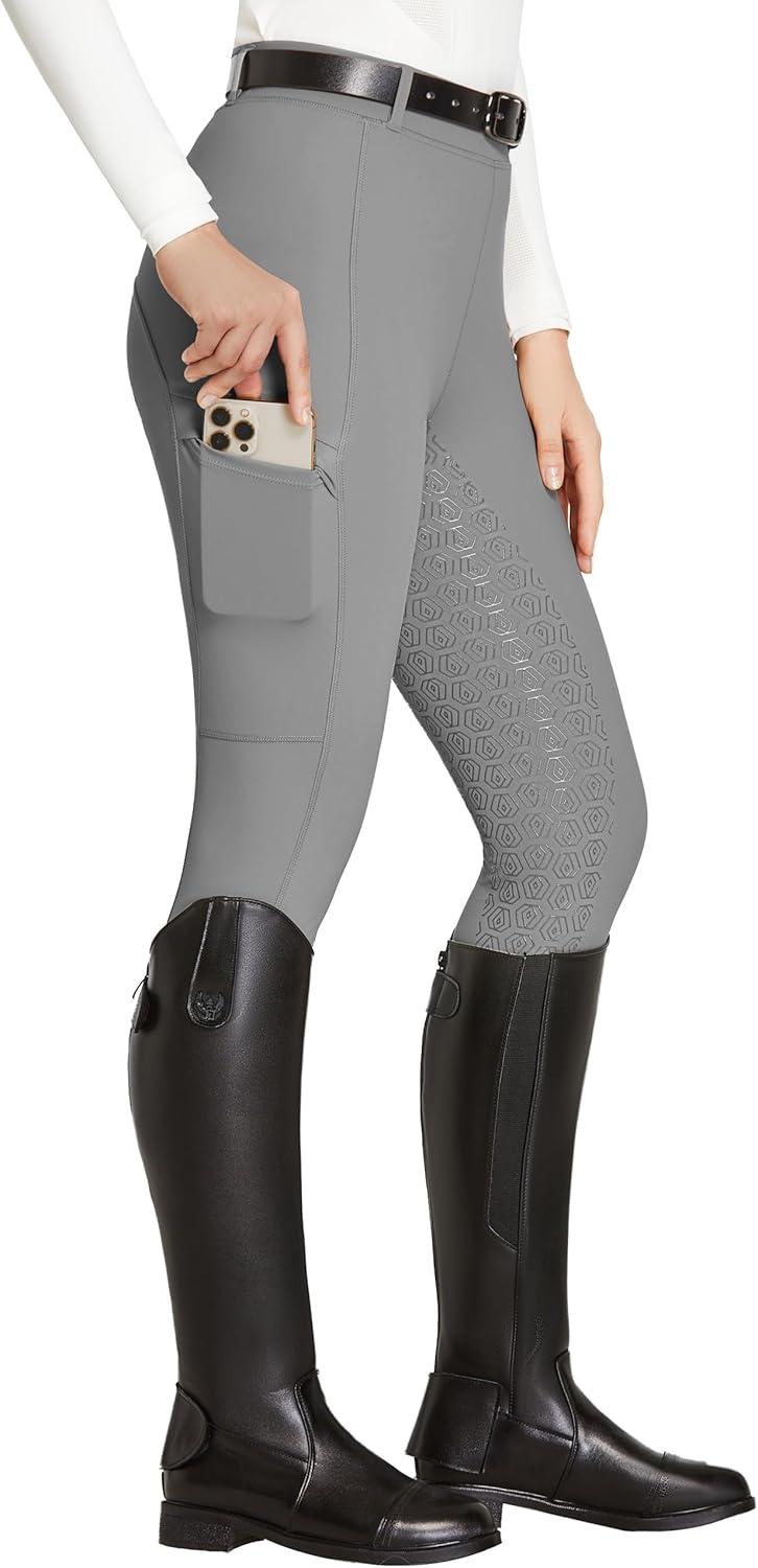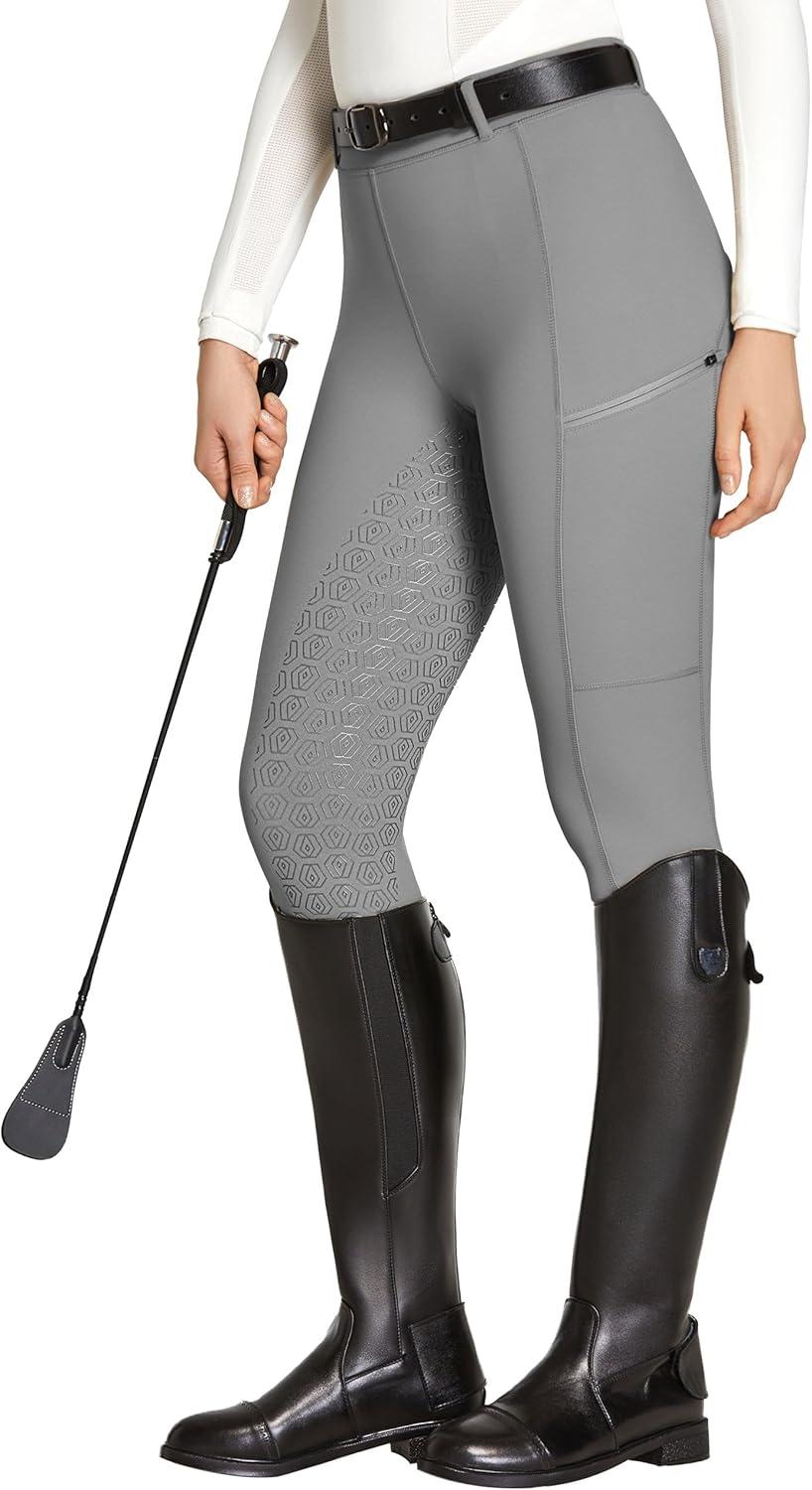 FitsT4 Sports Women’s Full Seat Riding Tights with Zipper Pockets Horseback Riding Pants Equestrian Breeches for Women(Grey)