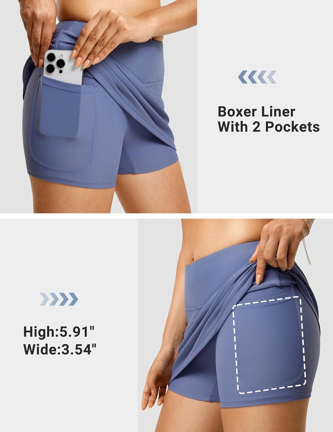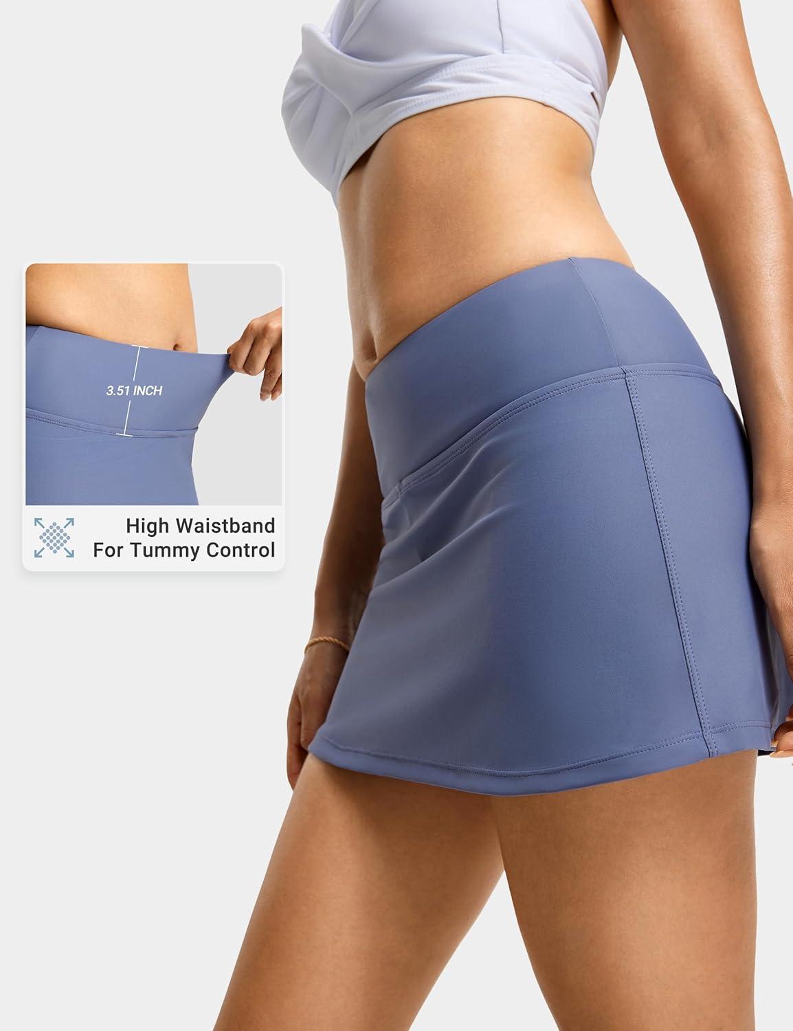 FitsT4 Sports Womens High Waisted 13″ Mini Swim Skirts with Pockets Tummy Control Bathing Suit Skirt Bottoms for Women(Grayish Blue)