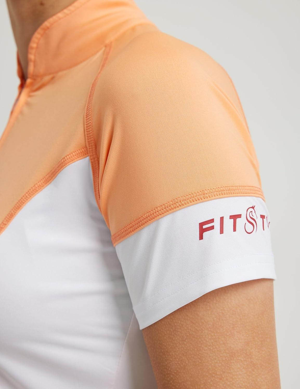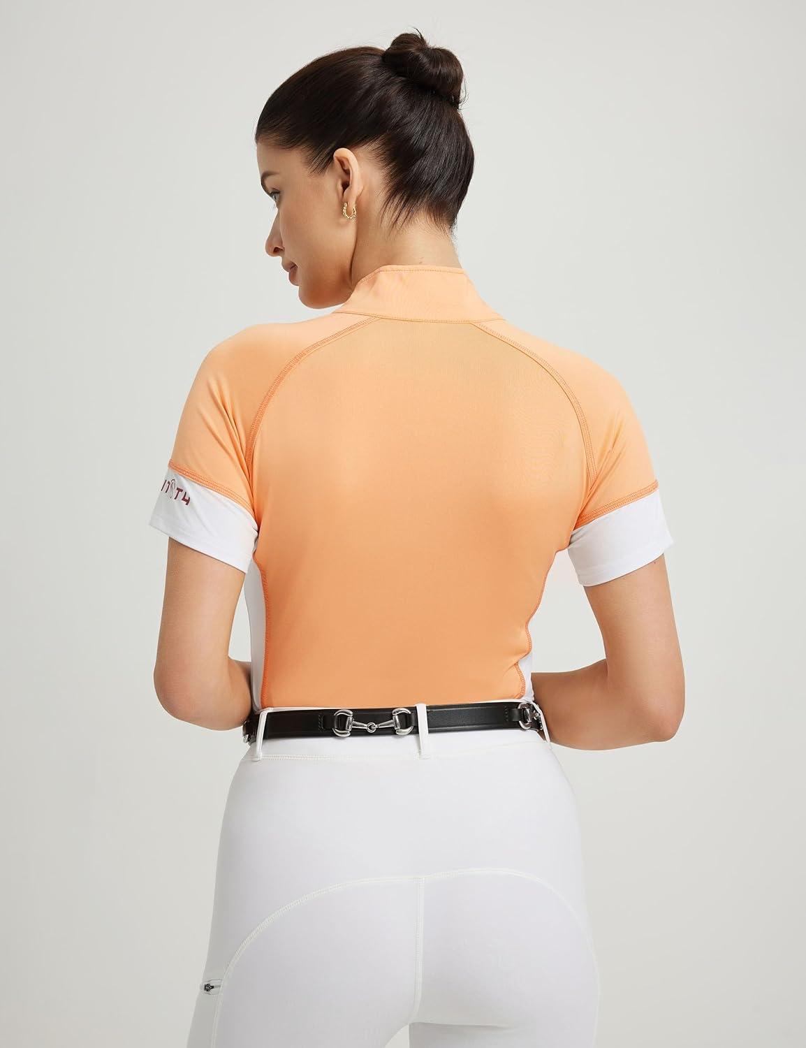 FitsT4 Sports Womens Short Sleeve Equestrian Shirts UPF50+ Horse Riding Shirts Breathable Rider Tops Half Zip(Peach Cobbler)