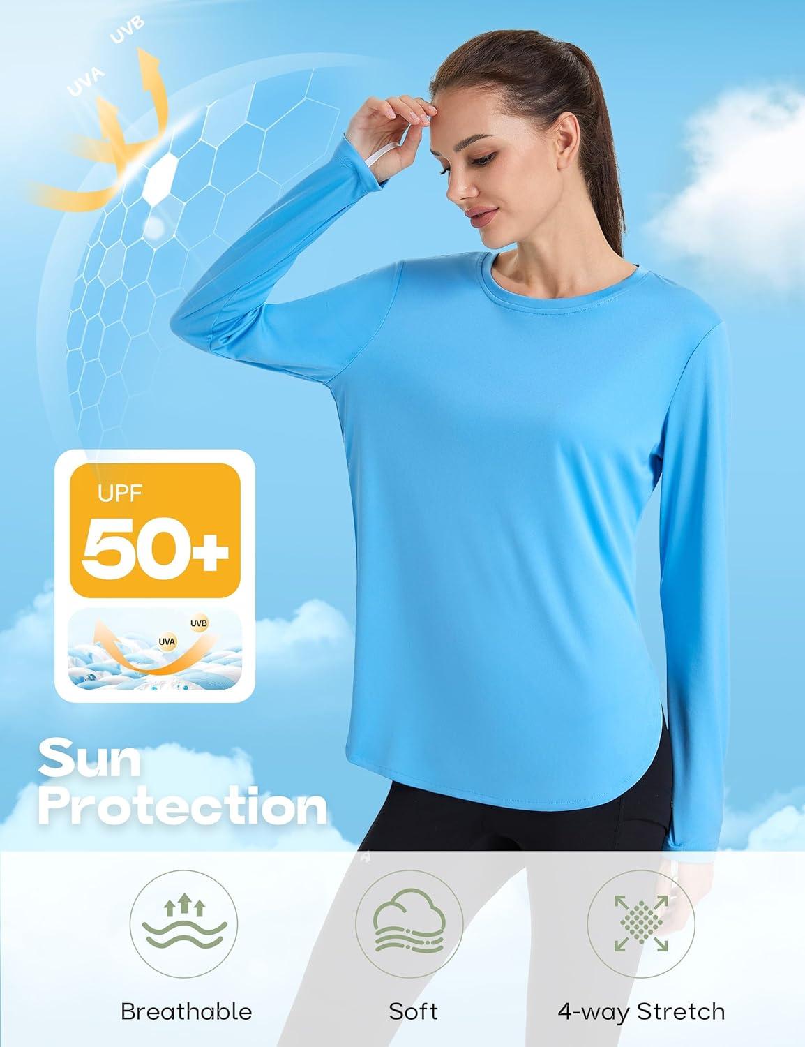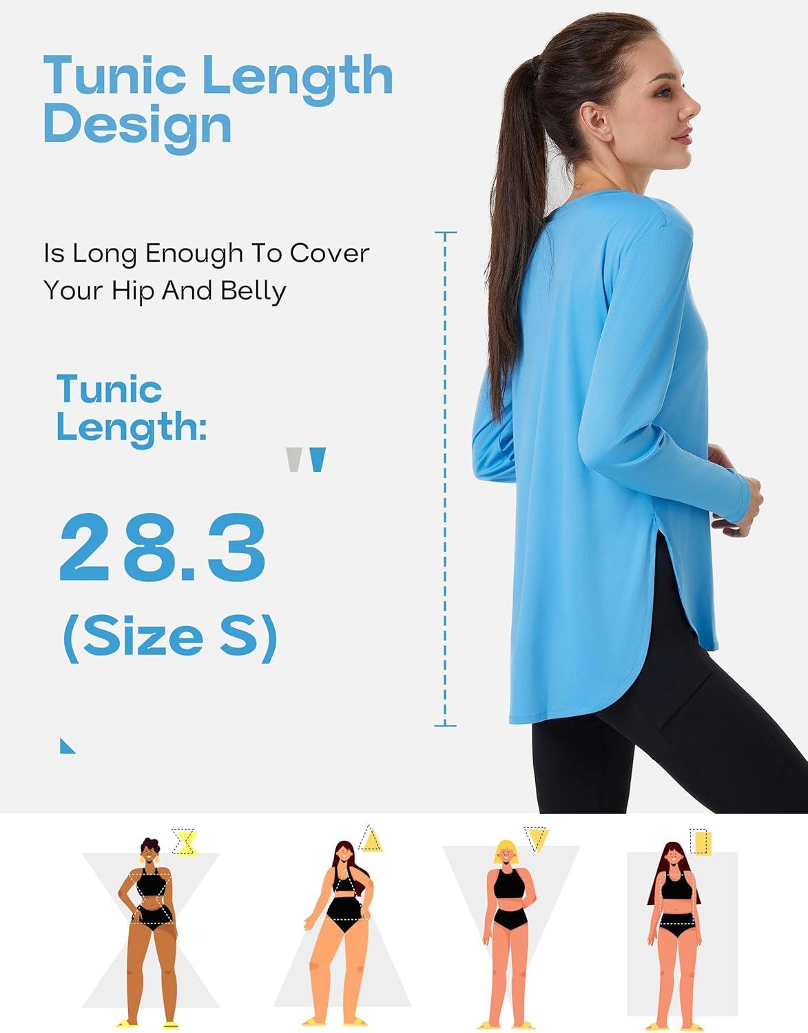 FitsT4 Sports Womens Sun Shirt Long Sleeve Running Tunic Shirts UPF50+ Moisture Wicking Workout Athletic Hiking Tops(Blue)