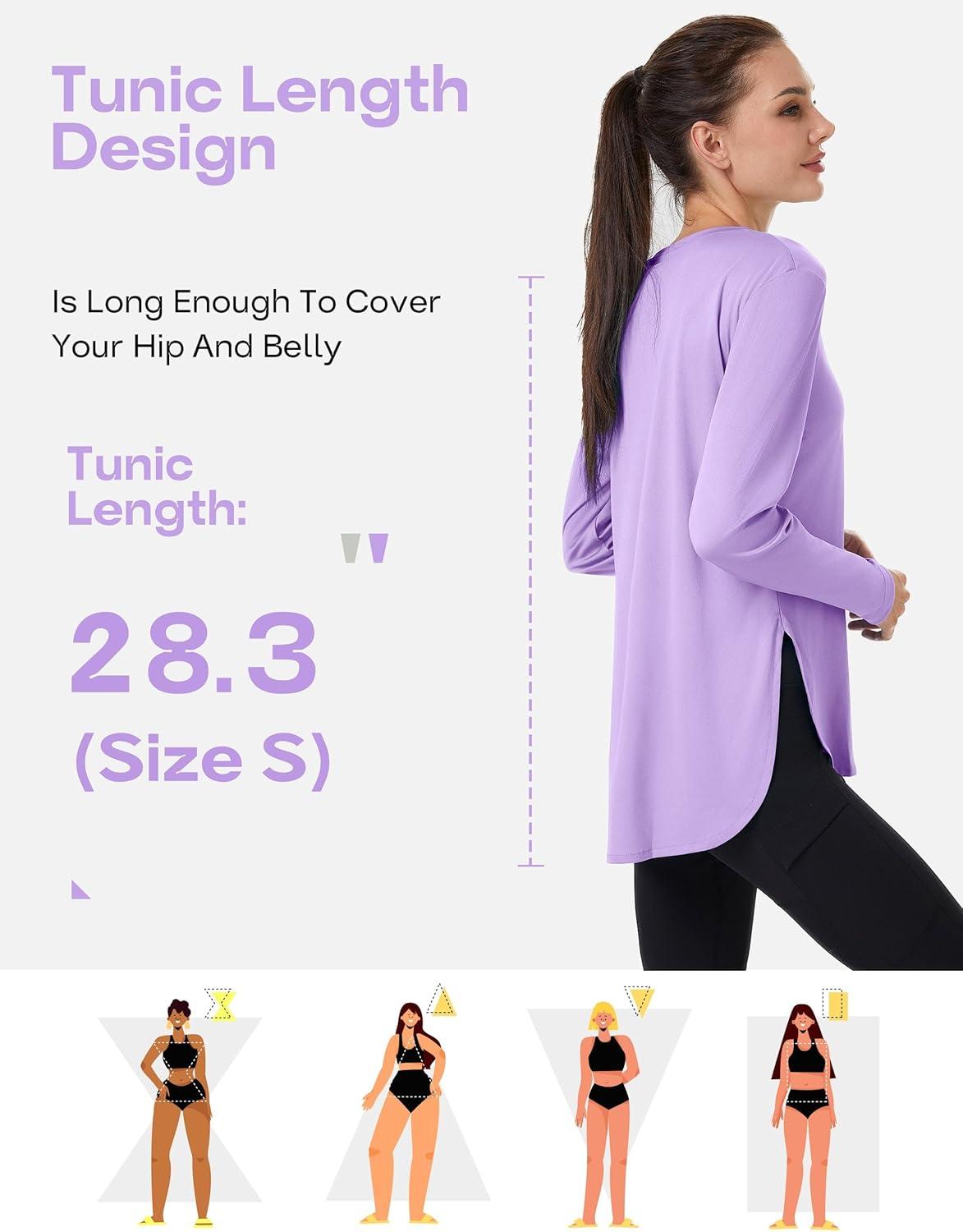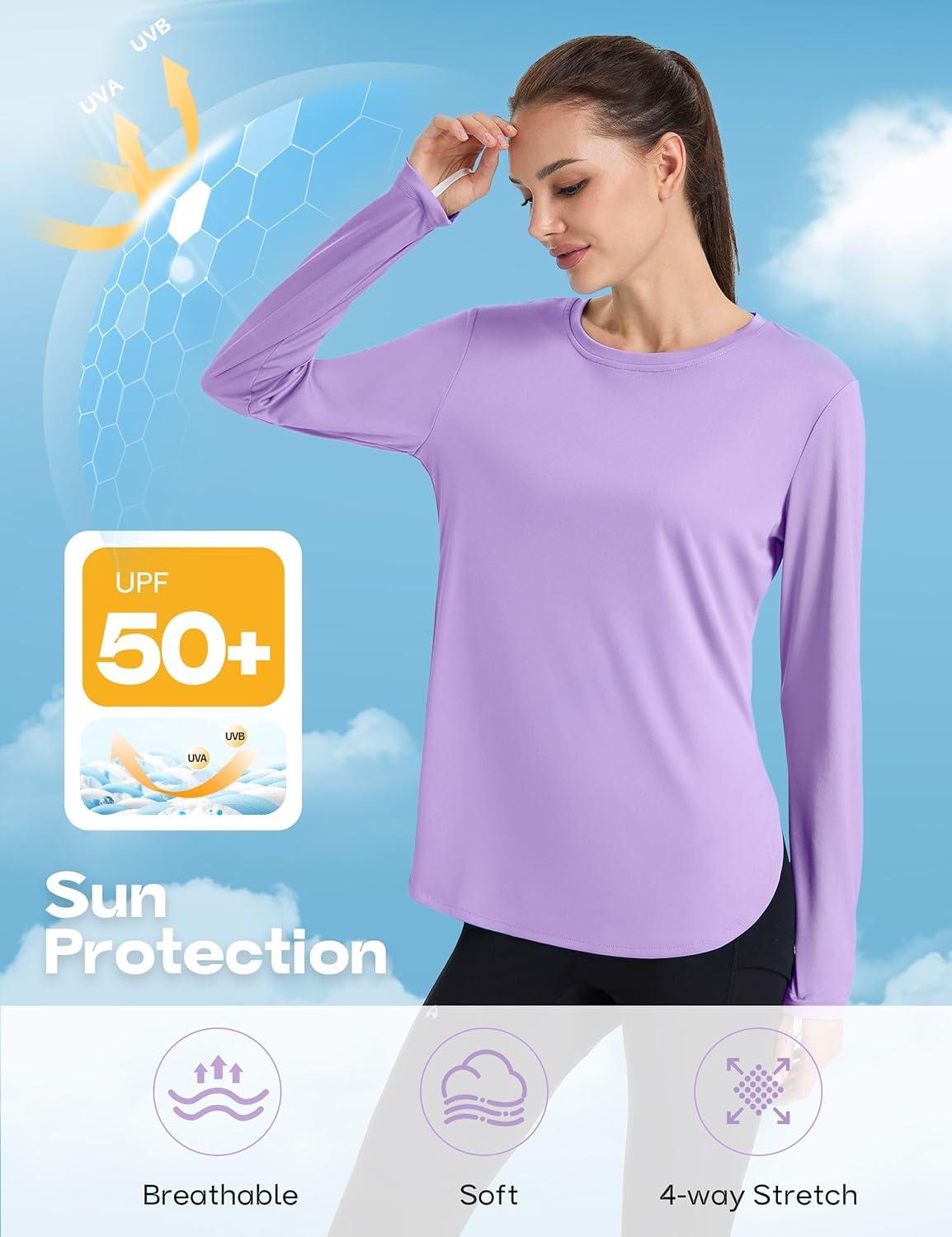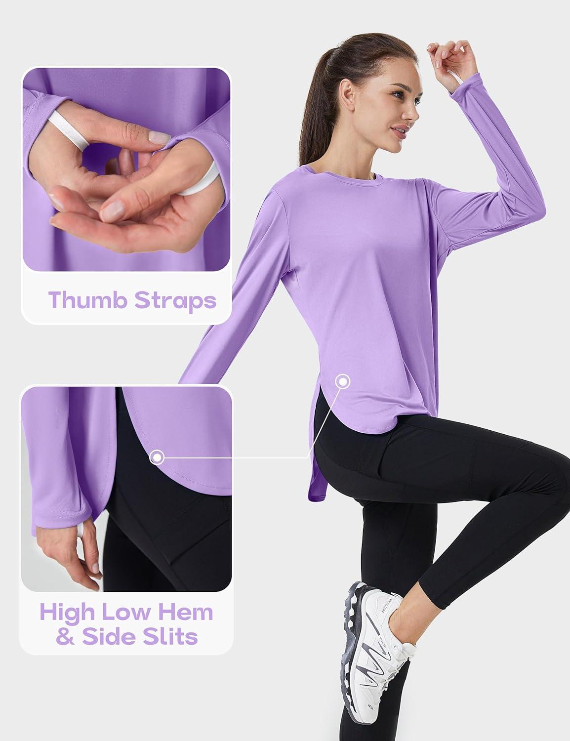 FitsT4 Sports Womens Sun Shirt Long Sleeve Running Tunic Shirts UPF50+ Moisture Wicking Workout Athletic Hiking Tops(Purple)