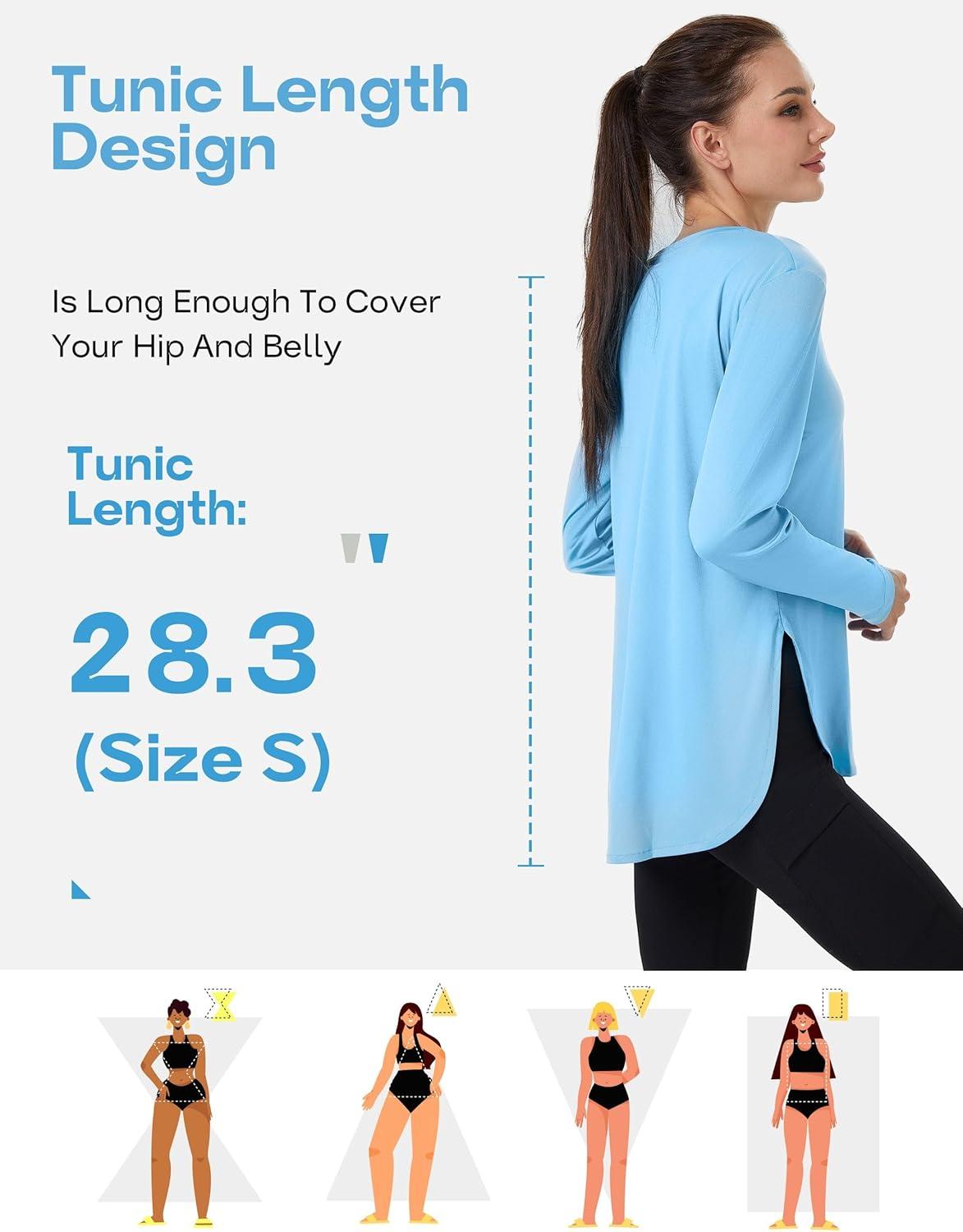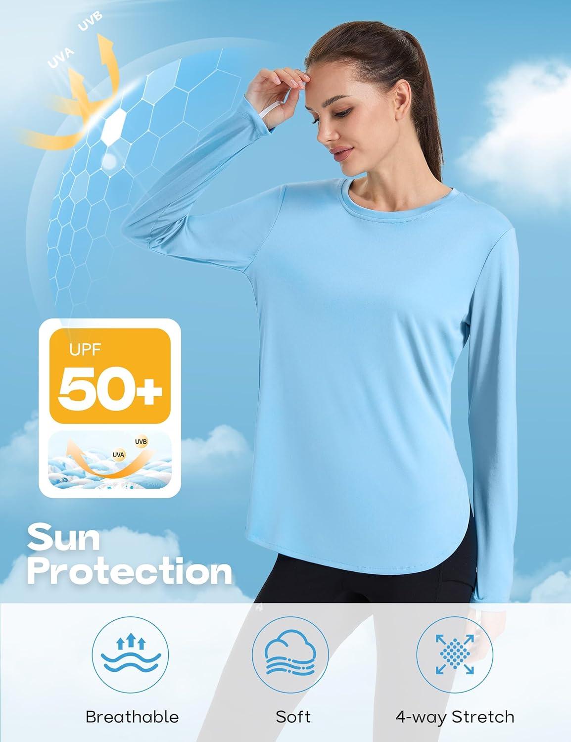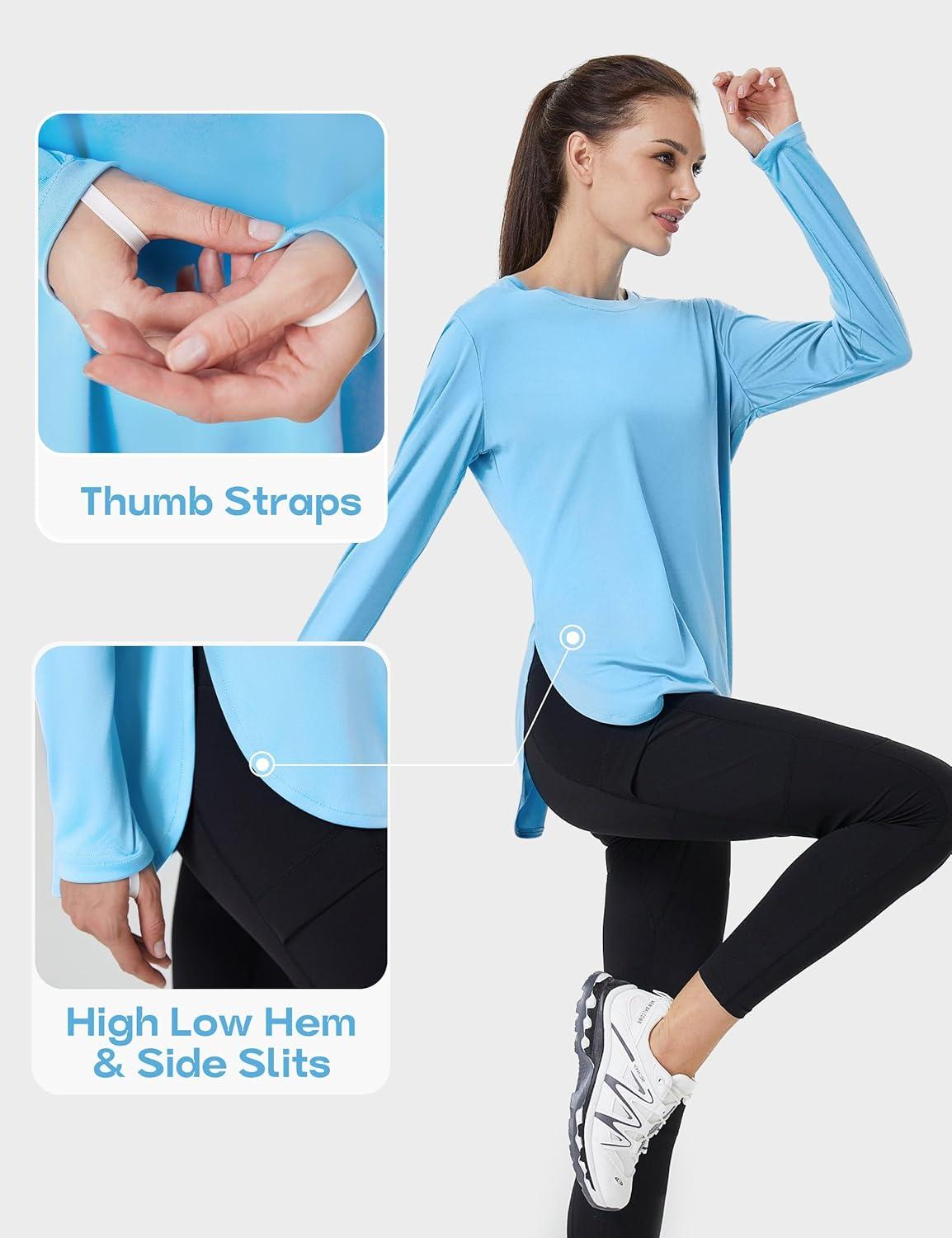 FitsT4 Sports Womens Sun Shirt Long Sleeve Running Tunic Shirts UPF50+ Moisture Wicking Workout Athletic Hiking Tops(Skyblue)