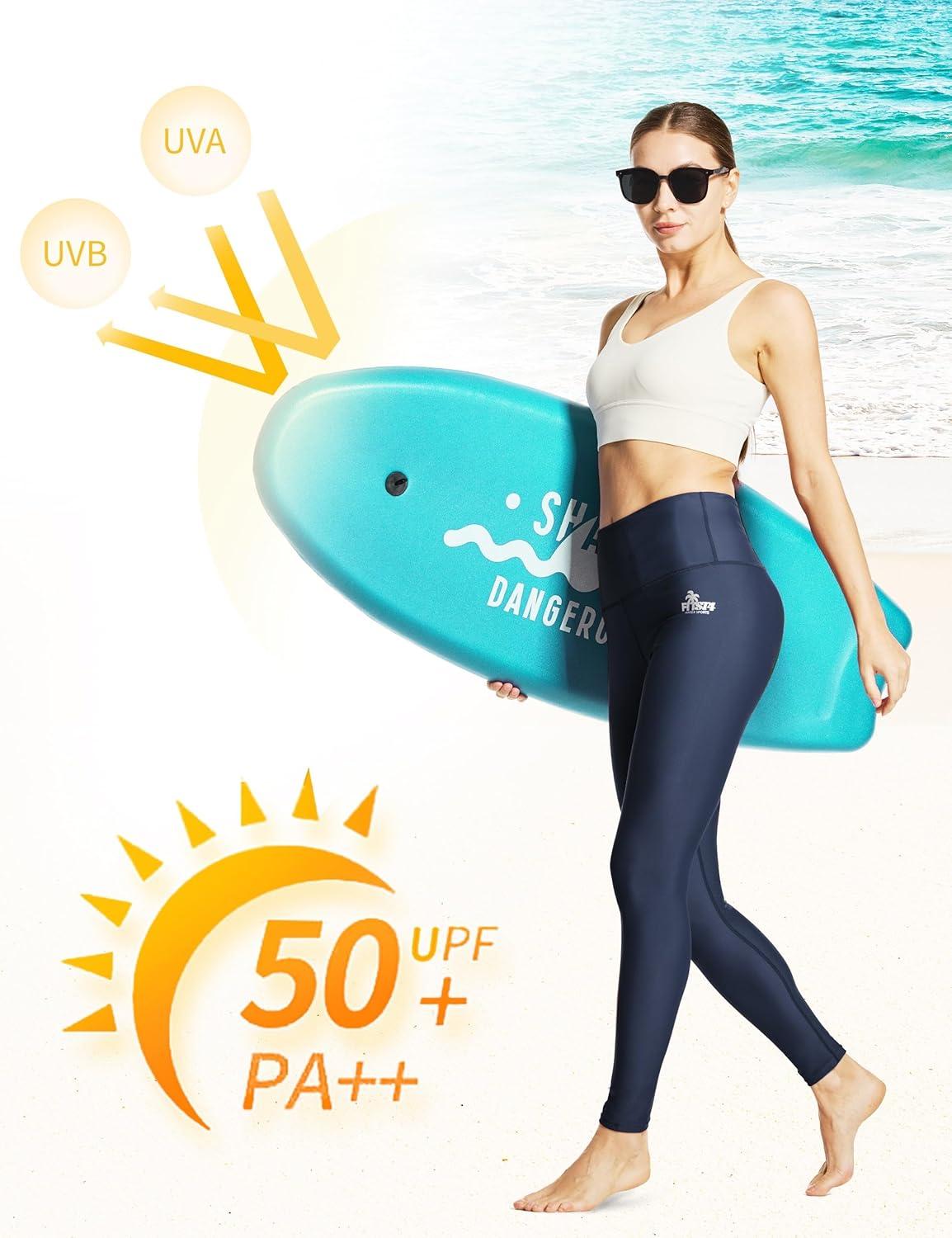 FitsT4 Sports Women’s Swimming Leggings UPF 50+ High Waisted with Pockets Swim Pants(Navy)