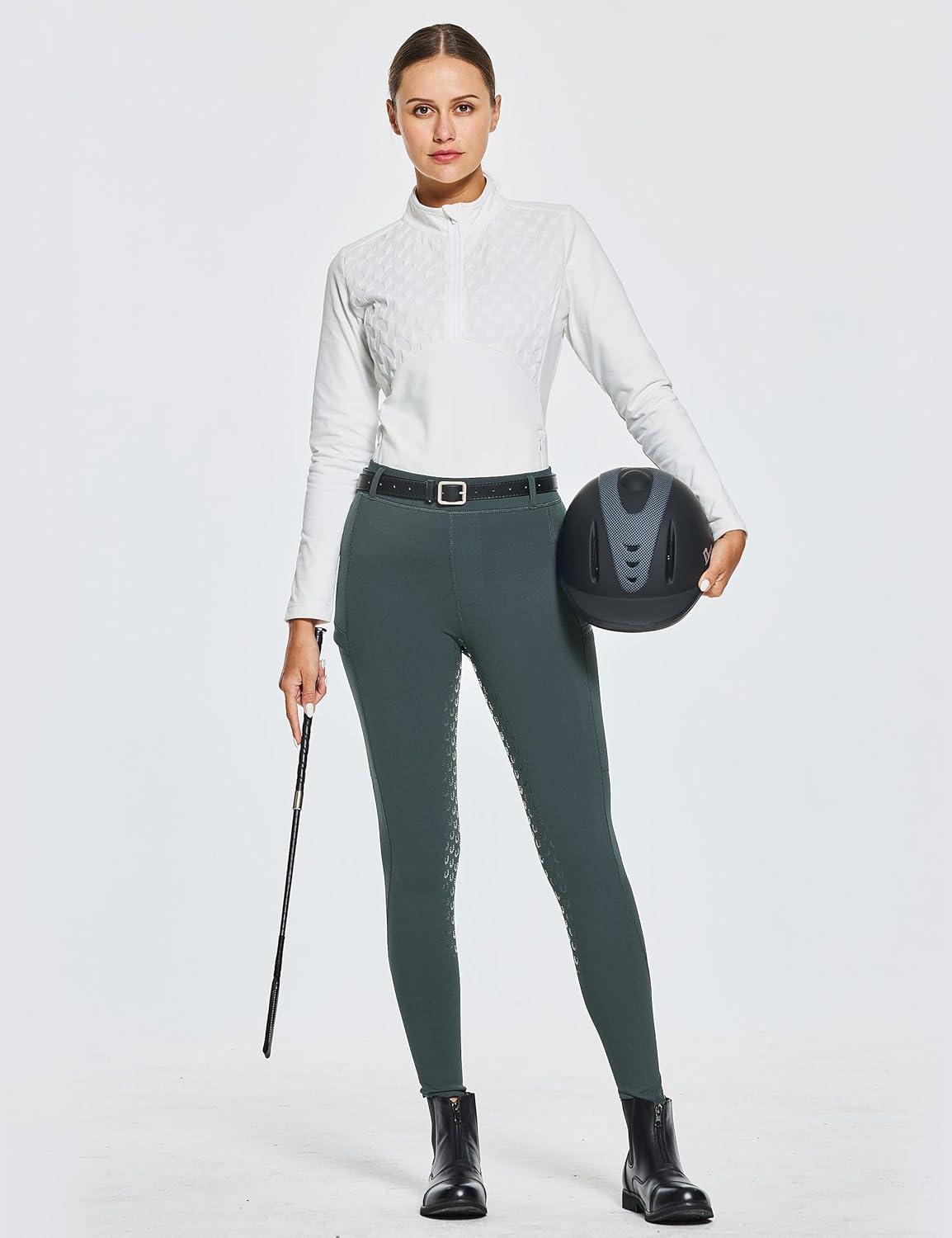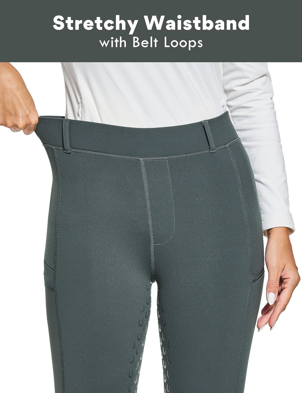 FitsT4 Sports Women’s Winter Horse Riding Pants with Zipper Pockets Full Seat Riding Tights Fleece Lined Equestrian Breeches(Grey)